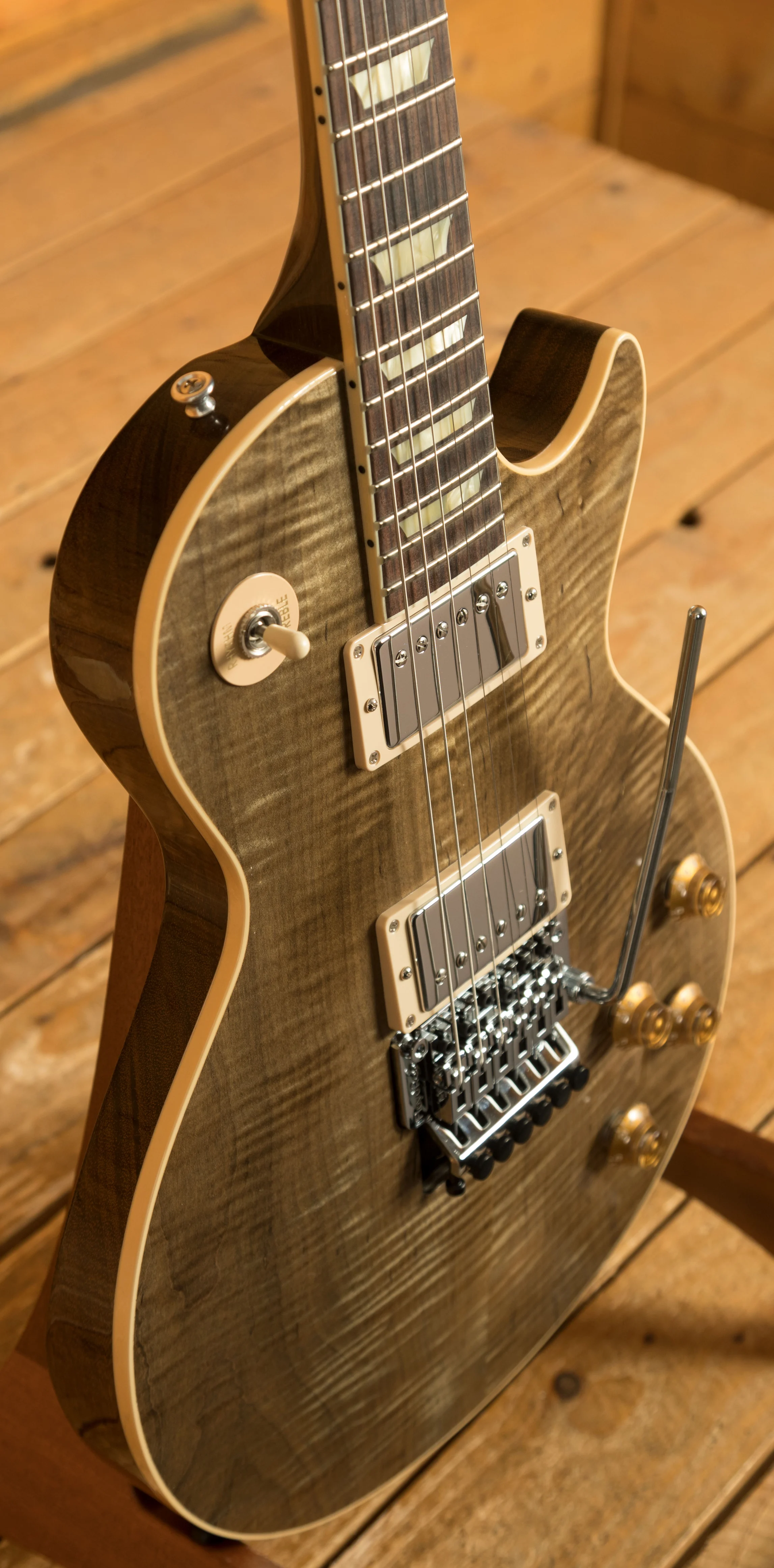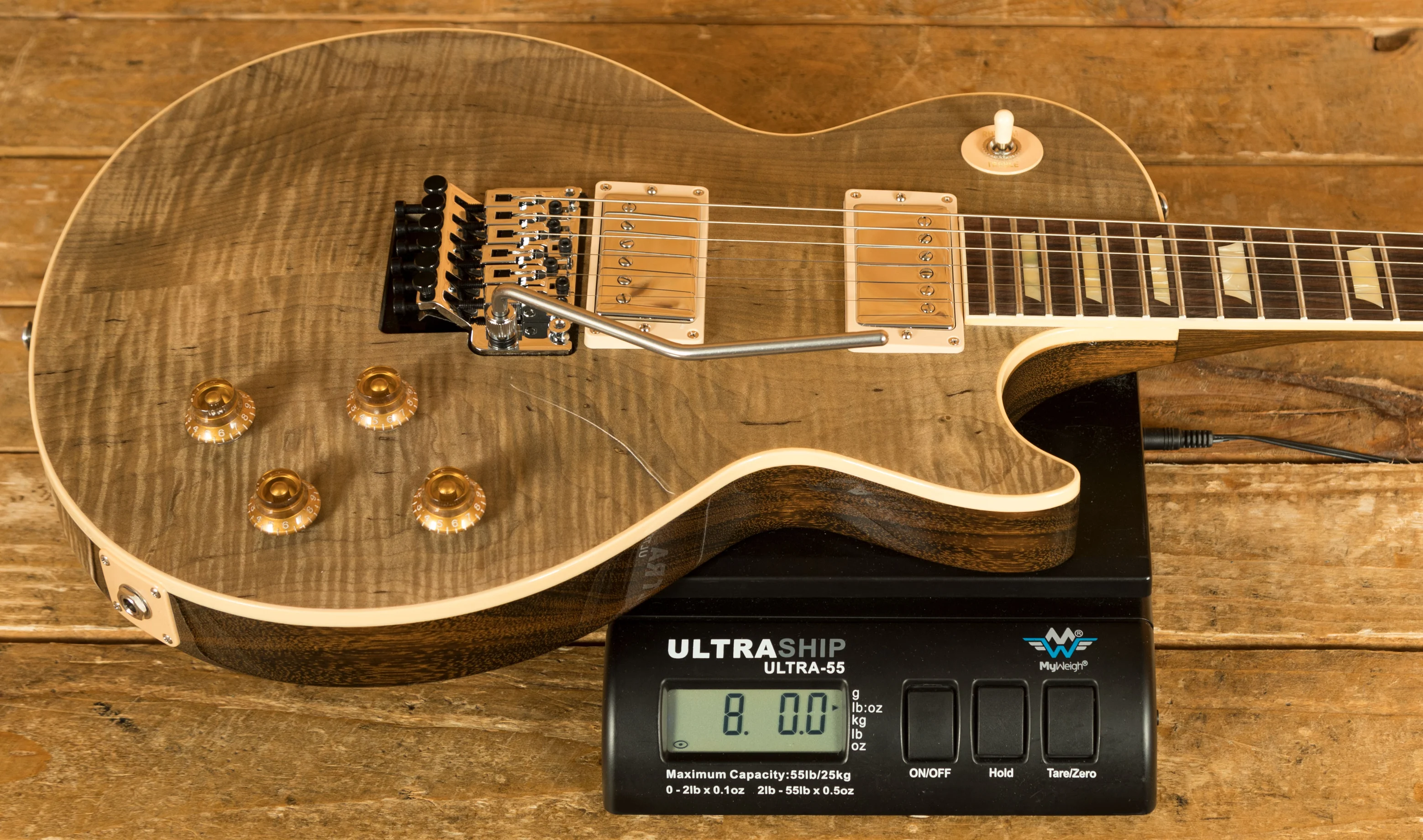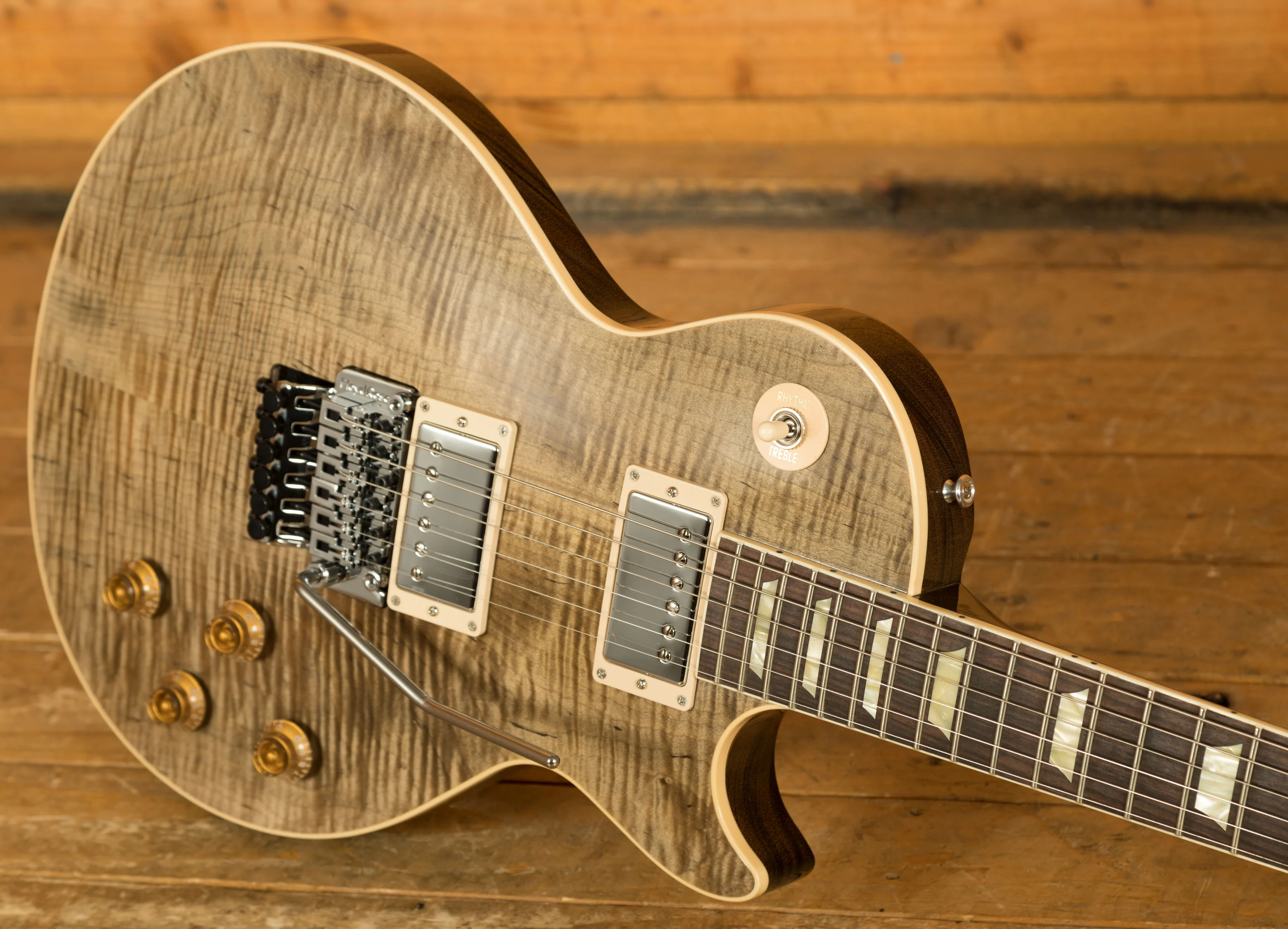 The Mahogany neck is topped with a crisp Indian Rosewood fingerboard with classic Gibson Trapezoid inlays, this guitar looks every bit the real deal. With a 24.75" scale length, 12" fingerboard radius, and 22 medium jumbo frets, it retains that classic Les Paul feel. Meanwhile, the Floyd Rose tremolo and SlimTaper C neck profile offer an alternative, modern vibe.
