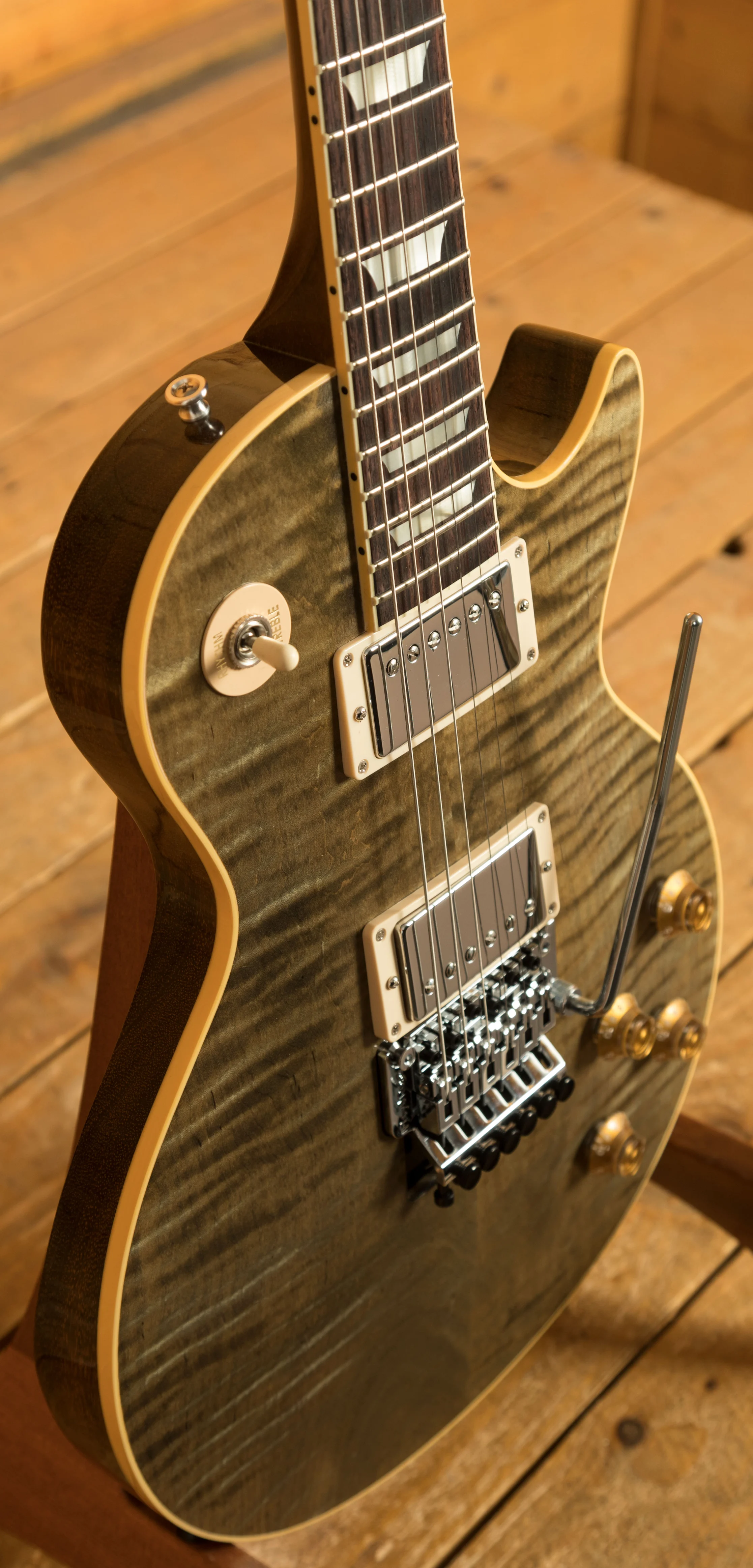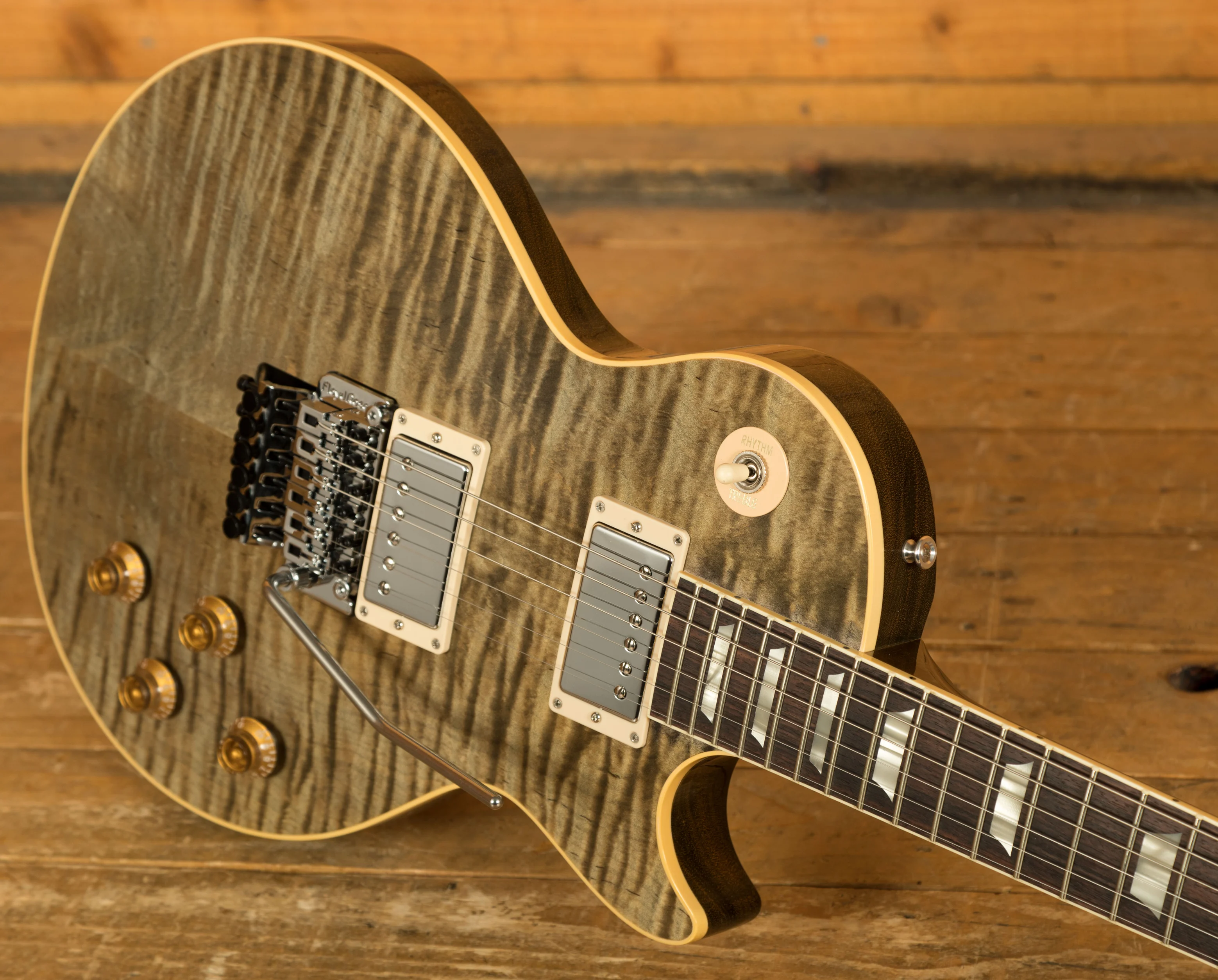 The Mahogany neck is topped with a crisp Indian Rosewood fingerboard with classic Gibson Trapezoid inlays, this guitar looks every bit the real deal. With a 24.75" scale length, 12" fingerboard radius, and 22 medium jumbo frets, it retains that classic Les Paul feel. Meanwhile, the Floyd Rose tremolo and SlimTaper C neck profile offer an alternative, modern vibe.