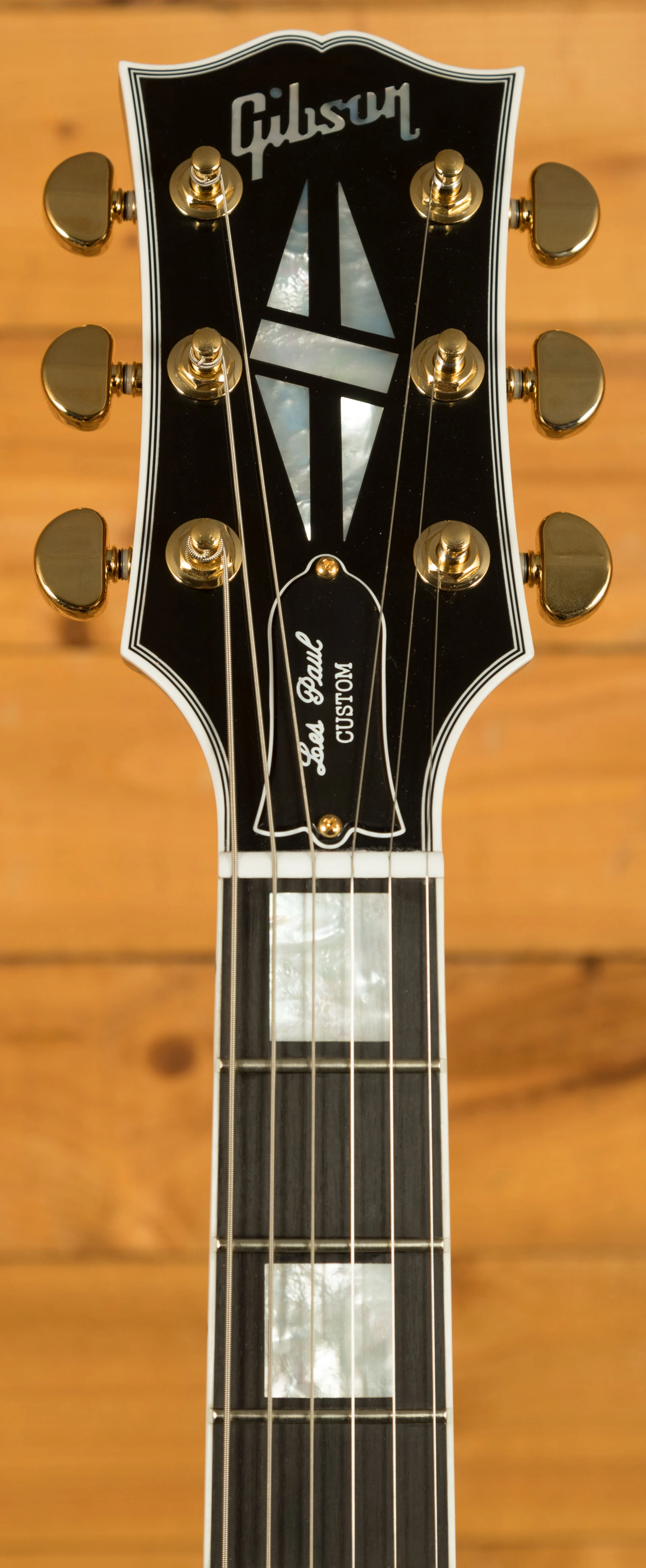 The guitar is fitted with durable gold aged hardware, including reliable Grover Kidney machine heads, a classic Tune-O-Matic (TOM) bridge, and a Stop Bar tailpiece, ensuring rock-solid tuning stability and precise intonation. Sonically, this Les Paul Custom is a true workhorse, loaded with Gibson's revered 490R (neck) and 498T (bridge) humbucking pickups. These are go-to pickups for a reason, delivering a versatile range of classic Gibson tones, from warm, articulate cleans to thick, powerful rock leads.