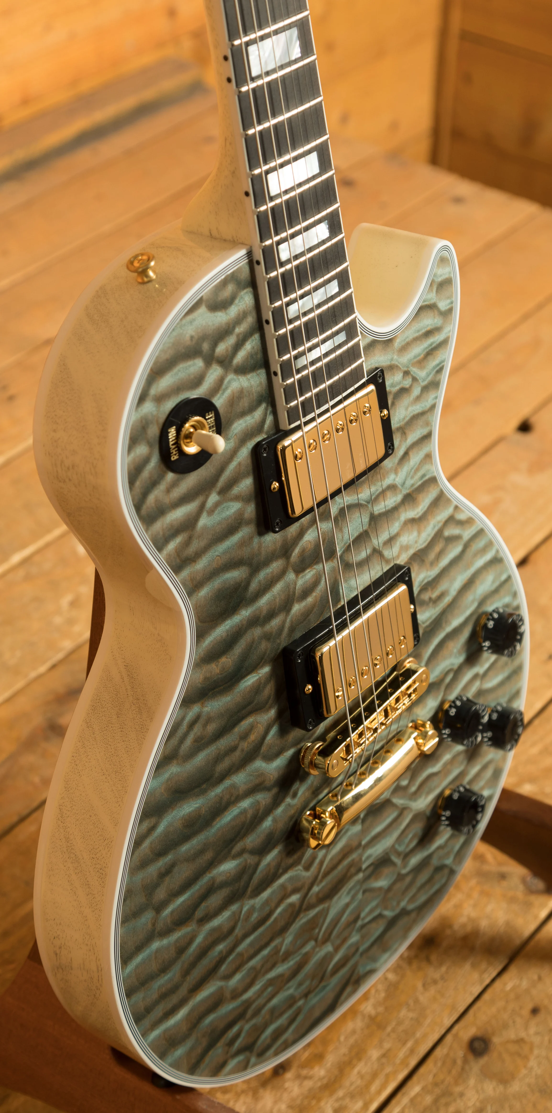 Prepare to be captivated by this exceptional Gibson Custom Shop Les Paul Custom, featuring a jaw-dropping handpicked 7A Quilt Maple top in a vibrant Ocean Blue gloss finish. This one is a visual masterpiece that combines classic Les Paul Custom elegance with a bold, modern twist that truly stands out from the crowd.