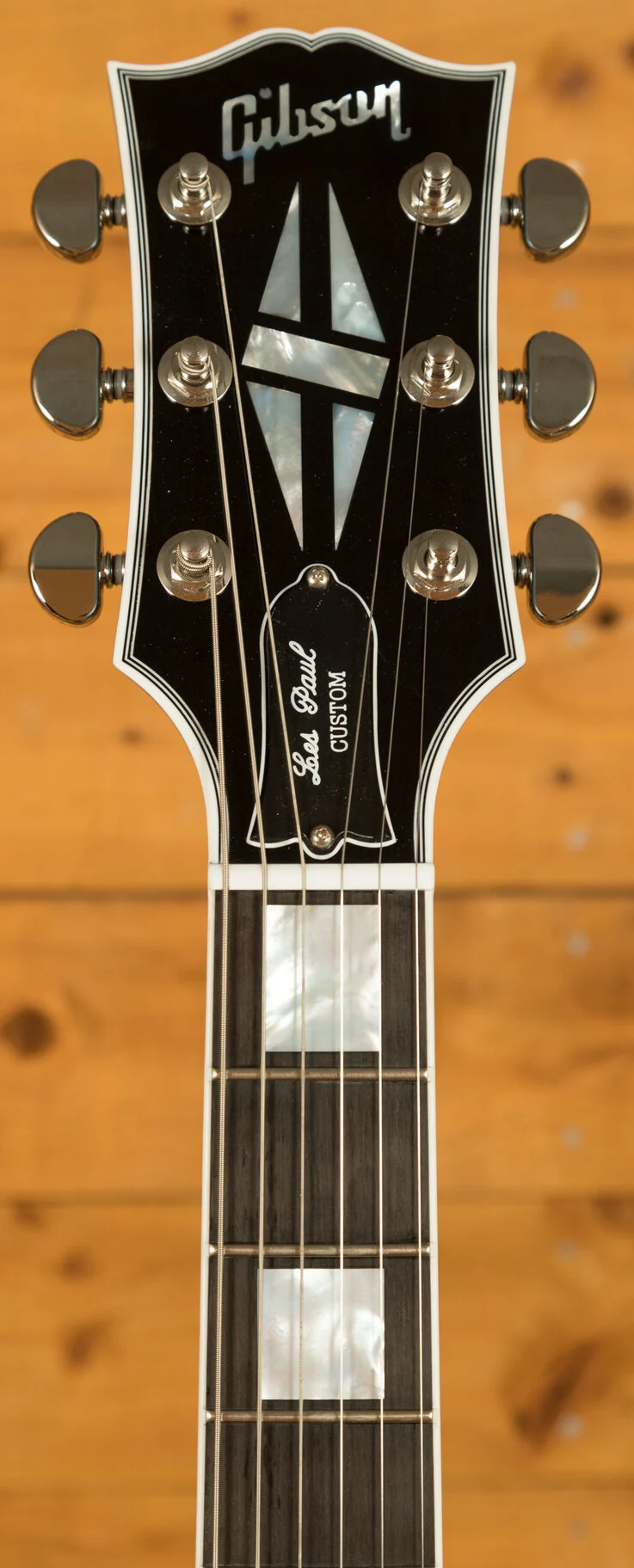 The rest of the specs are pretty inline with other modern collection Les Paul Customs so besides weight, looks, and tone, it should feel very similar. The 24.75" scale length Mahogany neck features a 12" radius Ebony fingerboard with 22 Jescar FW45100 frets for a silky smooth feel underhand. The LPC Modern Medium C neck profile measures .820" at the 1st fret and .965" at the 12th. With Mother-of-Pearl Block inlays and black and white multi-ply top and back and white neck binding, this guitar still holds all the class of a Les Paul Custom.