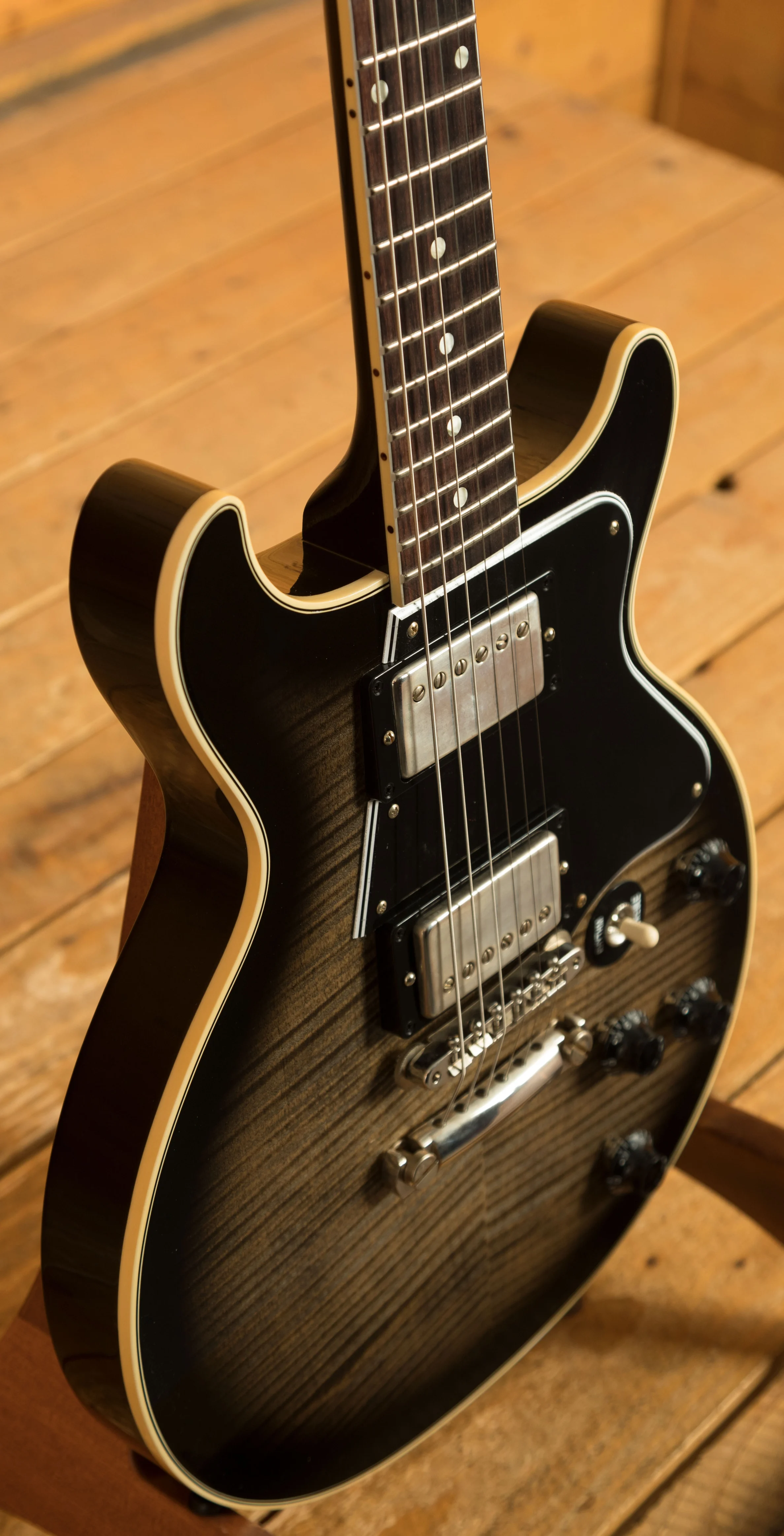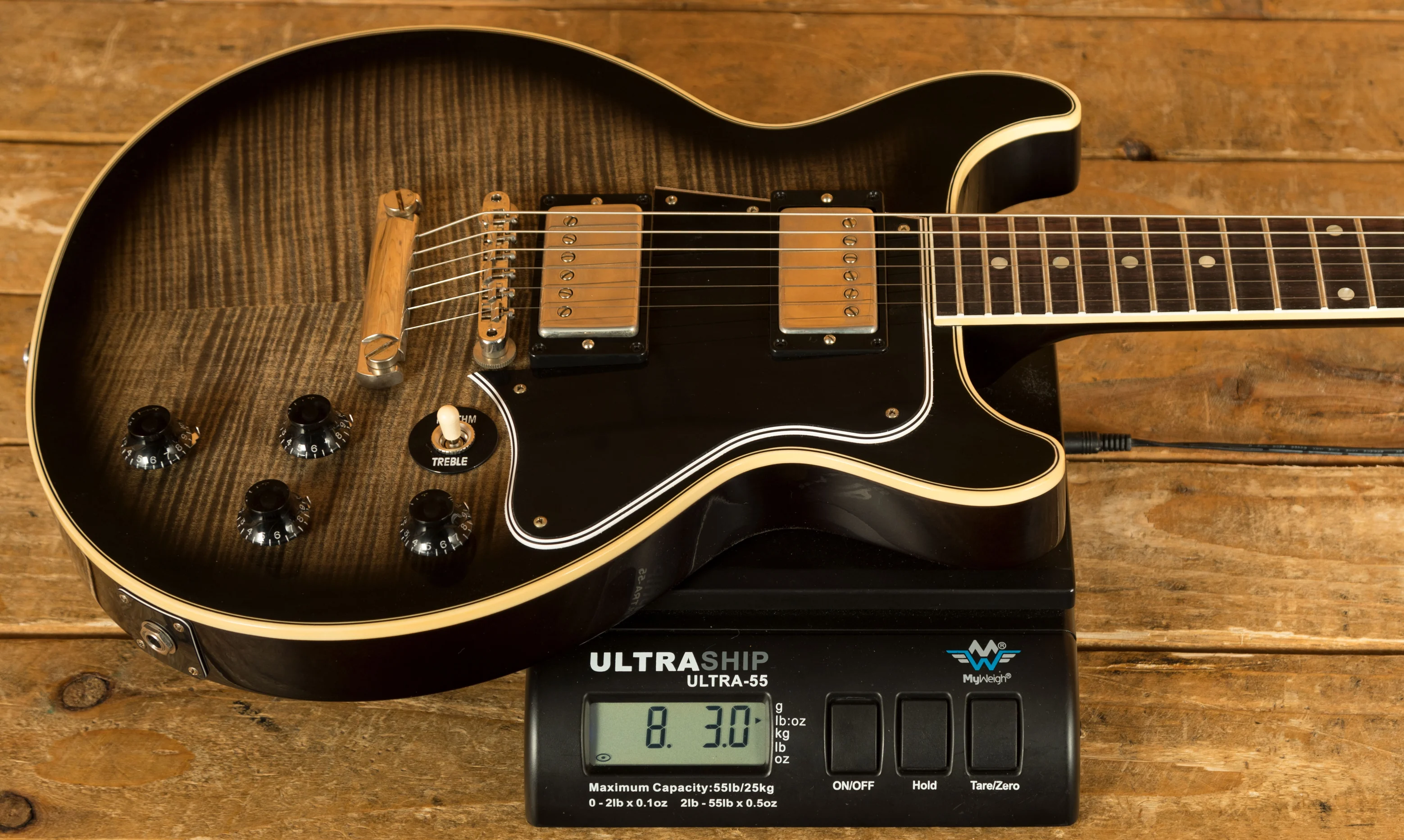 With a solid Mahogany body and figured Maple top, finished in a VOS Cobra Burst, this is super resonant and really nicely balanced. The 60s SlimTaper Mahogany neck is topped with a crisp Indian Rosewood fingerboard with Pearloid dot inlays, this guitar looks every bit the real deal. With a 24.75" scale length, 12" radius, 1.687" nut width, and 22 medium jumbo frets, it retains that classic Les Paul DC feel. The ABR-1 bridge and stopbar offer an authentic vintage vibe.