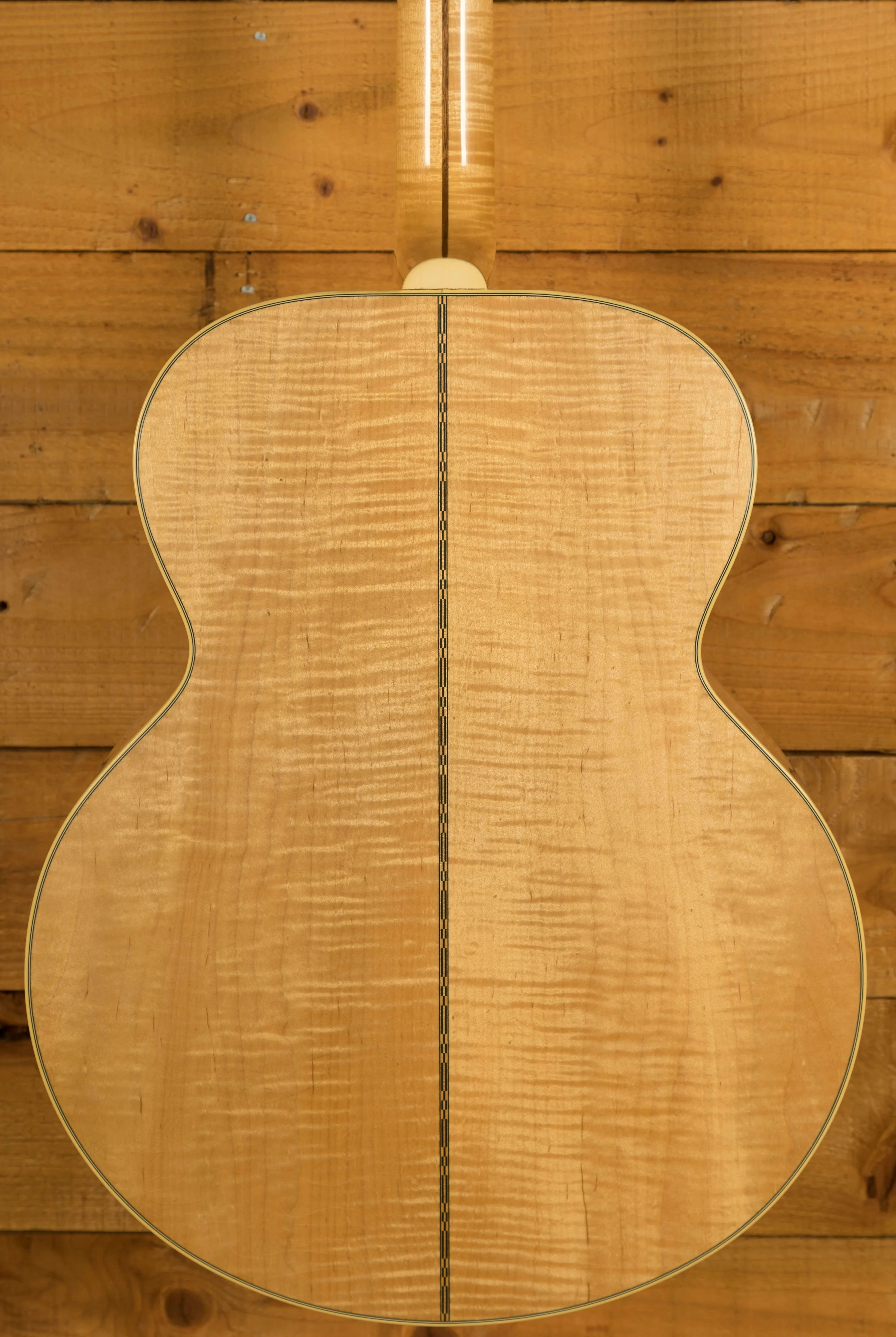 With a thermally aged Sitka Spruce top paired up with some truly stunning hand picked figured maple back and sides, this SJ-200 boasts a bold, lively tone with loads of power. This guitar really comes alive when you dig in hard! With a period correct aged Dark Natural finish, this SJ-200 really does look the real deal! The ageing and lacquer cracking is truly awesome, the Murphy Lab team have done such an incredible job at capturing the visual charm of what an old 50s Gibson looks like today.