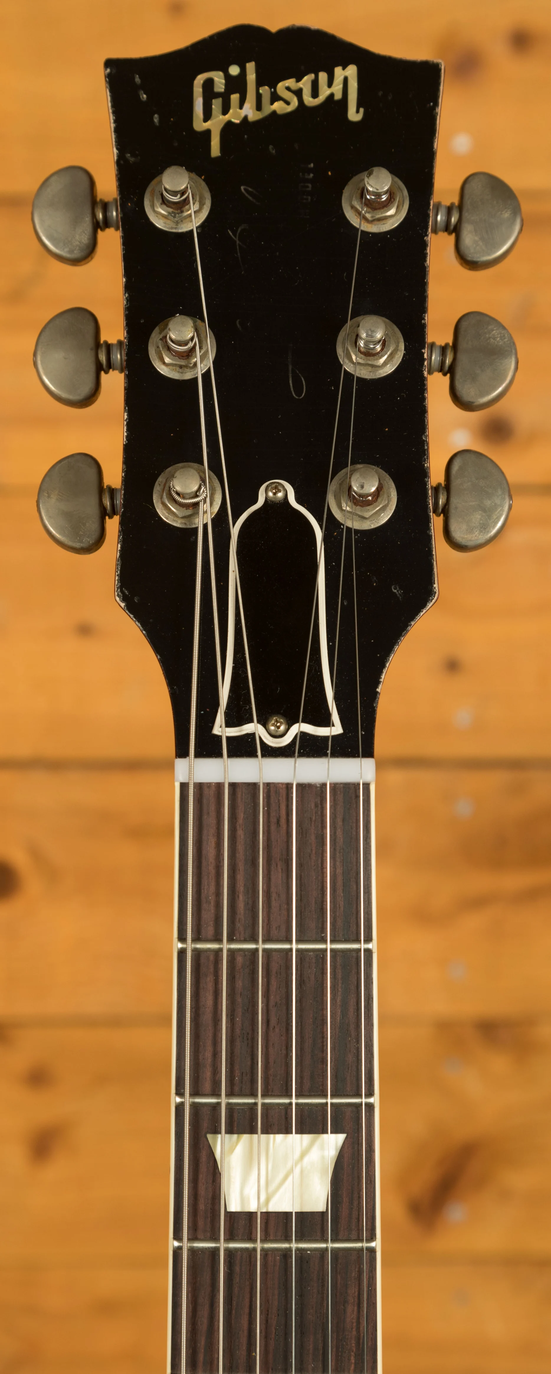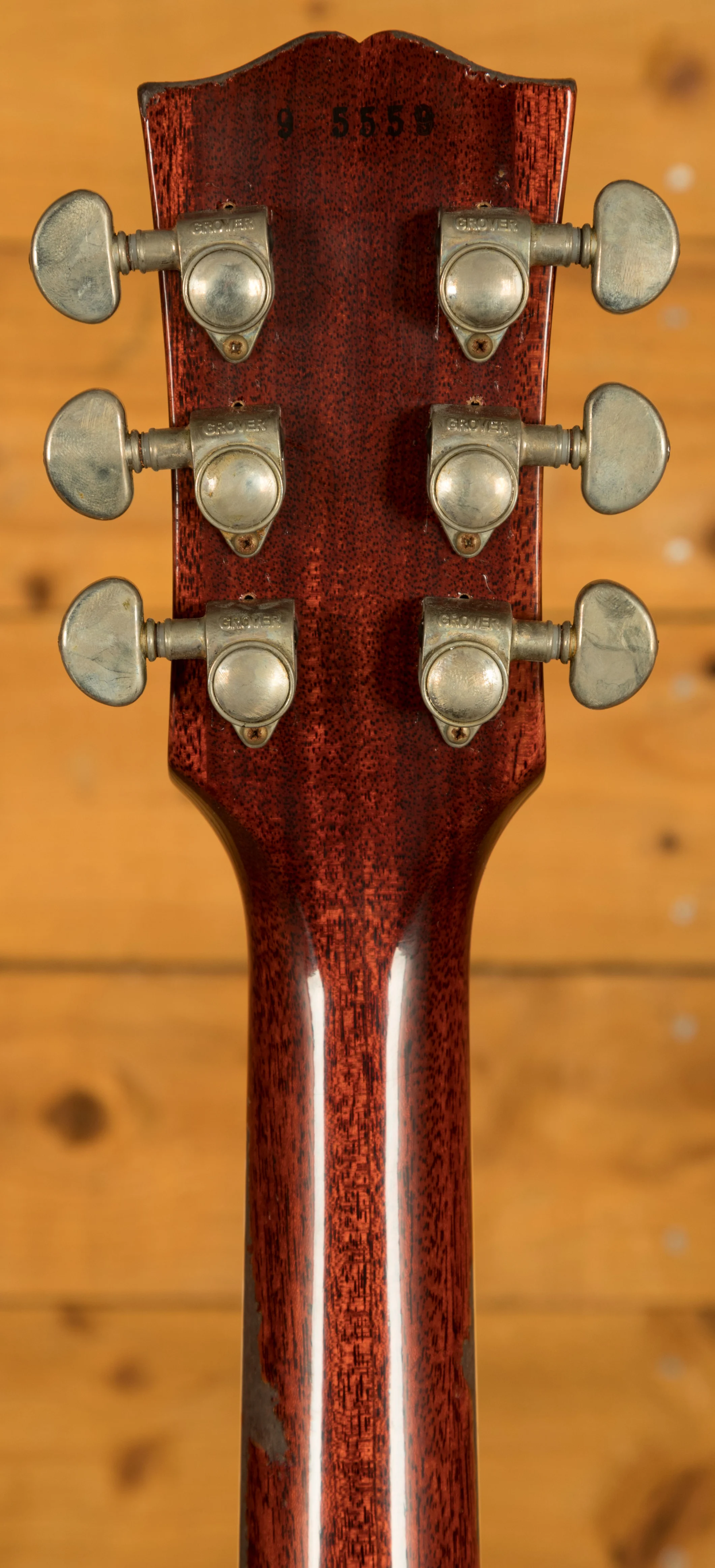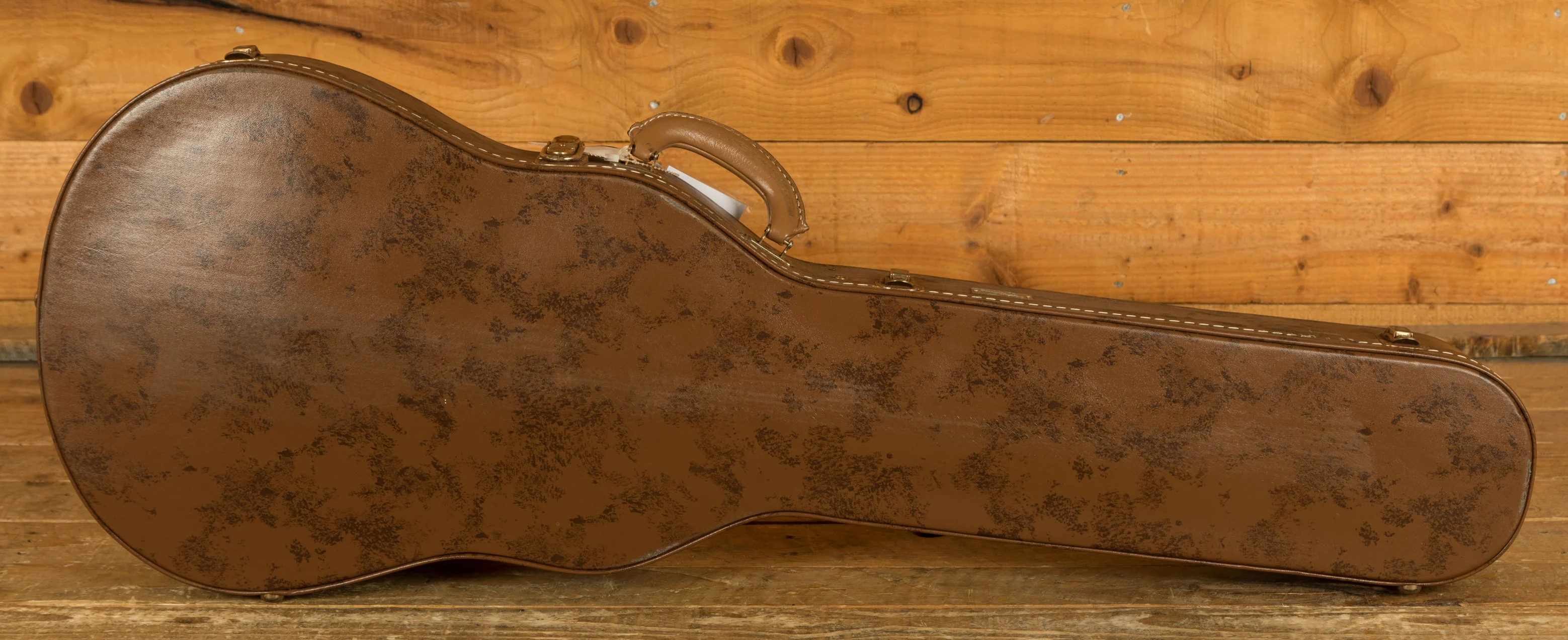 - Pickups & Hardware: Custom Bucker Alnico 3 pickups with a double white bridge humbucker (aged cover included in the case), complemented by an ABR-1 bridge, lightweight stopbar tailpiece, and Grover tuners, all in aged nickel finish.