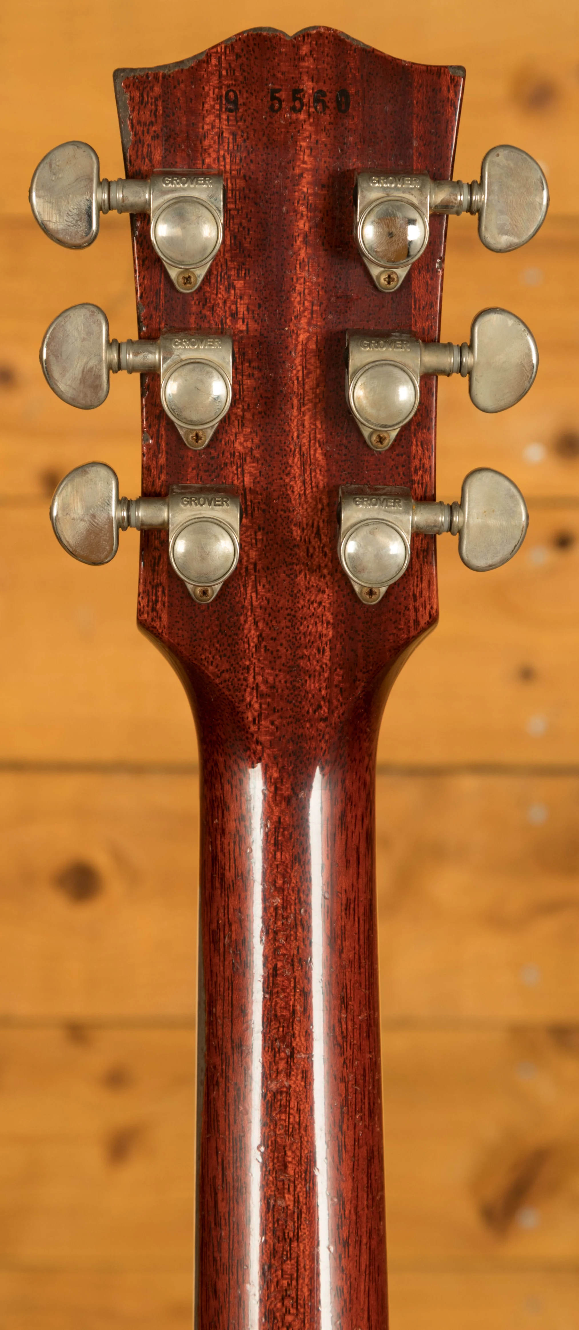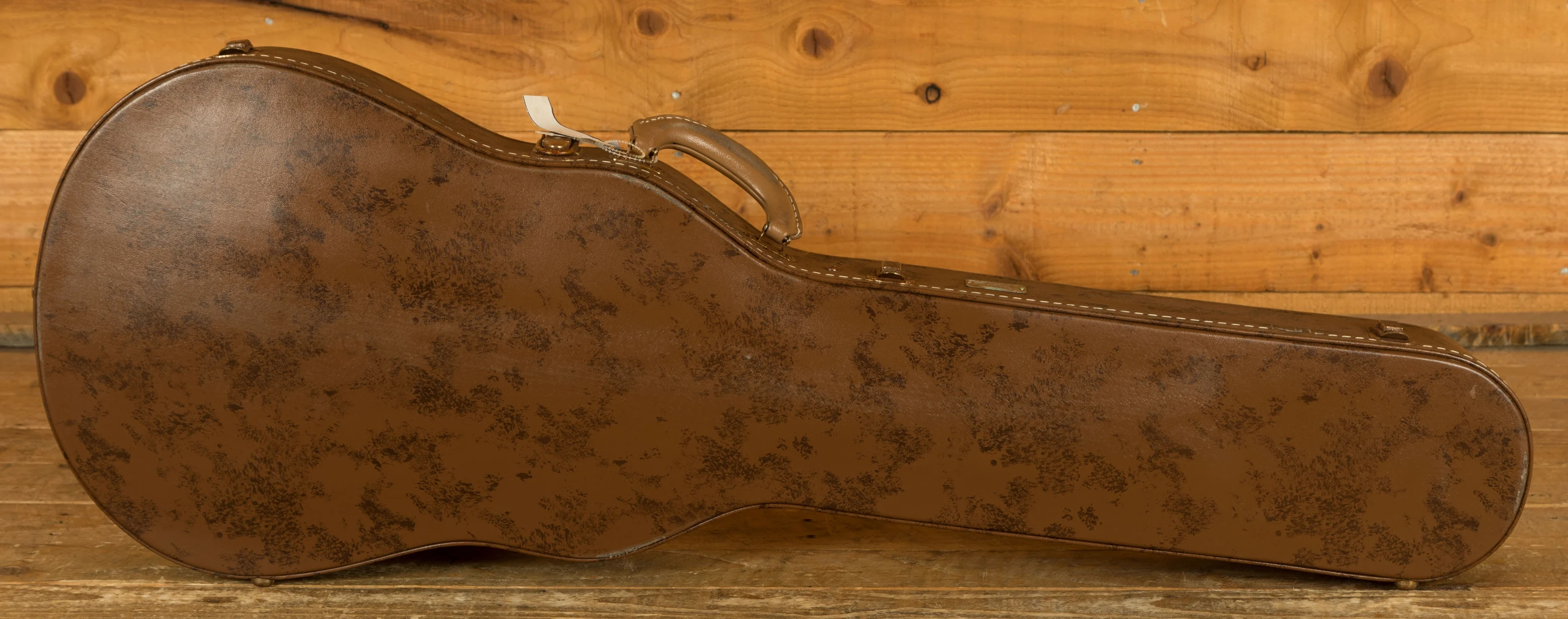 - Pickups & Hardware: Custom Bucker Alnico 3 pickups with a double white bridge humbucker (aged cover included in the case), complemented by an ABR-1 bridge, lightweight stopbar tailpiece, and Grover tuners, all in aged nickel finish.