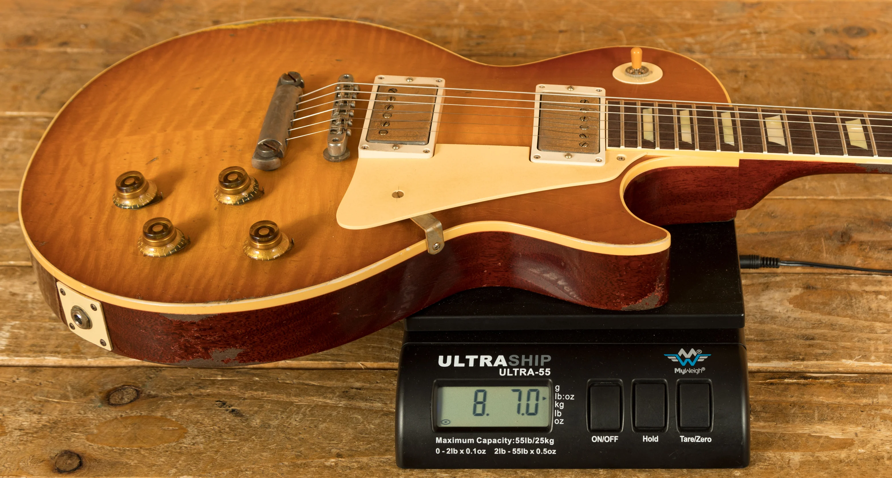 - Body & Neck: 1-piece mahogany body with a handpicked AAA figured maple top, paired with a mahogany neck featuring a 1959 R9 V1 profile and an Indian rosewood fingerboard with aged cellulose nitrate trapezoid inlays, delivering vintage resonance and playability.