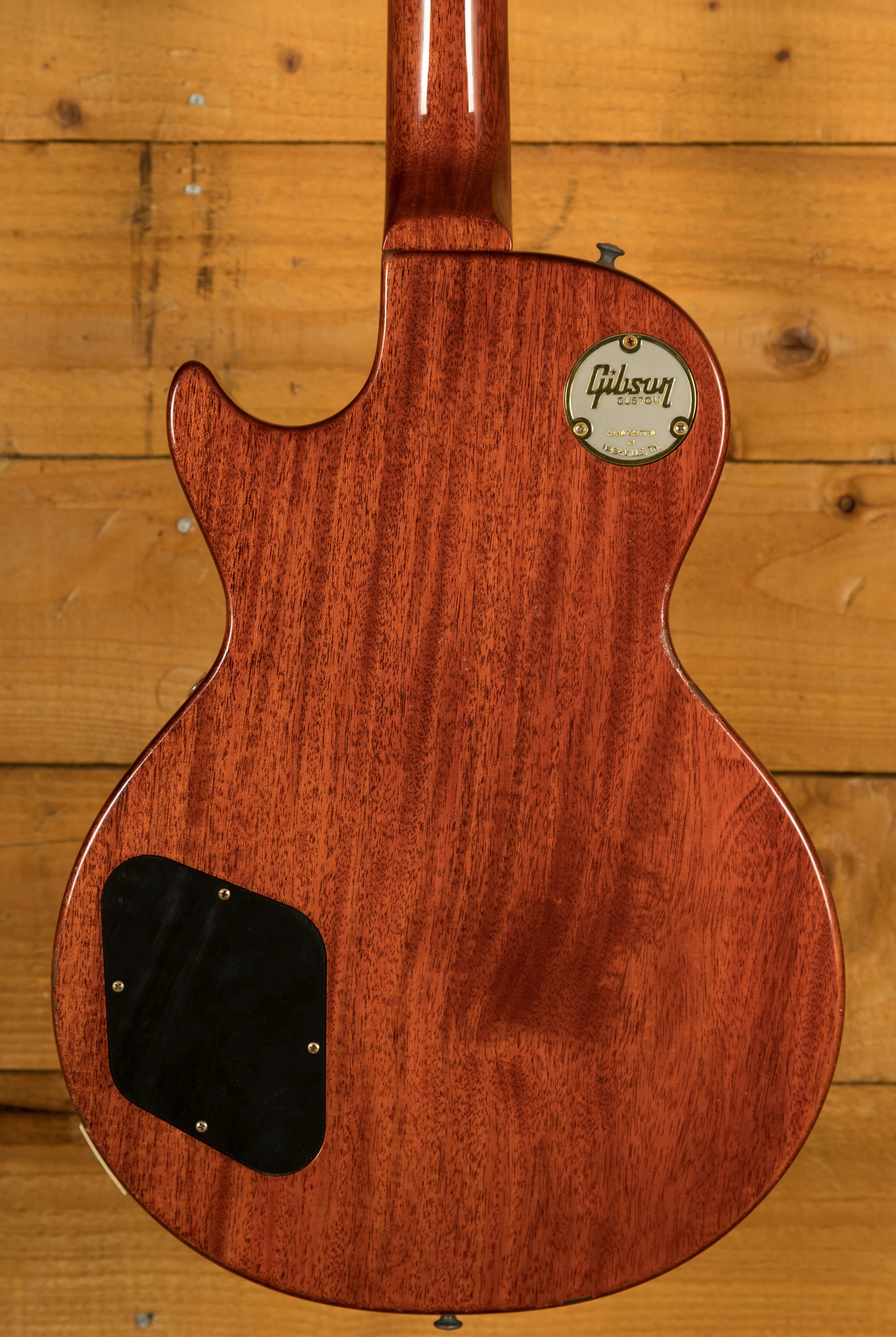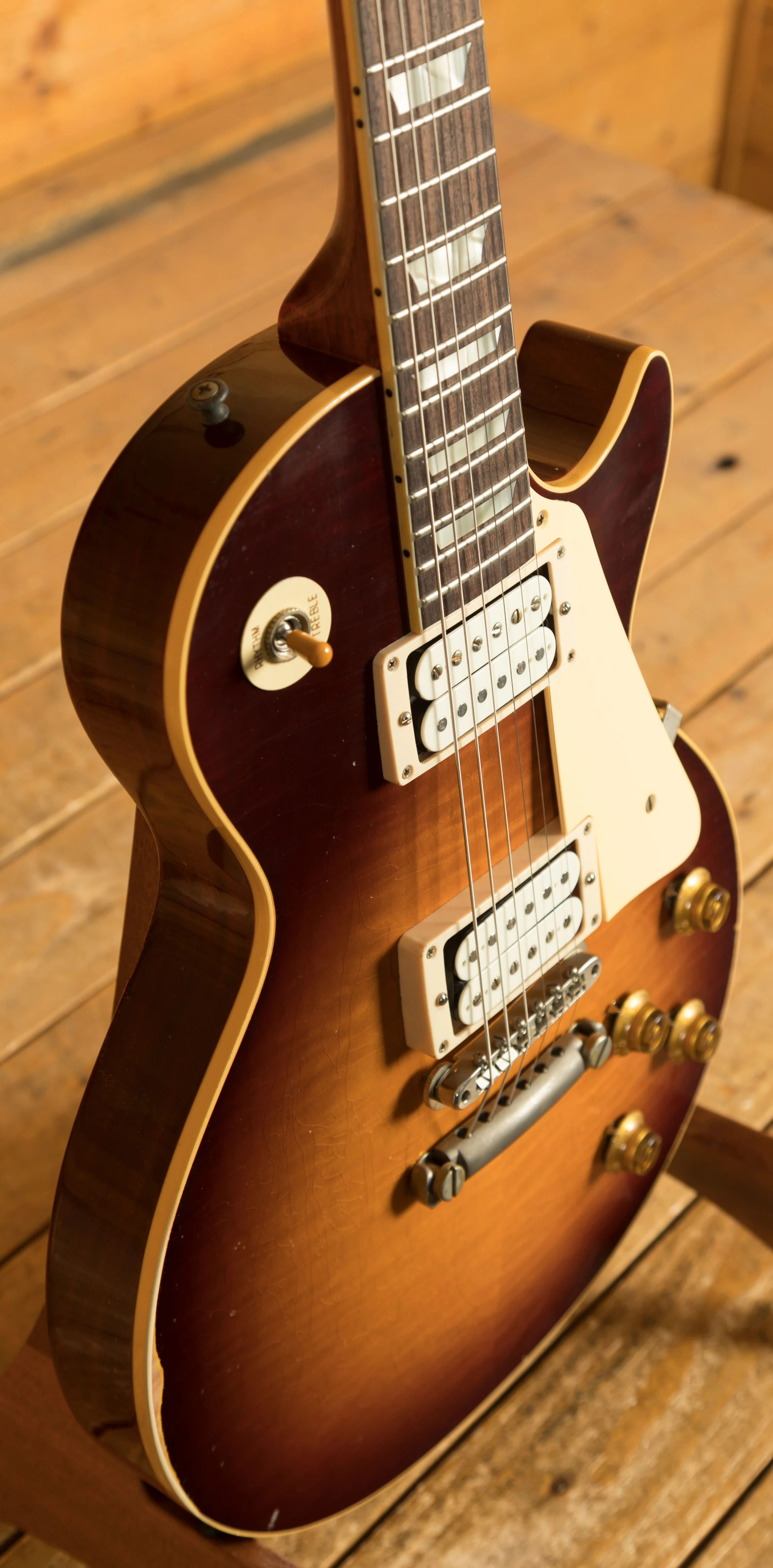This 1959 Les Paul Standard features a solid mahogany body with a long-tenon neck joint using hide glue, ensuring optimal resonance and sustain. The mahogany neck, with an authentic 50s Rounded Medium C profile, is paired with an Indian rosewood fingerboard featuring aged cellulose nitrate trapezoid inlays, a 12" radius, and 22 authentic medium jumbo frets (Jescar nickel-silver) for smooth, vintage-inspired playability. Equipped with a pair of Custombucker Alnico 3 pickups (unpotted, with cream mounting rings) with double cream pickup bobbins, this guitar delivers the dynamic, harmonically rich PAF tone that defined the era - warm, articulate cleans and powerful overdrive - perfect for blues, rock, and beyond. Vintage-style hardware, including an ABR-1 bridge, lightweight stopbar tailpiece, and Kluson Deluxe reissue tuners, all in aged nickel, ensures historical accuracy. This guitar has been professionally set up by our skilled luthiers to ensure it performs flawlessly right out of the box, complete with its Gibson Custom Shop hardshell case and certificate of authenticity.