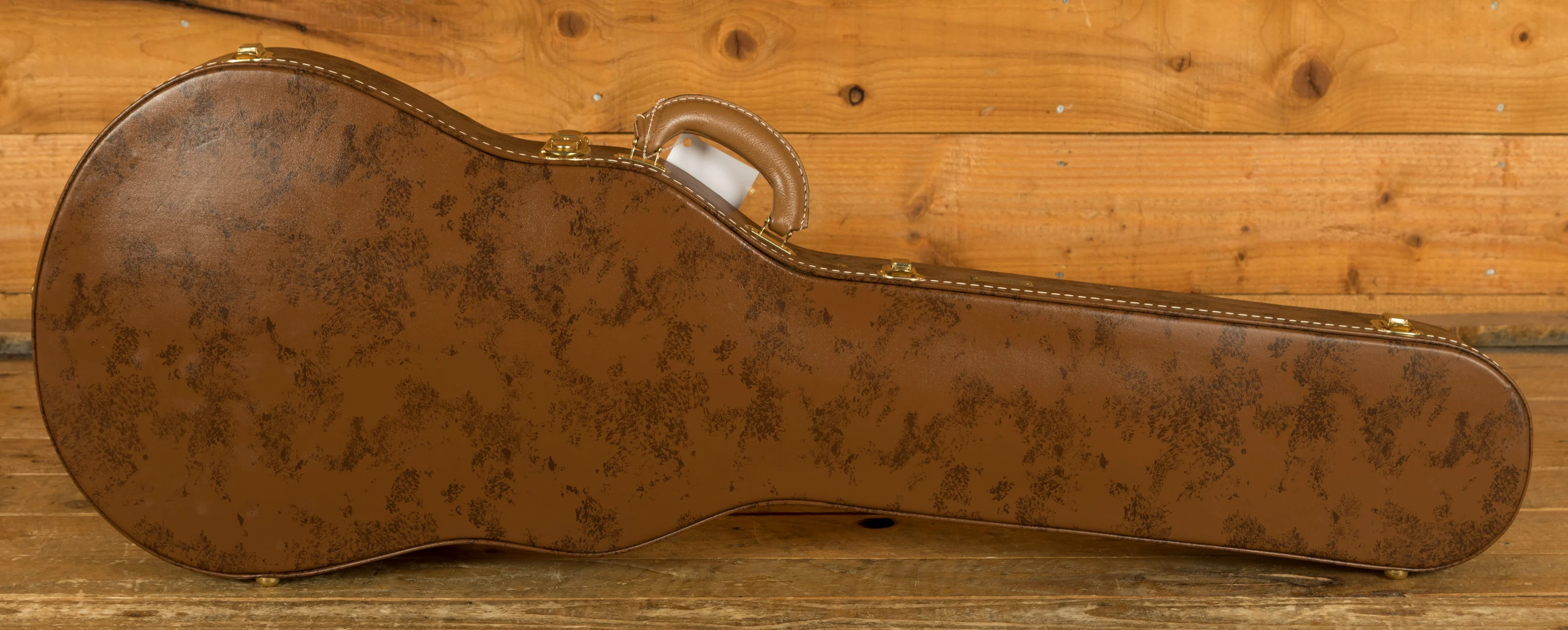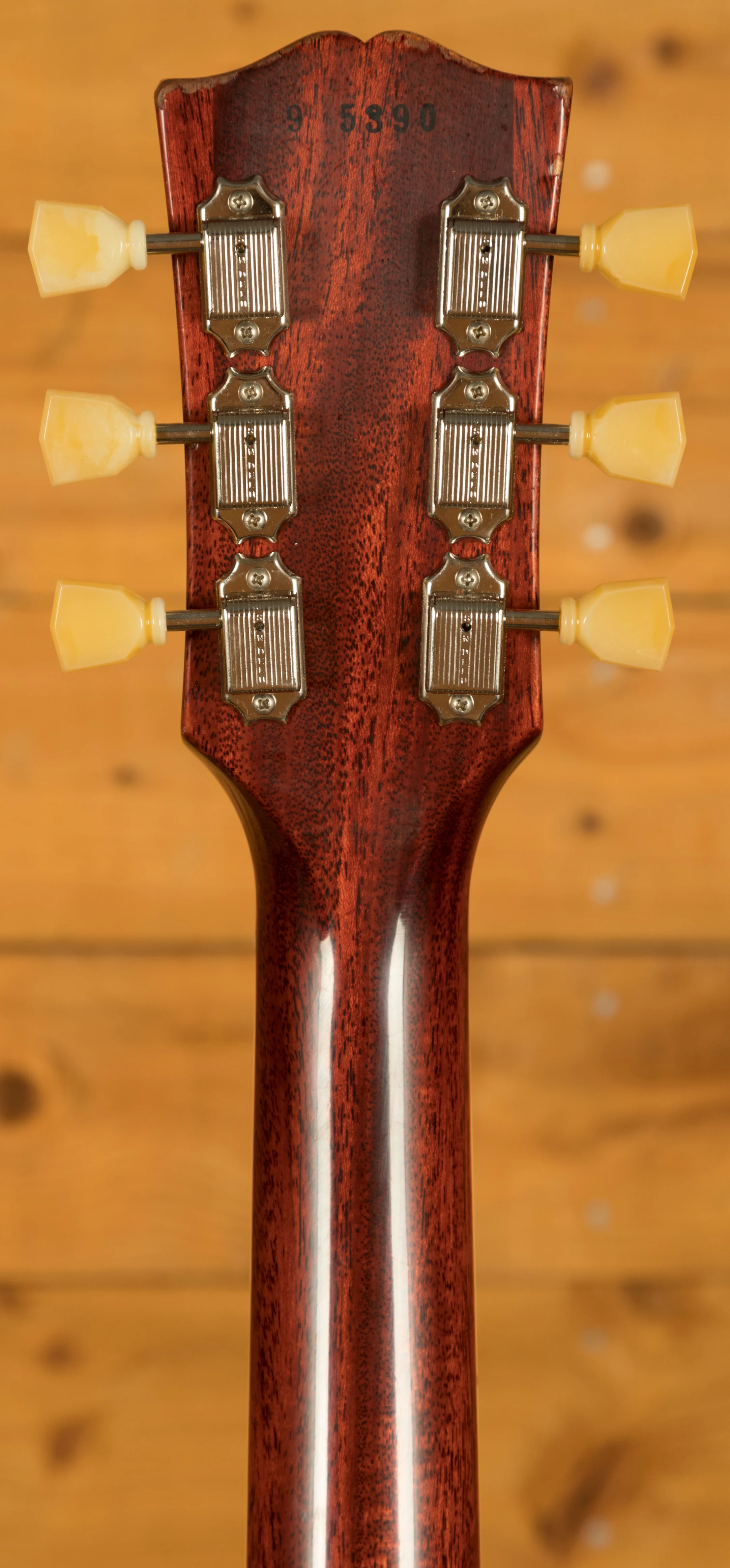 The solid Mahogany neck is constructed with hide glue for improved resonance and stability. It features a comfortable 1959 neck profile, a 24.75" scale length, and an Indian Rosewood fingerboard with classic trapezoid inlays. The 12” radius and medium jumbo frets ensure smooth playability, making it suitable for both lead and rhythm playing. Vintage-style hardware, including an ABR-1 bridge, lightweight stopbar tailpiece, and Kluson tuners, further contribute to the authentic '59 Les Paul experience.