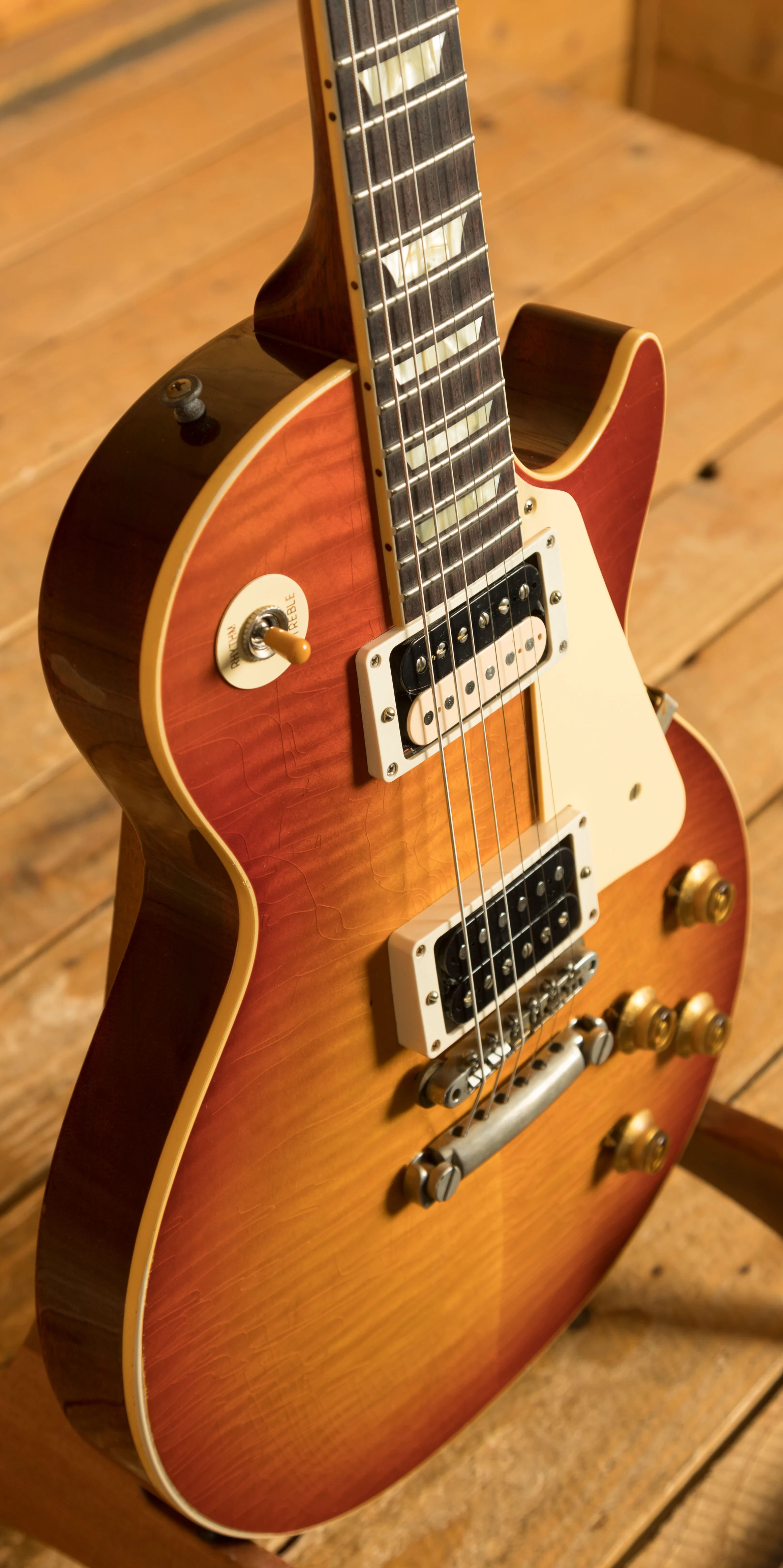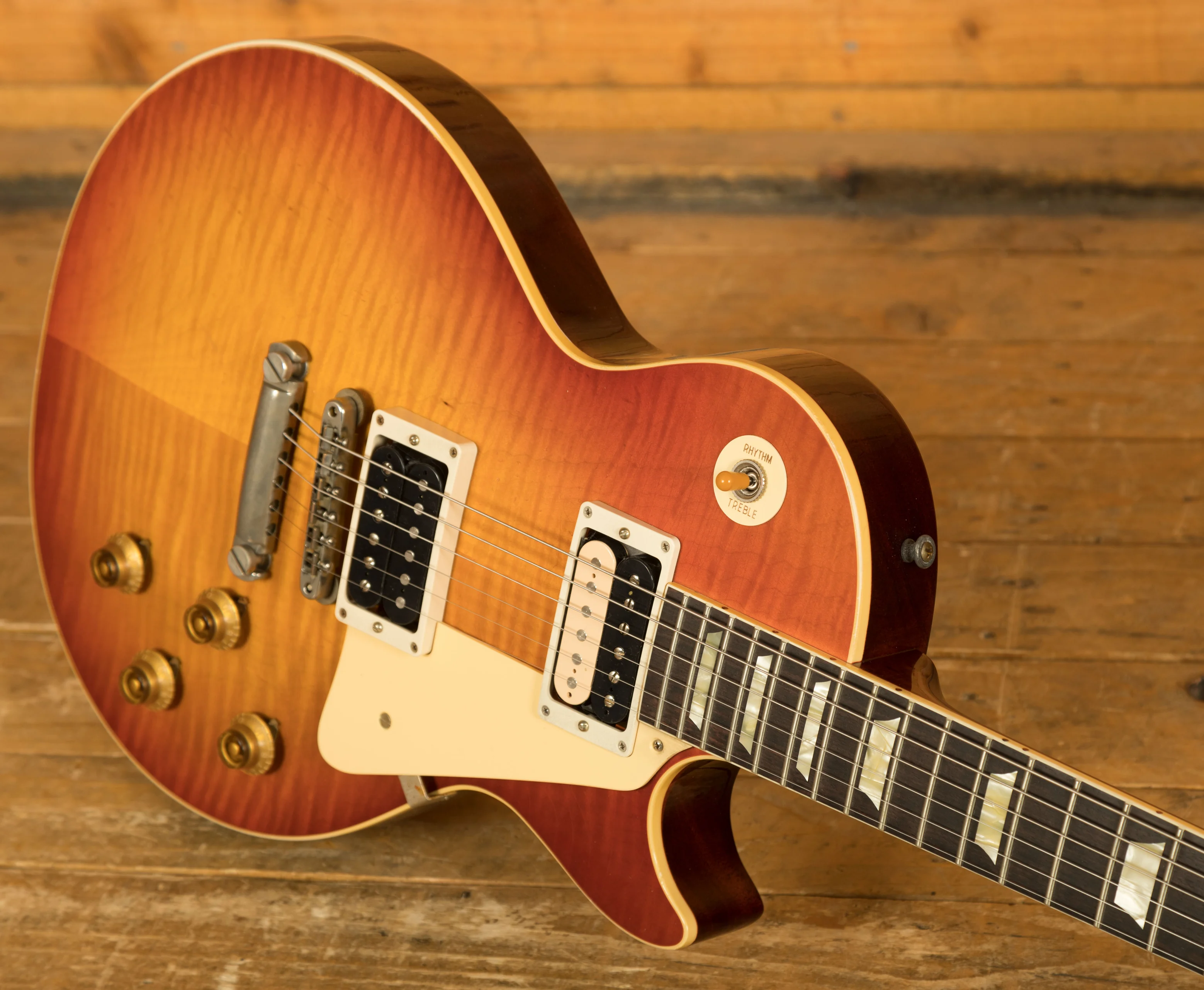 Equipped with Gibson Custom Bucker Alnico 3 pickups, this Les Paul delivers the rich, dynamic tone that made the original '59s legendary. These pickups replicate the sought-after PAF sound, offering warm, articulate cleans and powerful, harmonically complex overdrive. With vintage-accurate wiring and components, this guitar captures the unmistakable character of a true 1959 Les Paul Standard.