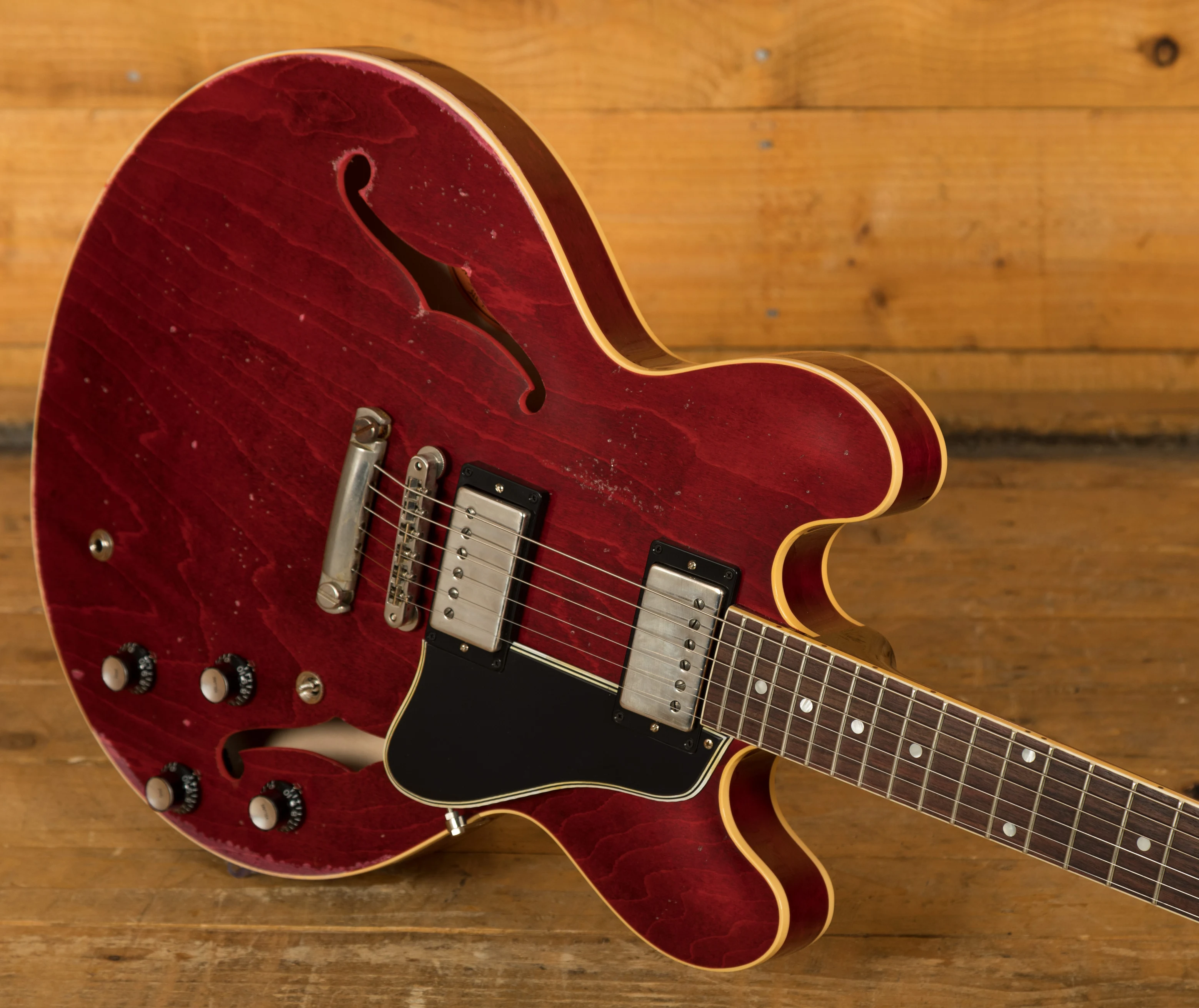 Featuring a 3-ply Maple/Poplar/Maple body, it's finished in a slick, Heavy Aged Sixties Cherry Nitro Lacquer, the attention to detail and craftsmanship shown on this guitar is astonishing. The Murphy Lab really nail that vintage vibe! This ES-335 is super resonant and beautifully balanced; it just oozes that classic Gibson appeal.