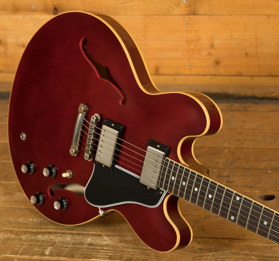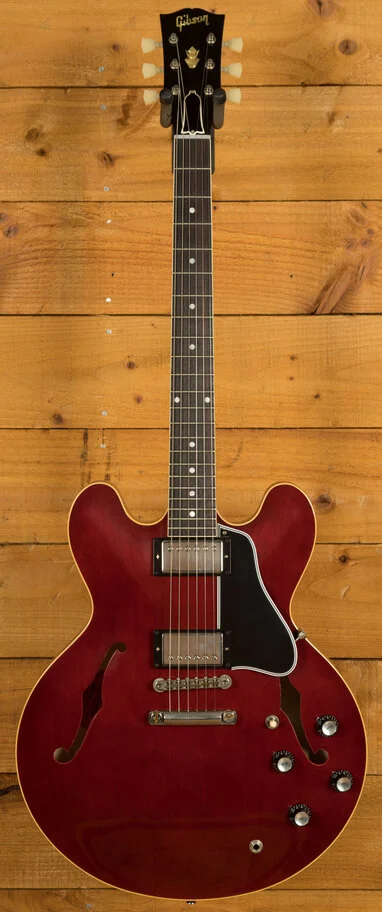 Featuring a 3-ply Maple/Poplar/Maple body, it's finished in a slick, Ultra Light Aged Sixties Cherry Nitro Lacquer, the attention to detail and craftsmanship shown on this guitar is astonishing. The Murphy Lab really nail that vintage vibe! This ES-335 is super resonant and beautifully balanced; it just oozes that classic Gibson appeal.