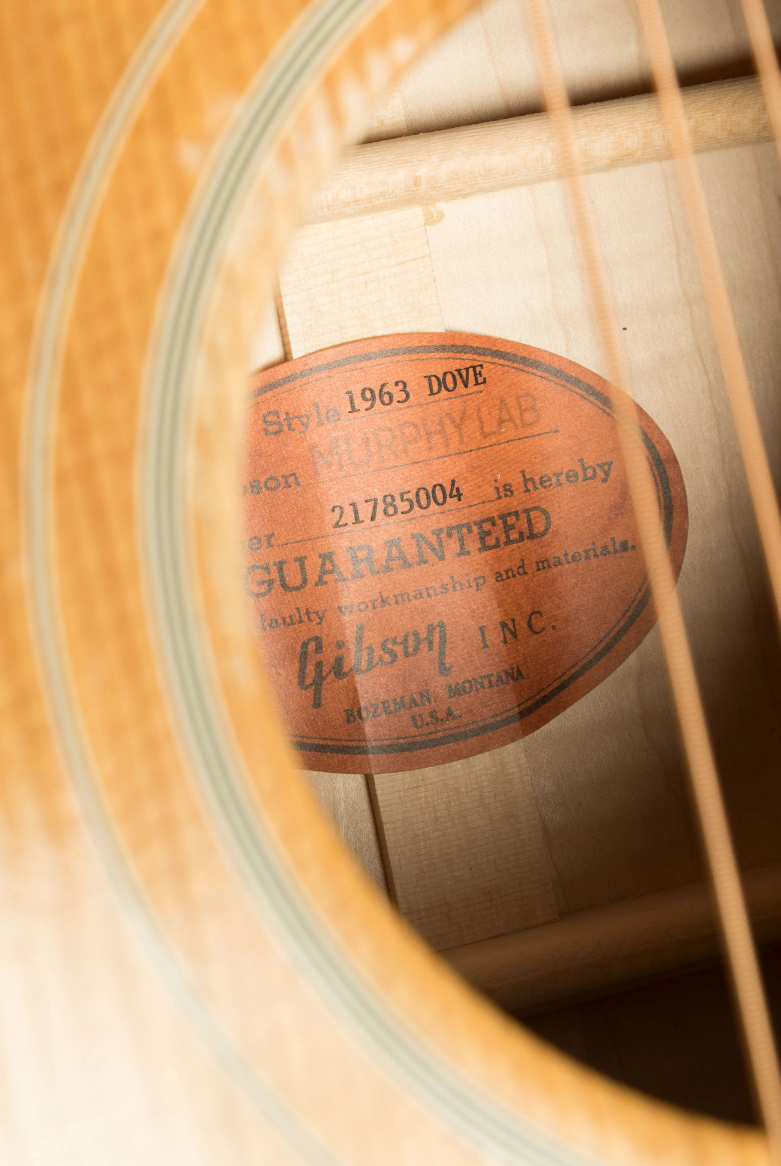 Gibson Custom is proud to unveil the 1963 Dove Light Aged, a precise recreation of the early Dove models. The Murphy Labs expert ageing gives it the look, feel, and character of a treasured vintage original.