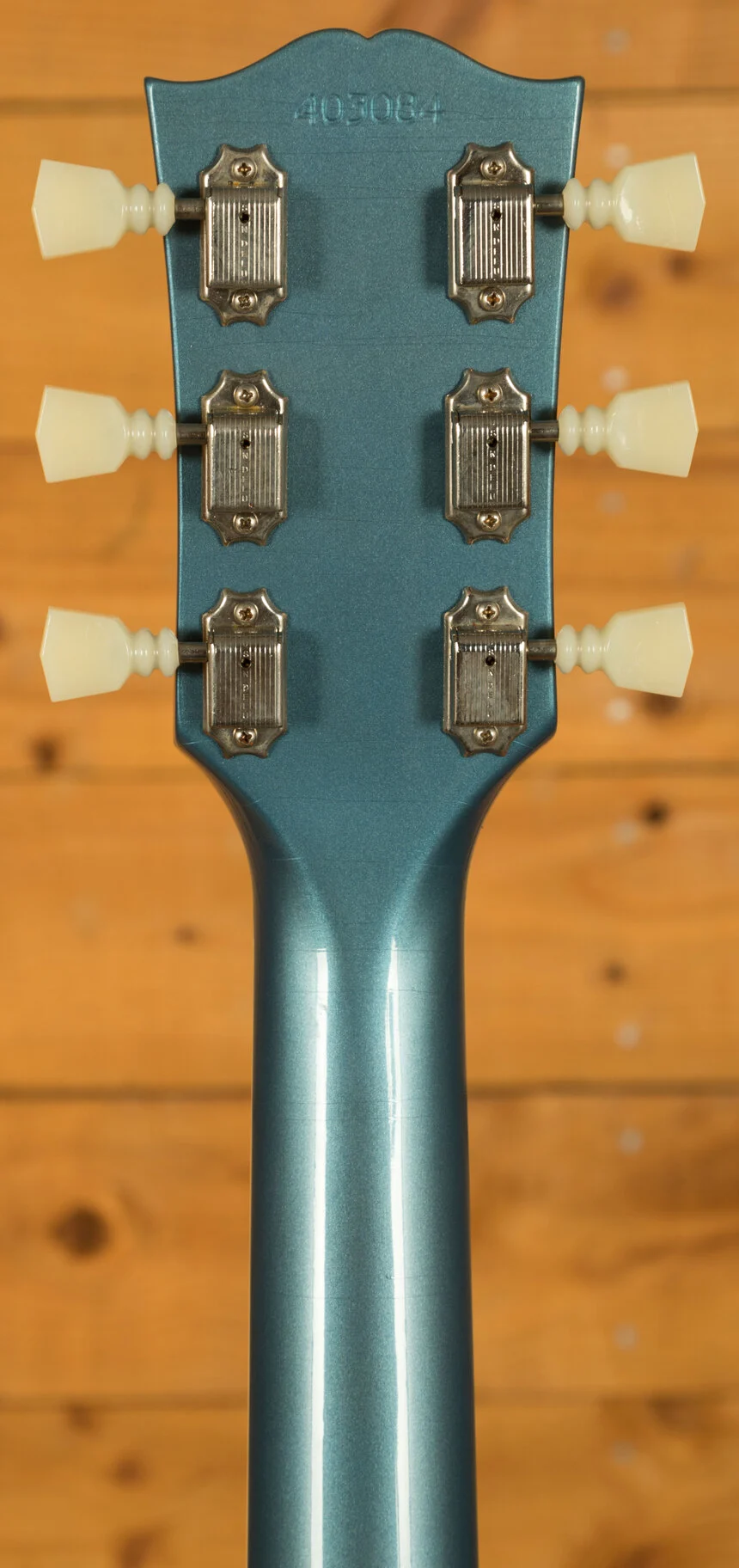 With the classic Mahogany body, finished in a Pelham Blue Ultra Light Aged Nitro Lacquer, this SG is the same mega tone machine we all know and love. The attention to detail and craftsmanship ship on show here is incredible, the Murphy Lab do an incredible job capturing the look and feel of a vintage instrument.