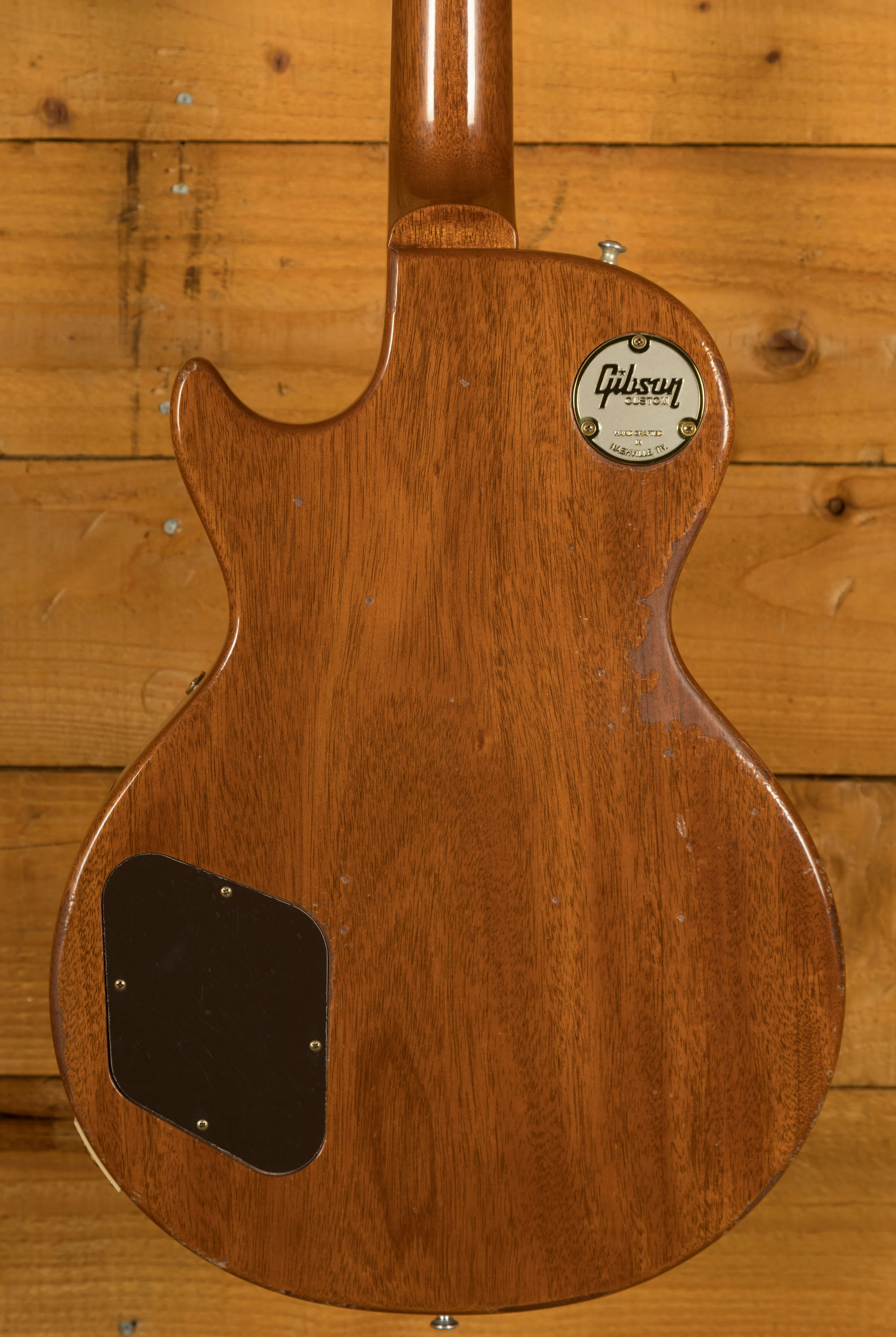 The Gibson Custom Murphy Lab '54 Les Paul Goldtop boasts the exquisite artistry of the skilled artisans at the Murphy Lab, renowned for their unparalleled expertise in ageing techniques. The Murphy Lab Heavy Aged finish treatment, combined with heavily aged hardware, meticulously simulates decades of intense play wear. This process bestows upon the instrument a unique character, vibe, and feel reminiscent of an original example from the revered Gibson Golden Era. Prepare to be transported back in time as your fingertips grace the 2-piece plain maple top and embrace the resonance of the 1-piece lightweight mahogany body, delivering a tonal nirvana like no other.