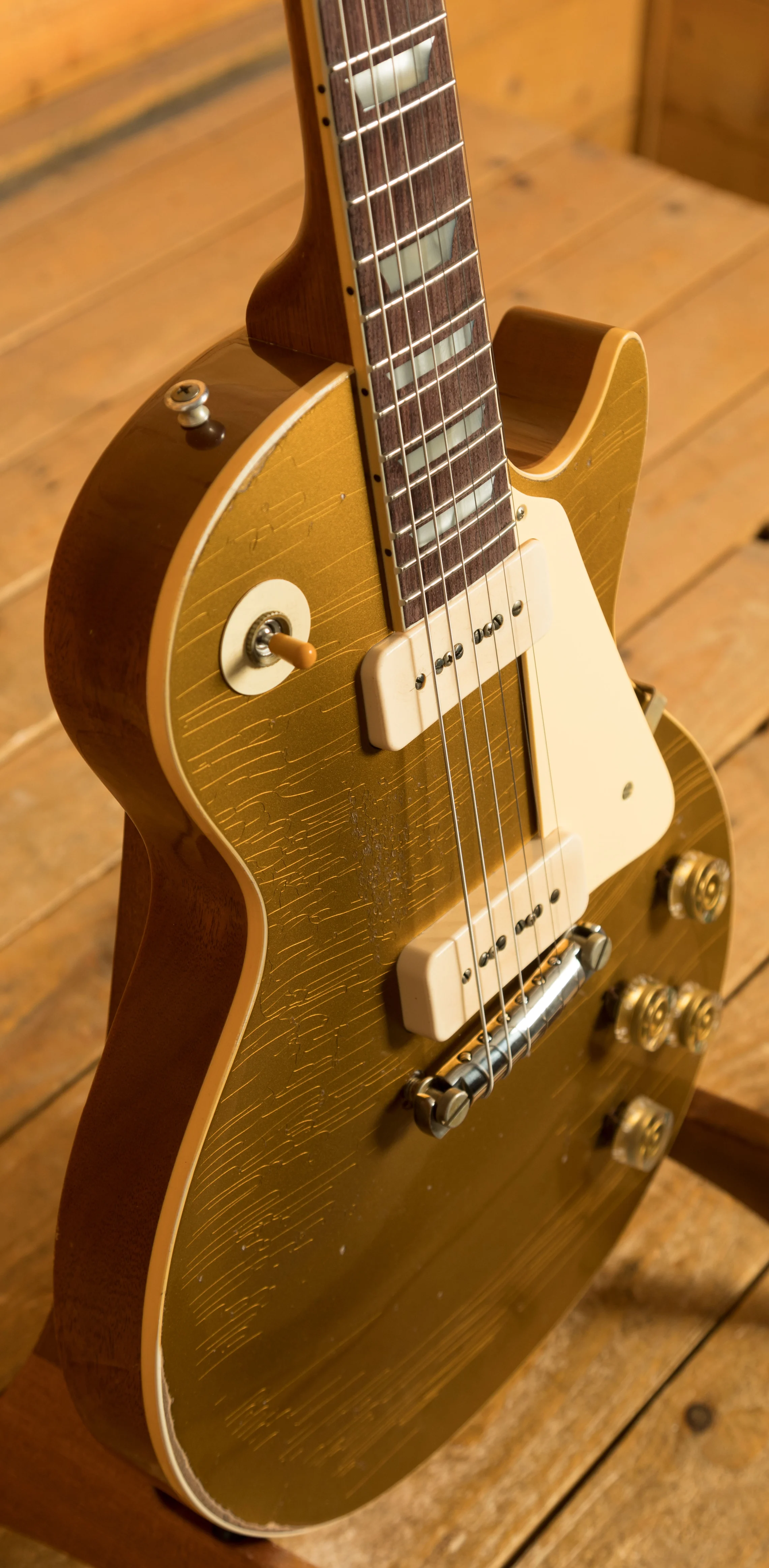 The Gibson Custom Murphy Lab '54 Les Paul Goldtop stands as a testament to Gibson's unwavering commitment to excellence and their relentless pursuit of perfection. Immerse yourself in the golden era of guitar craftsmanship, where every detail has been thoughtfully crafted to capture the essence of a bygone era. Unleash your musical potential and experience the Gold Mine of Tone that awaits you with the Gibson Custom Murphy Lab '54 Les Paul Goldtop!