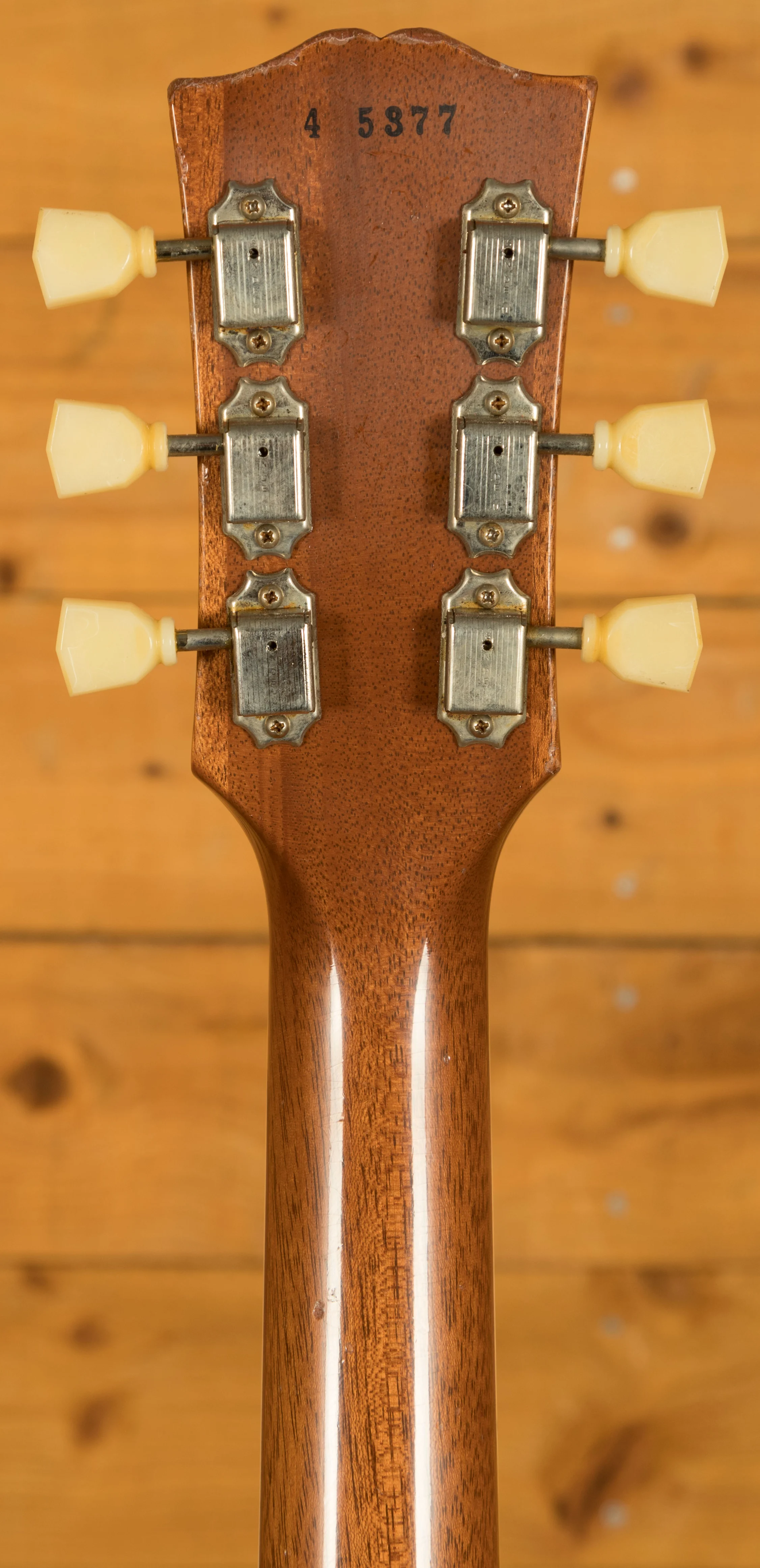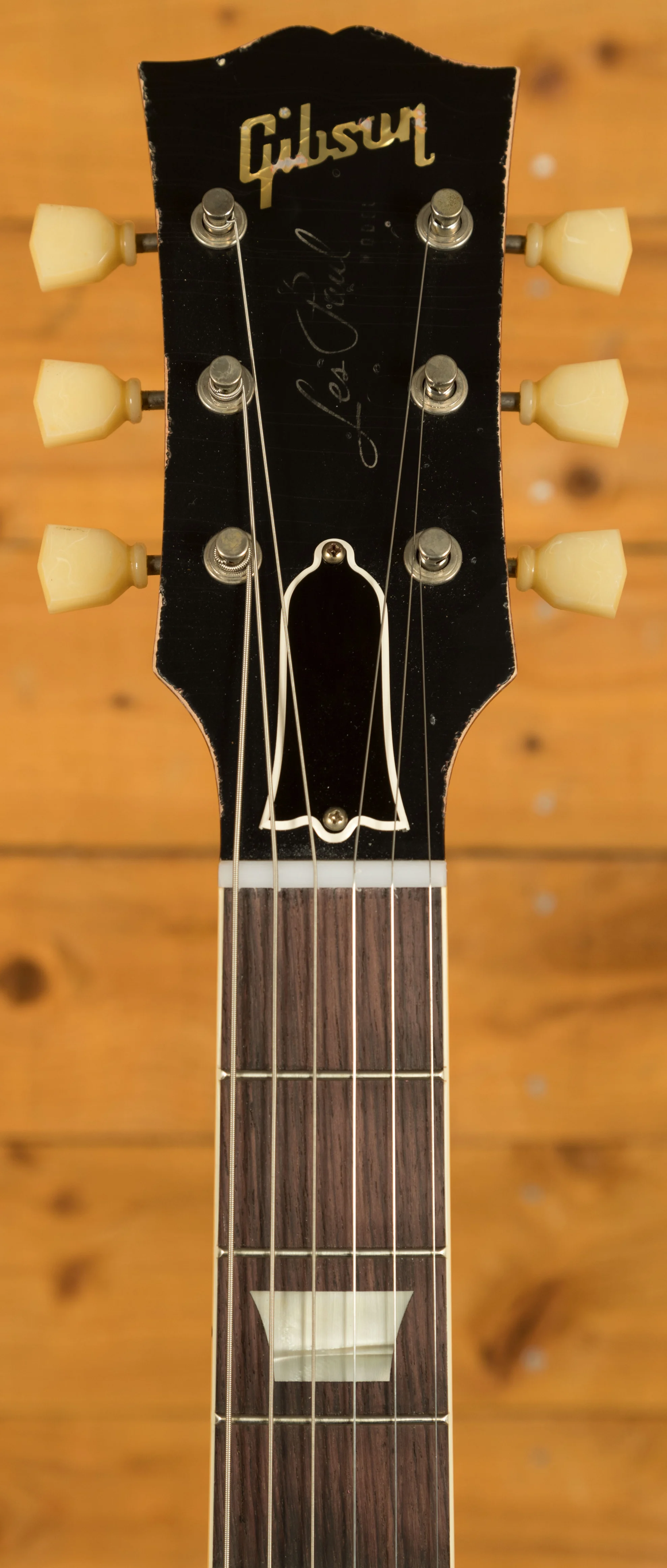 Indulge your senses as you navigate the smooth 50s Rounded Medium C neck profile, ensuring an effortless playing experience that honours the instrument's heritage. The Indian Rosewood fretboard, adorned with 22 Historic Gibson Narrow/Tall frets, beckons your fingers to explore new sonic landscapes, while the aged Cellulose Nitrate Trapezoid inlays add an exquisite touch of vintage authenticity. With a Nyon nut and Kluson tuners, every subtle nuance is catered to, ensuring impeccable tuning stability and intonation.