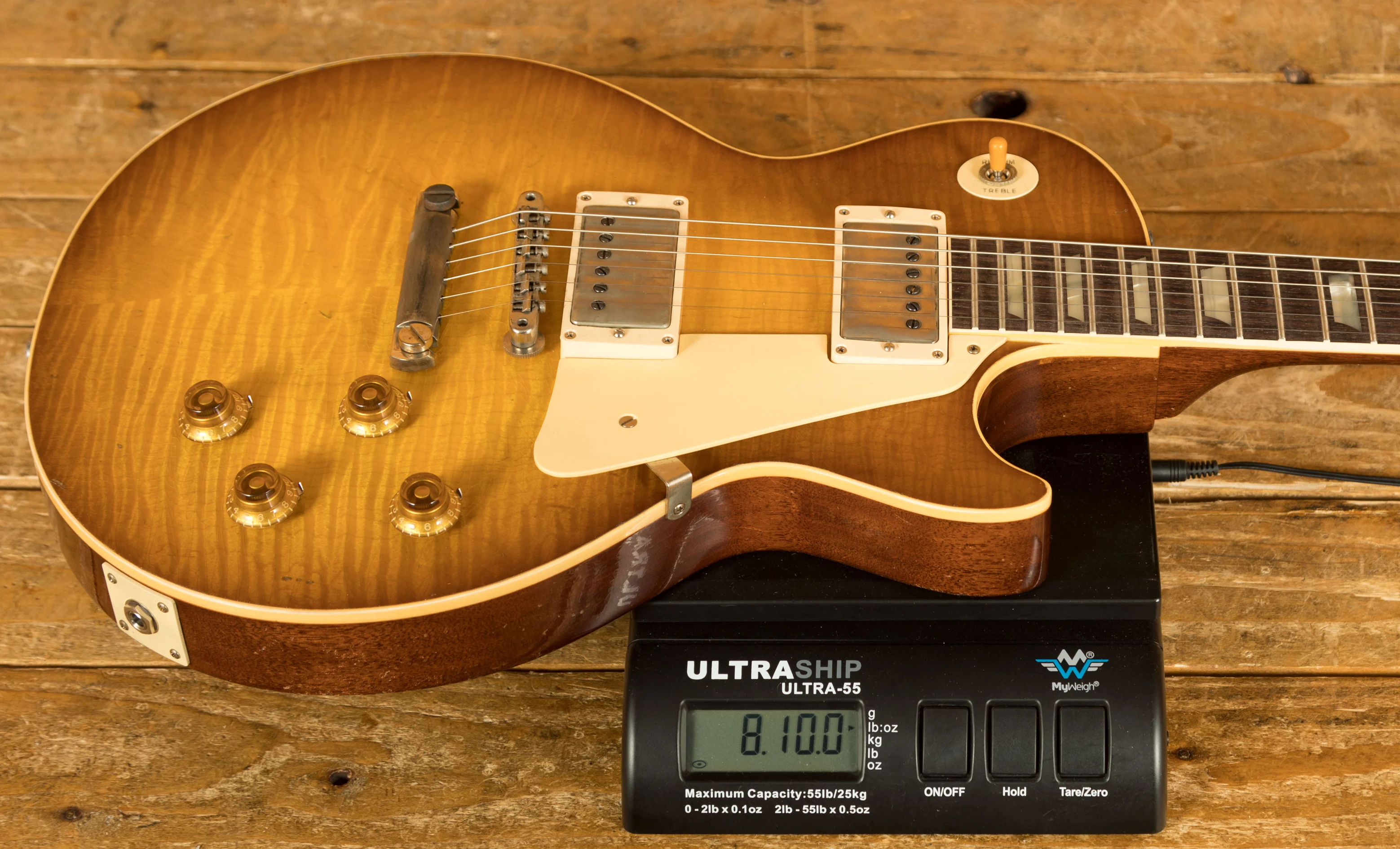 The solid Mahogany neck is topped with a crisp Indian Rosewood fingerboard with classic Gibson Trapezoid inlays, this guitar looks every bit the real deal. With a 24.75" scale length, 12" radius, 1.687" nut width and medium jumbo frets, it retains that classic Les Paul feel. The ABR-1 bridge and light weight stopbar offer an authentic vintage vibe.