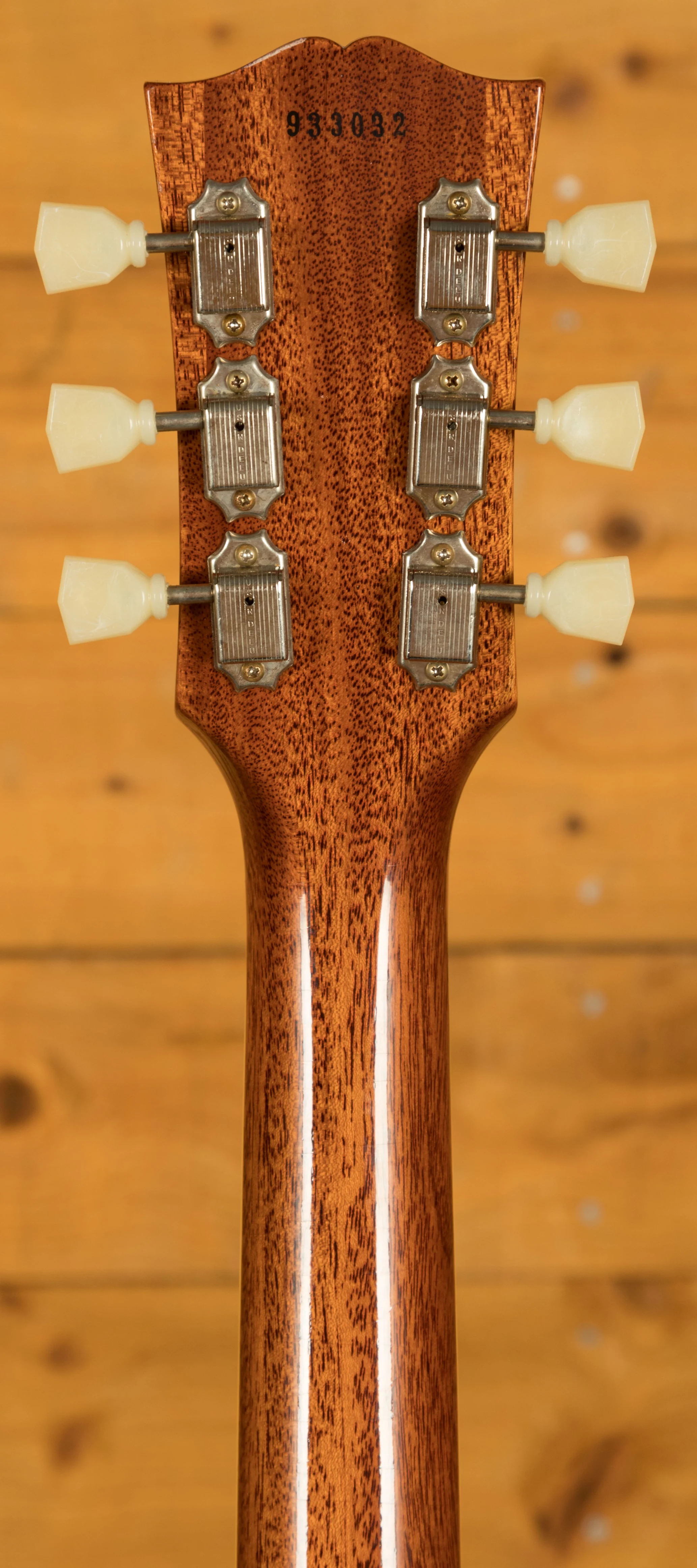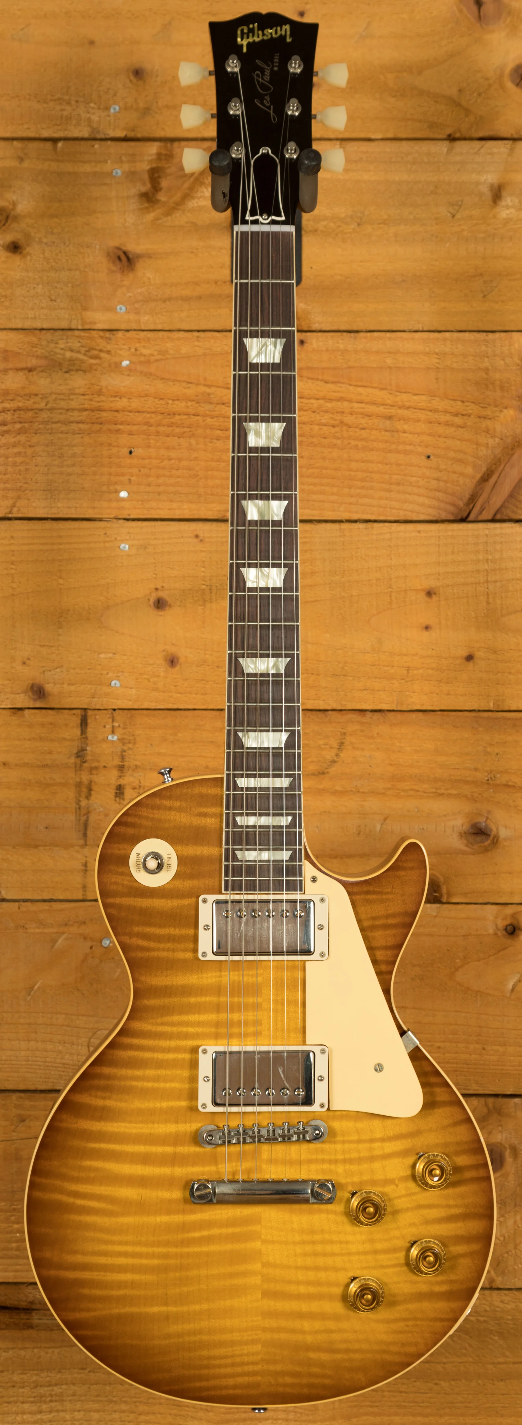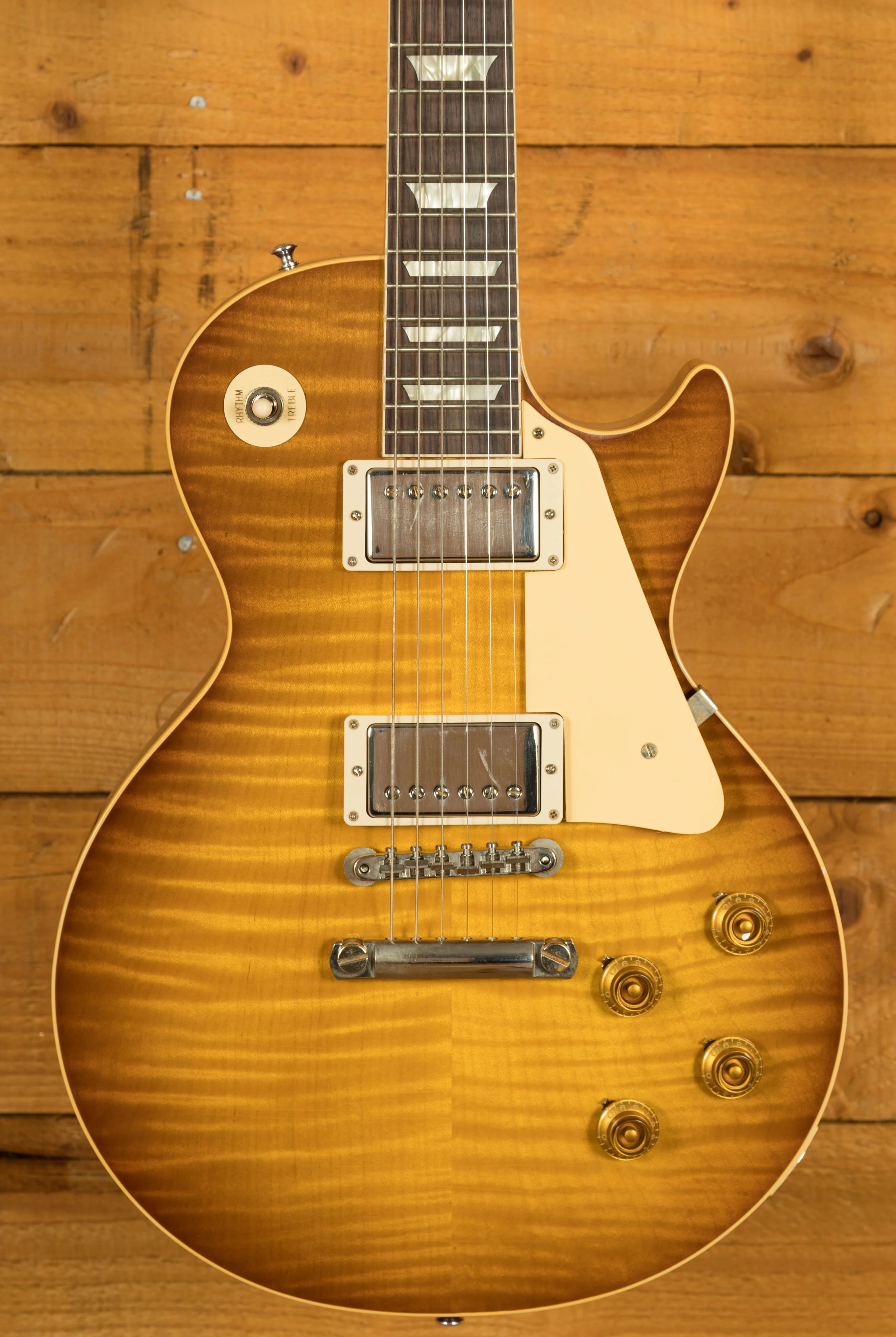 With a Mahogany body, this Les Paul benefits from a hand picked figured Maple top for the ultimate tonewood partnership. We enjoy a very strong relationship with the Gibson Custom Shop here at Peach, with our very own John Priest taking regular trips out to the workshop to pick out some awesome tops for our guitars. The figuring on this beauty is incredible. Rich and super resonant it offers premium tone and timeless aesthetics, while the Golden Poppy Ultra Light Aged Nitro finish looks a million dollars and really allows the wood to breathe and the natural tone to sing through. This Les Paul is of the highest quality. The Murphy Lab do an incredible job of capturing the feel of a vintage instrument. With hide glue construction, this Les Paul offers true vintage tonality.