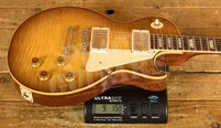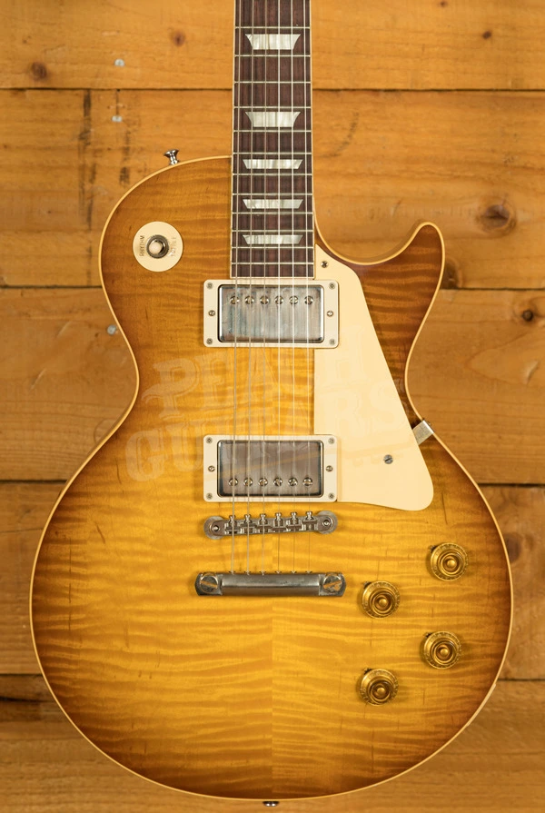 With a Mahogany body, this Les Paul benefits from a hand picked figured Maple top for the ultimate tonewood partnership. We enjoy a very strong relationship with the Gibson Custom Shop here at Peach, with our very own John Priest taking regular trips out to the workshop to pick out some awesome tops for our guitars. The figuring on this beauty is incredible. Rich and super resonant it offers premium tone and timeless aesthetics, while the Golden Poppy Ultra Light Aged Nitro finish looks a million dollars and really allows the wood to breathe and the natural tone to sing through. This Les Paul is of the highest quality. The Murphy Lab do an incredible job of capturing the feel of a vintage instrument. With hide glue construction, this Les Paul offers true vintage tonality.