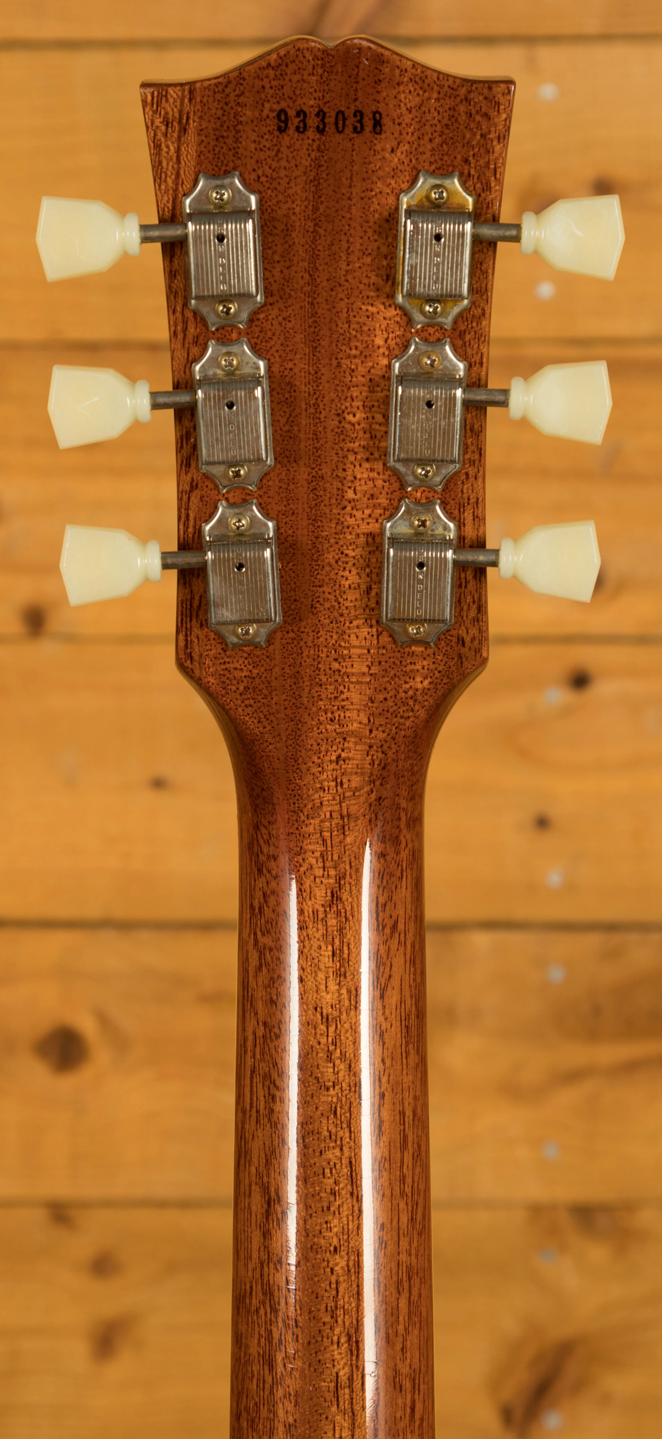 With a Mahogany body, this Les Paul benefits from a hand picked figured Maple top for the ultimate tonewood partnership. We enjoy a very strong relationship with the Gibson Custom Shop here at Peach, with our very own John Priest taking regular trips out to the workshop to pick out some awesome tops for our guitars. The figuring on this beauty is incredible. Rich and super resonant it offers premium tone and timeless aesthetics, while the Golden Poppy Ultra Light Aged Nitro finish looks a million dollars and really allows the wood to breathe and the natural tone to sing through. This Les Paul is of the highest quality. The Murphy Lab do an incredible job of capturing the feel of a vintage instrument. With hide glue construction, this Les Paul offers true vintage tonality.