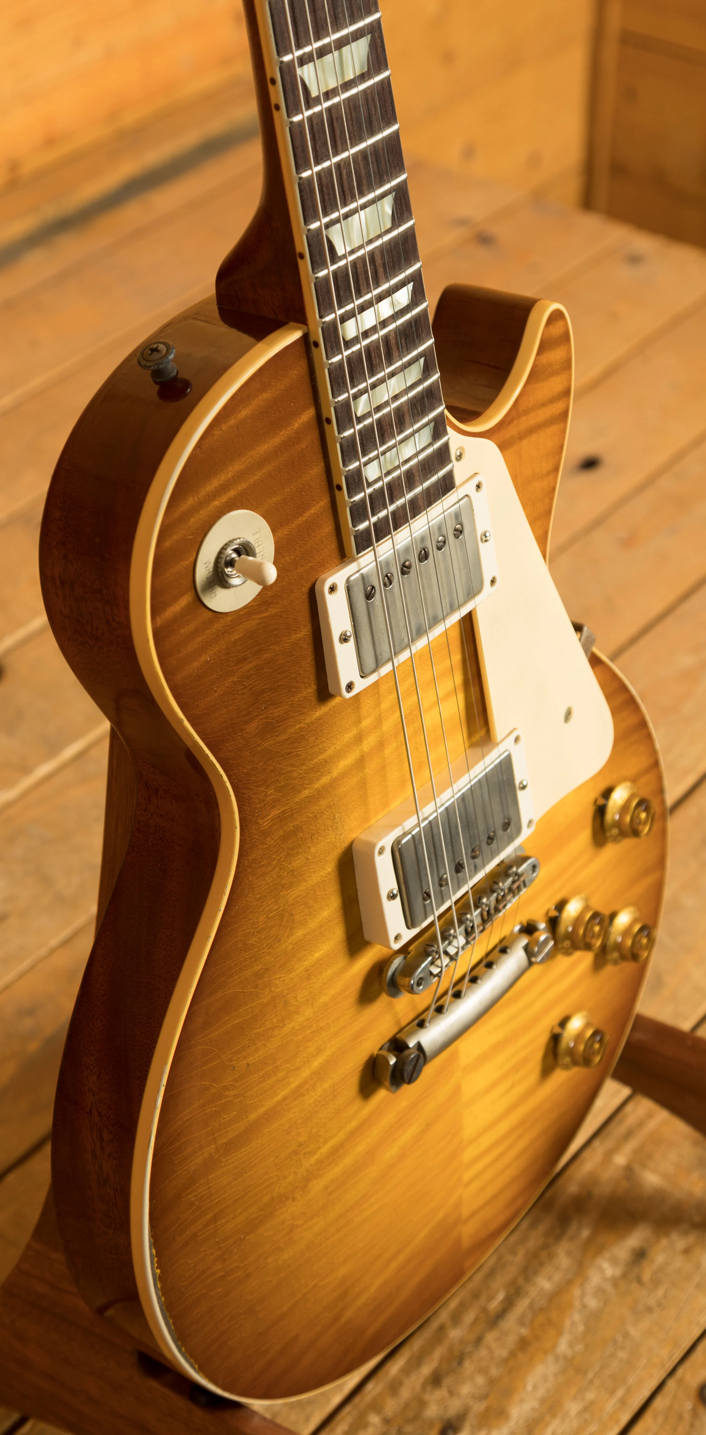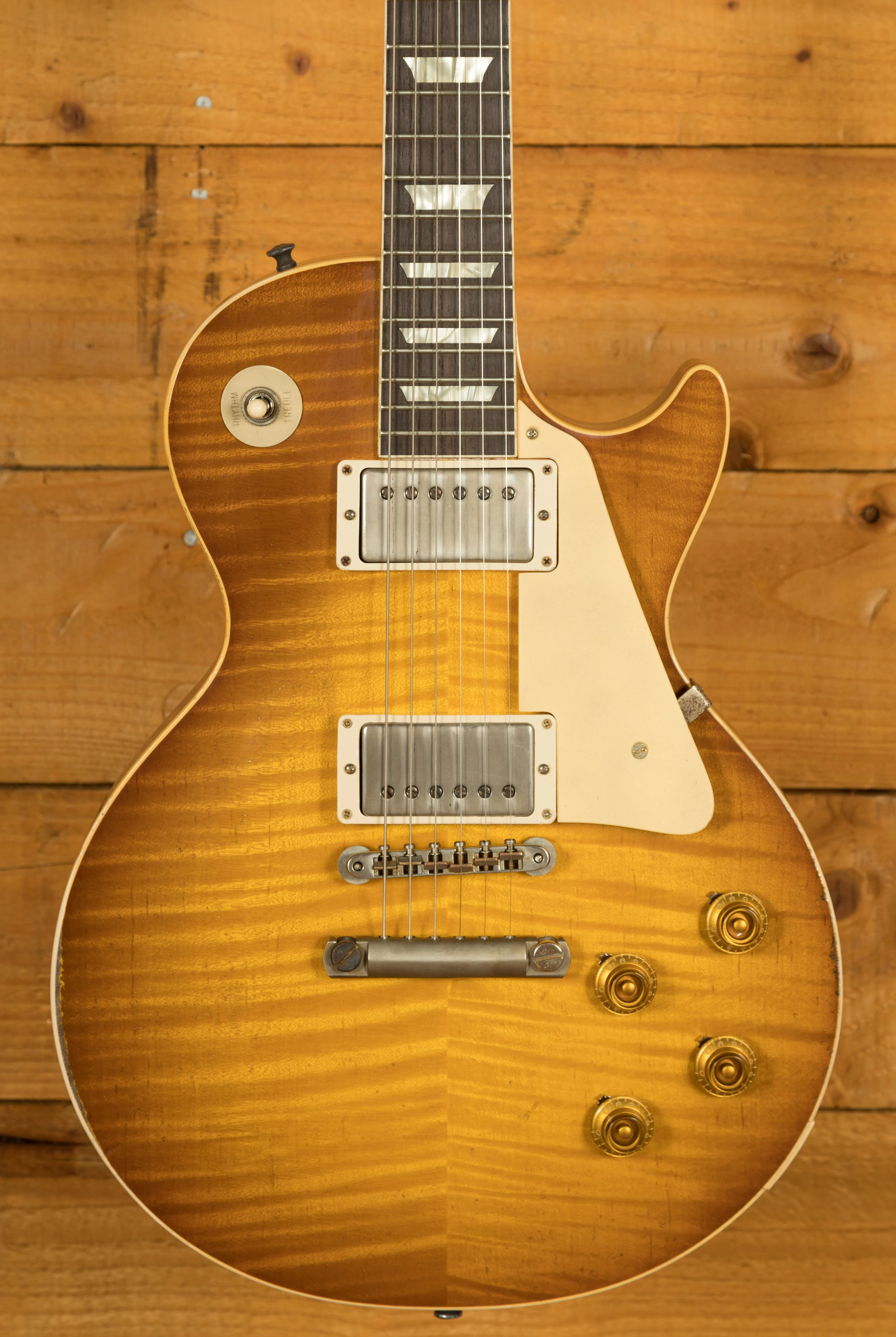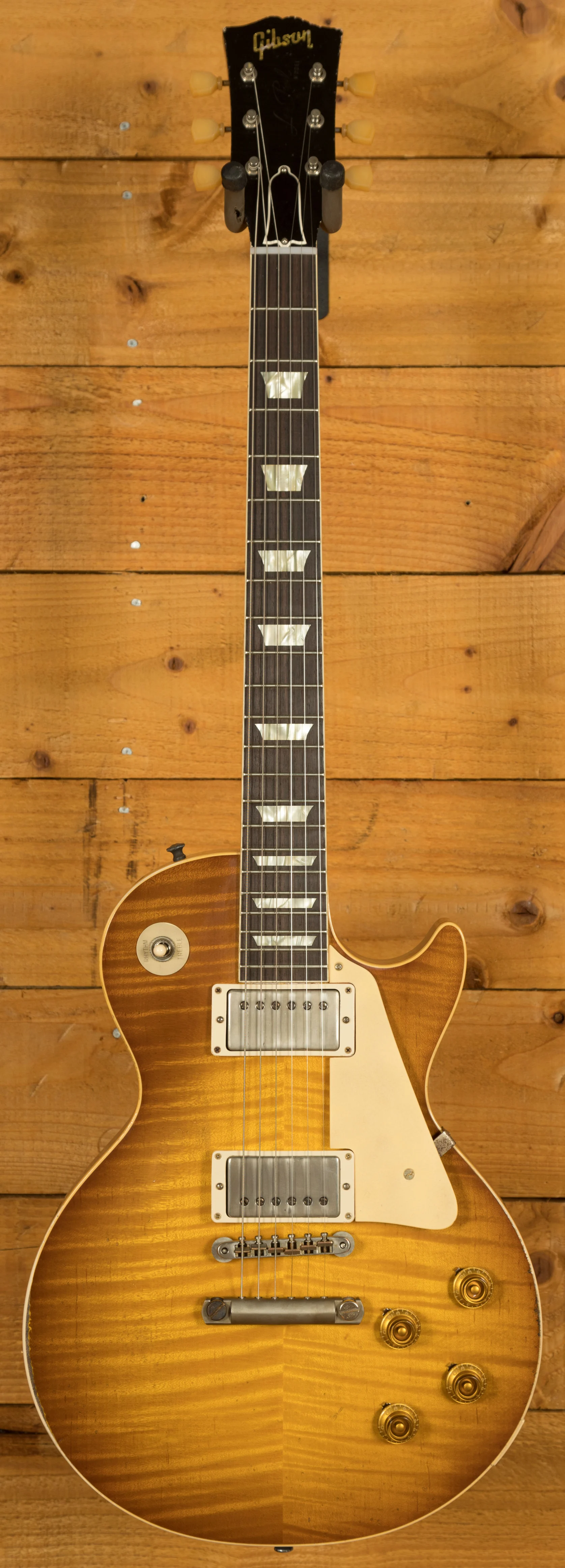 With a Mahogany body, this Les Paul benefits from a figured Maple top for the ultimate tonewood partnership.The figuring on this beauty is incredible. Rich and super resonant it offers premium tone and timeless aesthetics, while the Golden Poppy Burst w/Shadows Heavy Aged Nitro finish looks a million dollars and really allows the wood to breathe and the natural tone to sing through. The Murphy Lab do an incredible job of capturing the feel of a vintage instrument. With hide glue construction, this Les Paul offers true vintage tonality.