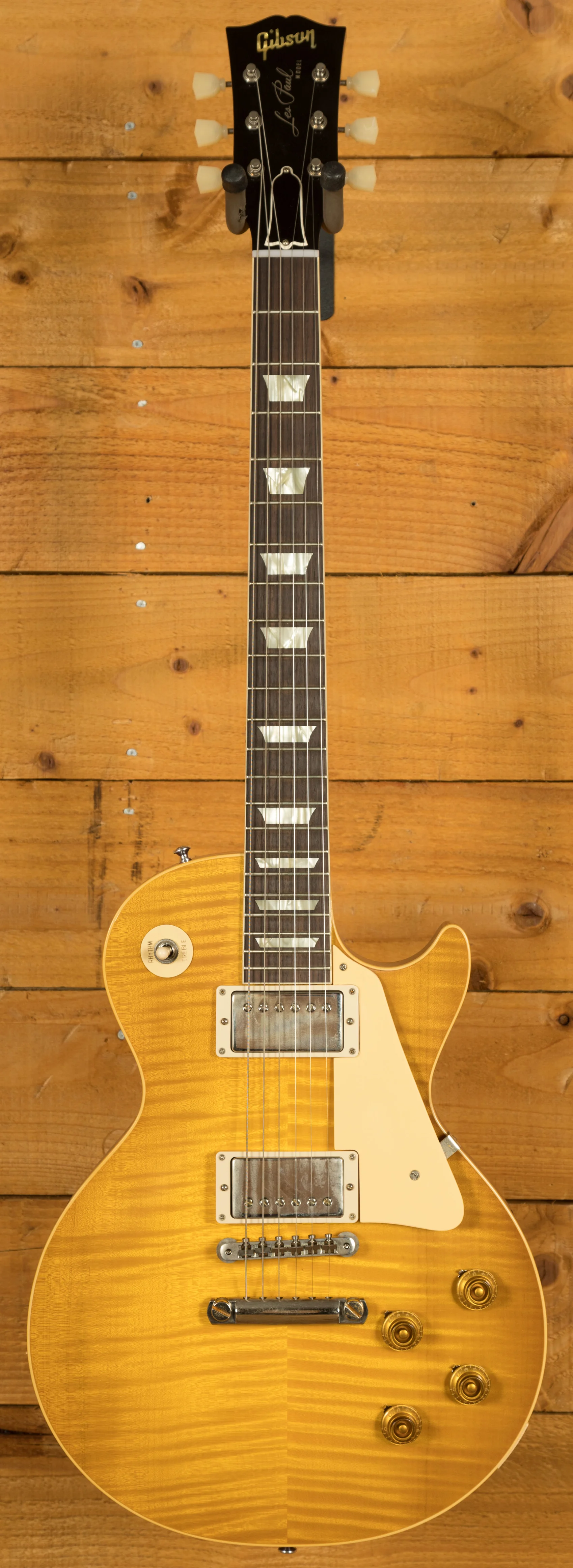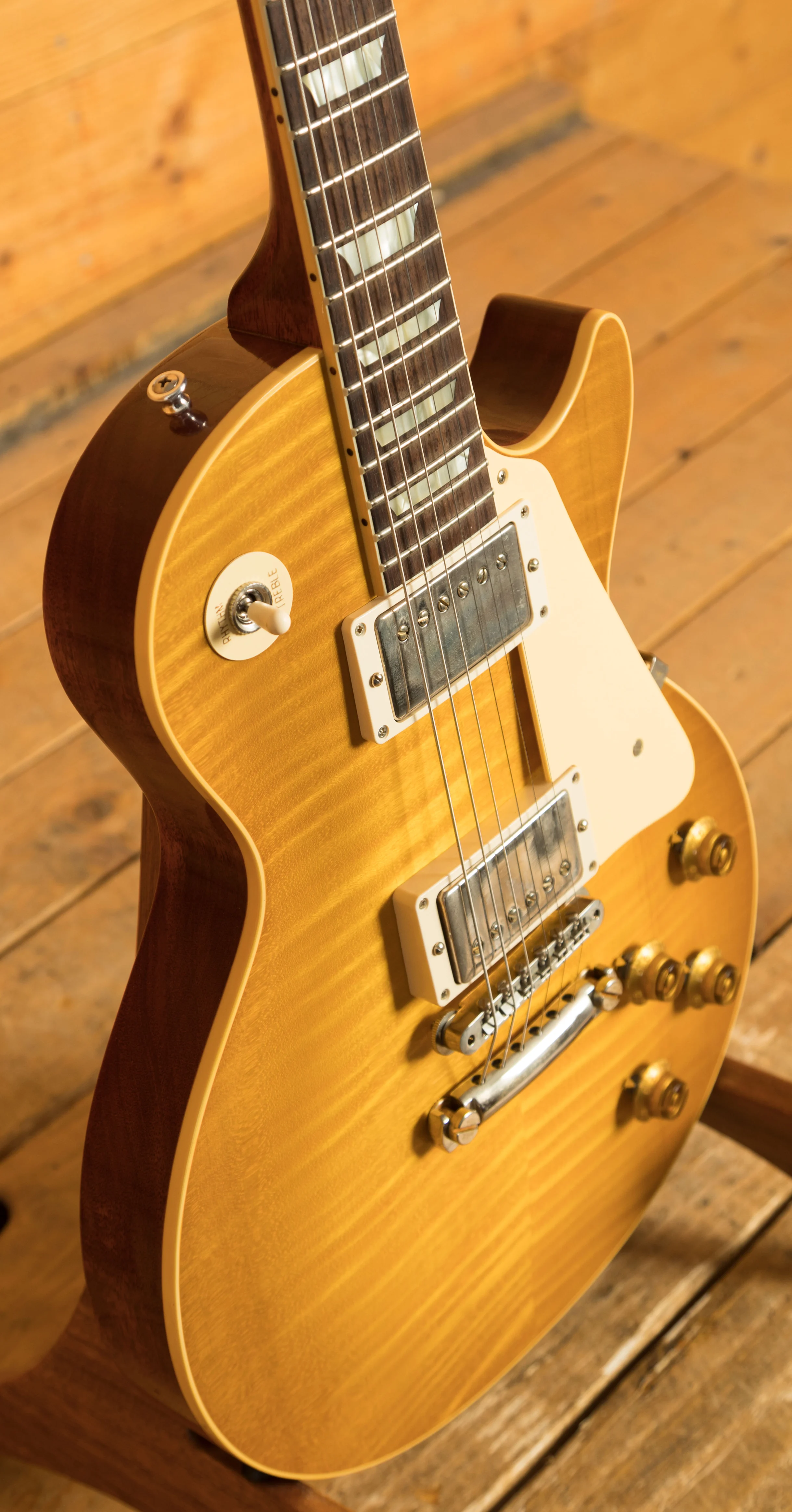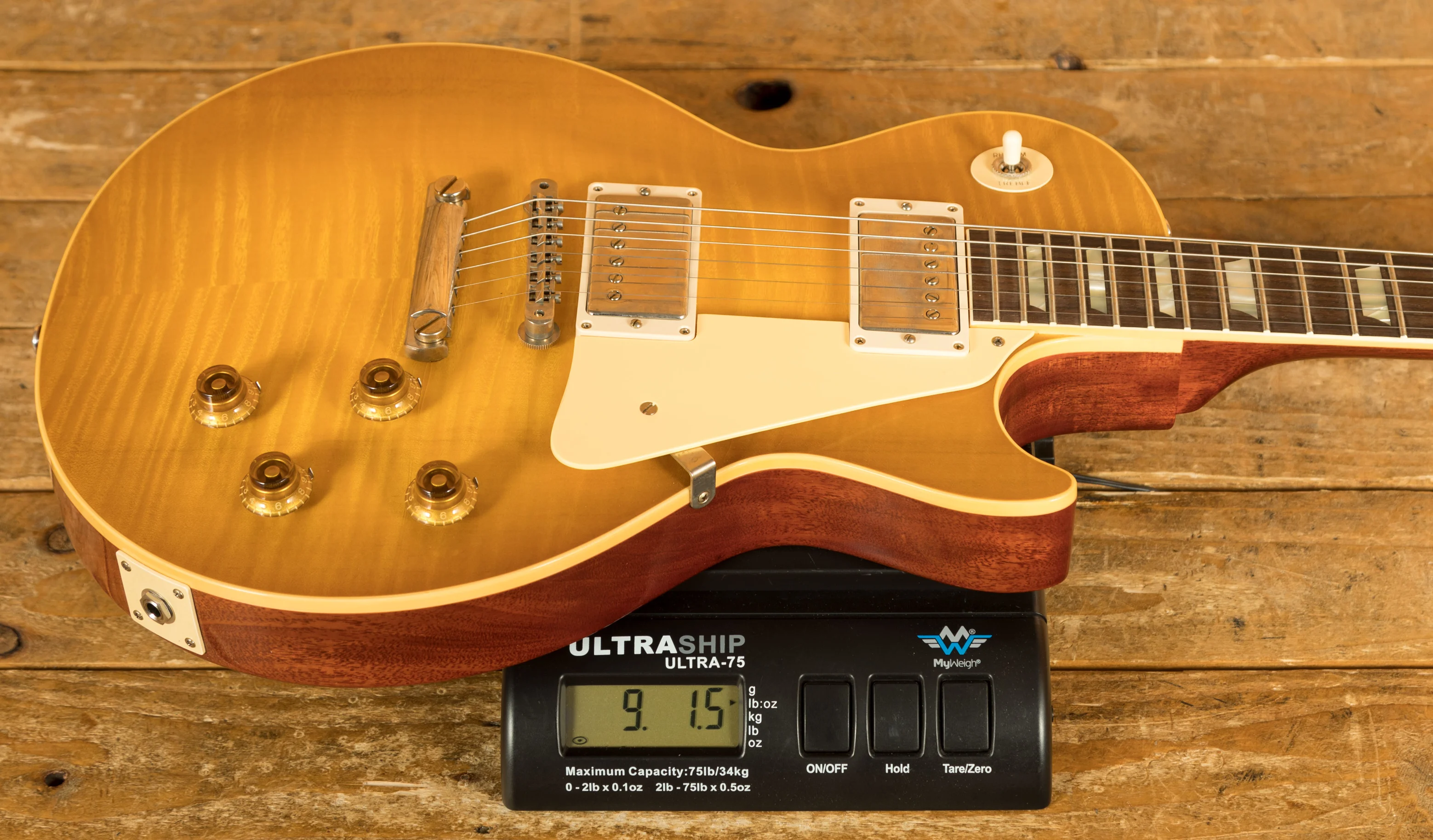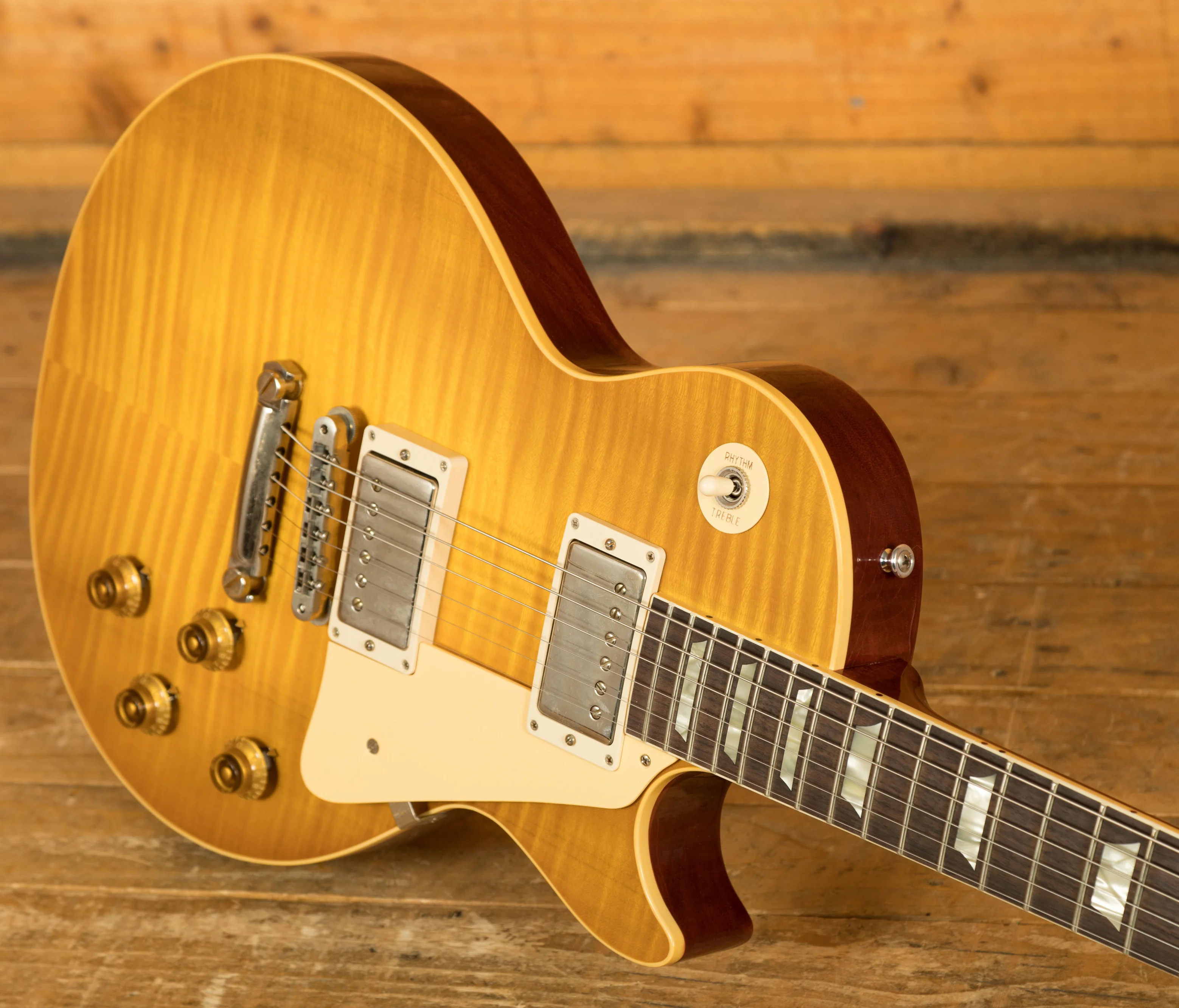 With a Mahogany body, this Les Paul benefits from a hand picked figured Maple top for the ultimate tonewood partnership. We enjoy a very strong relationship with the Gibson Custom Shop here at Peach, with our very own John Priest taking regular trips out to the workshop to pick out some awesome tops for our guitars. The figuring on this beauty is incredible. Rich and super resonant it offers premium tone and timeless aesthetics, while the Lemon BurstUltra Light Aged Nitro finish looks a million dollars and really allows the wood to breathe and the natural tone to sing through. This Les Paul is of the highest quality. The Murphy Lab do an incredible job of capturing the feel of a vintage instrument. With hide glue construction, this Les Paul offers true vintage tonality.