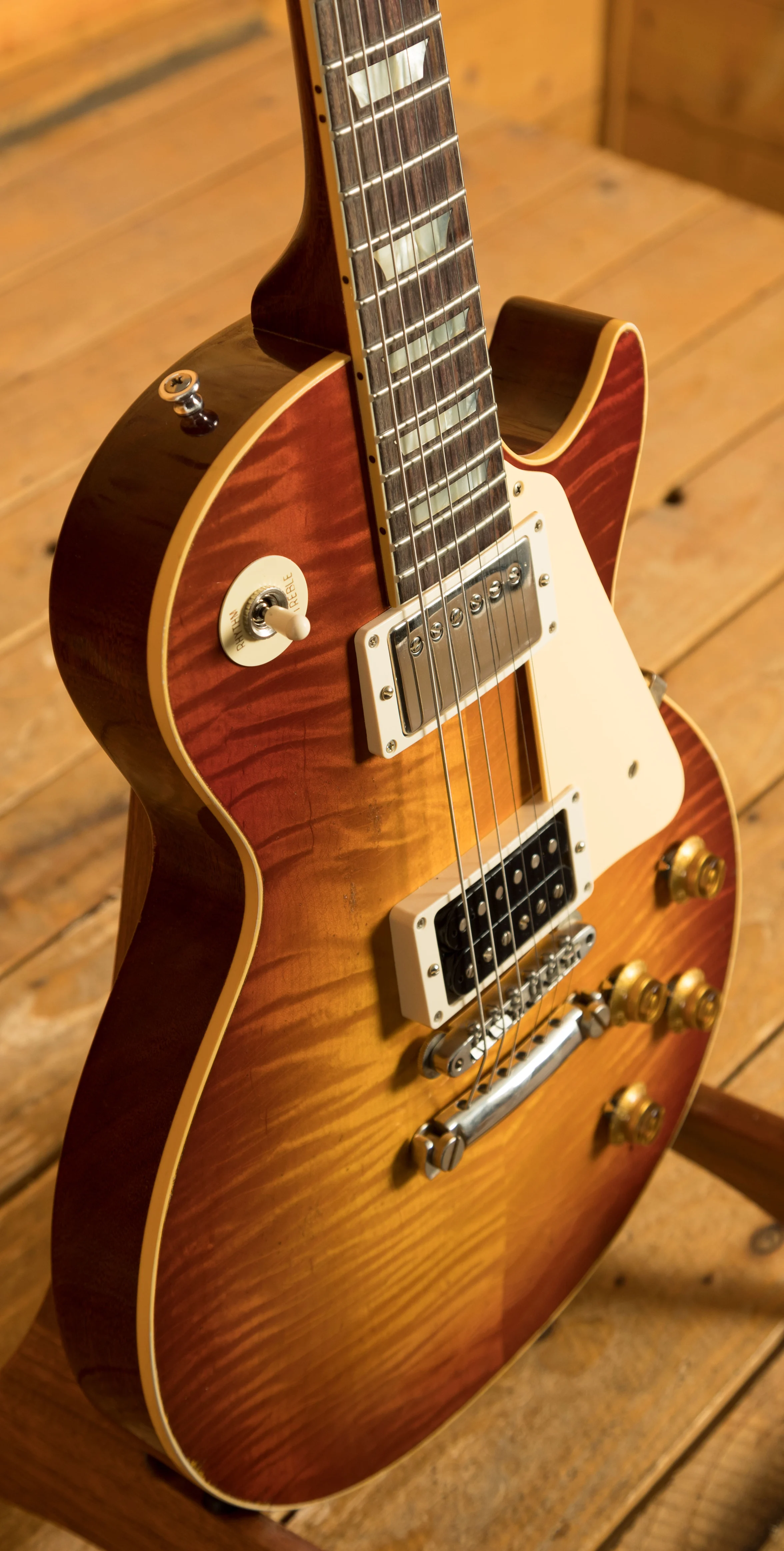With a Mahogany body, this Les Paul benefits from a figured Maple top for the ultimate tonewood partnership. Rich and super resonant it offers premium tone and timeless aesthetics, while the Sunrise Tea Burst Light Aged Nitro finish looks a million dollars and really allows the wood to breathe and the natural tone to sing through. The Murphy Lab do an incredible job of capturing the feel of a vintage instrument. With hide glue construction, this Les Paul offers true vintage tonality.