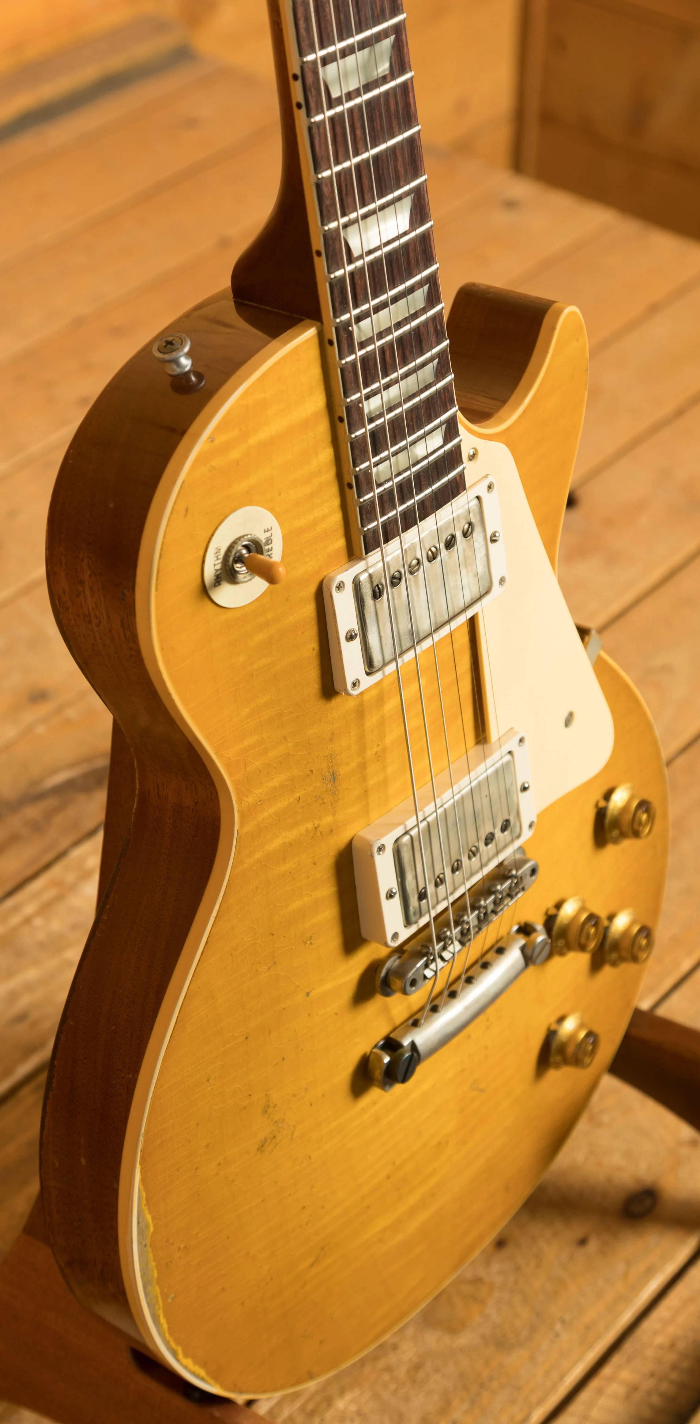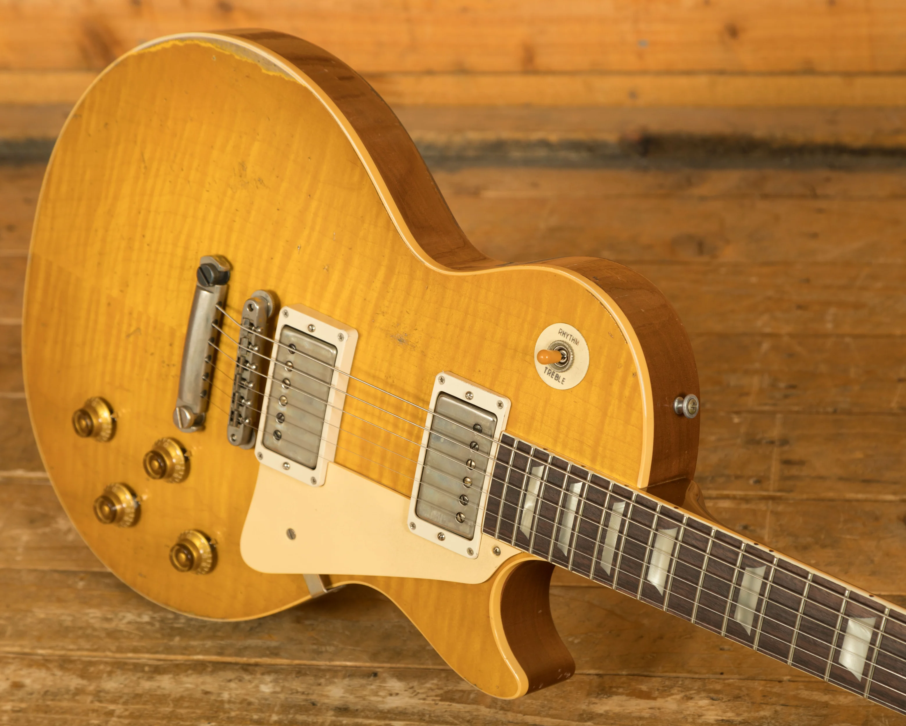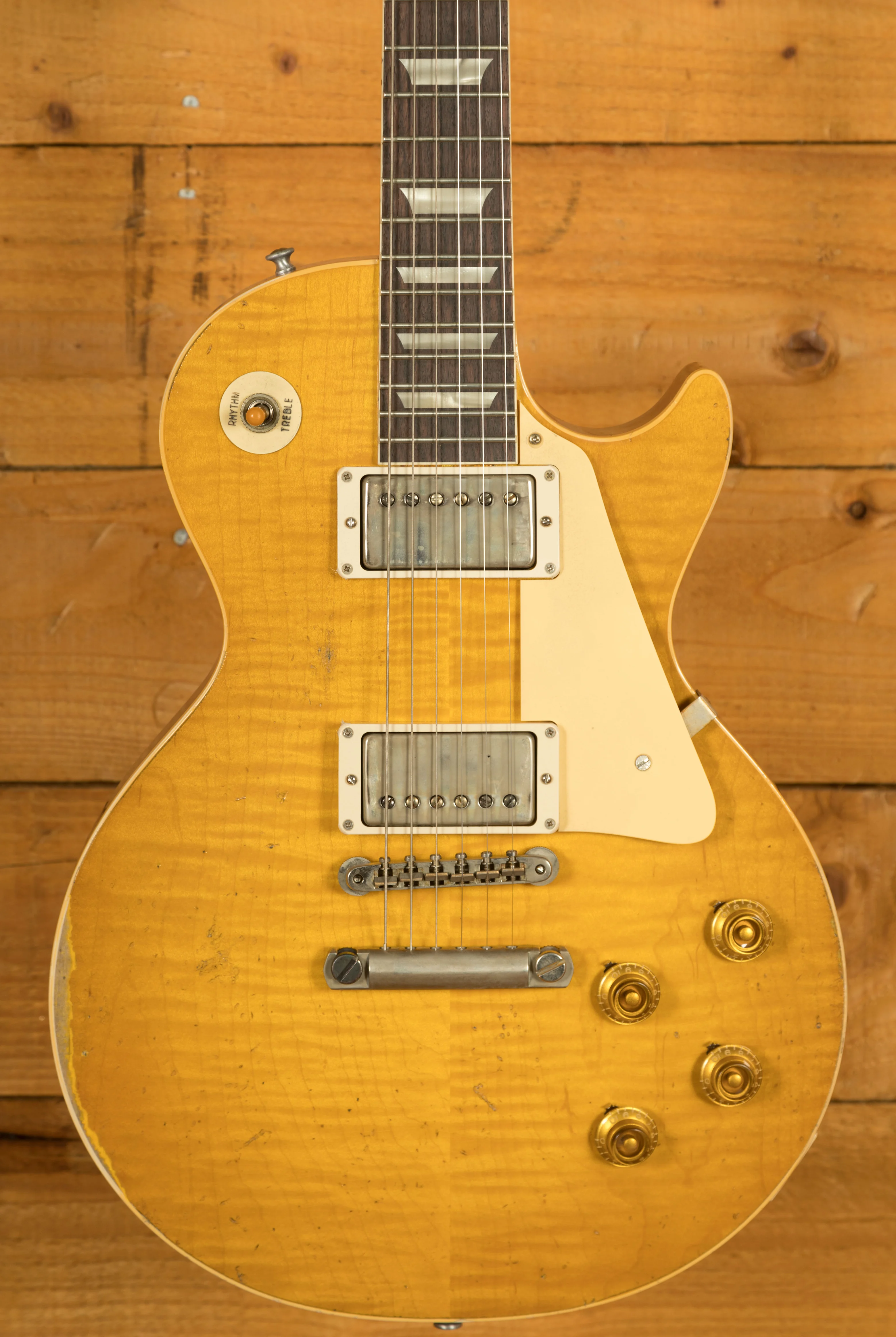With a Mahogany body, this Les Paul benefits from a figured Maple top for the ultimate tonewood partnership.The figuring on this beauty is incredible. Rich and super resonant it offers premium tone and timeless aesthetics. The Lemon Burst Ultra Heavy Aged Nitro finish looks a million dollars and really allows the wood to breathe and the natural tone to sing through. The Murphy Lab do an incredible job of capturing the feel of a vintage instrument. With hide glue construction, this Les Paul offers true vintage tonality.
