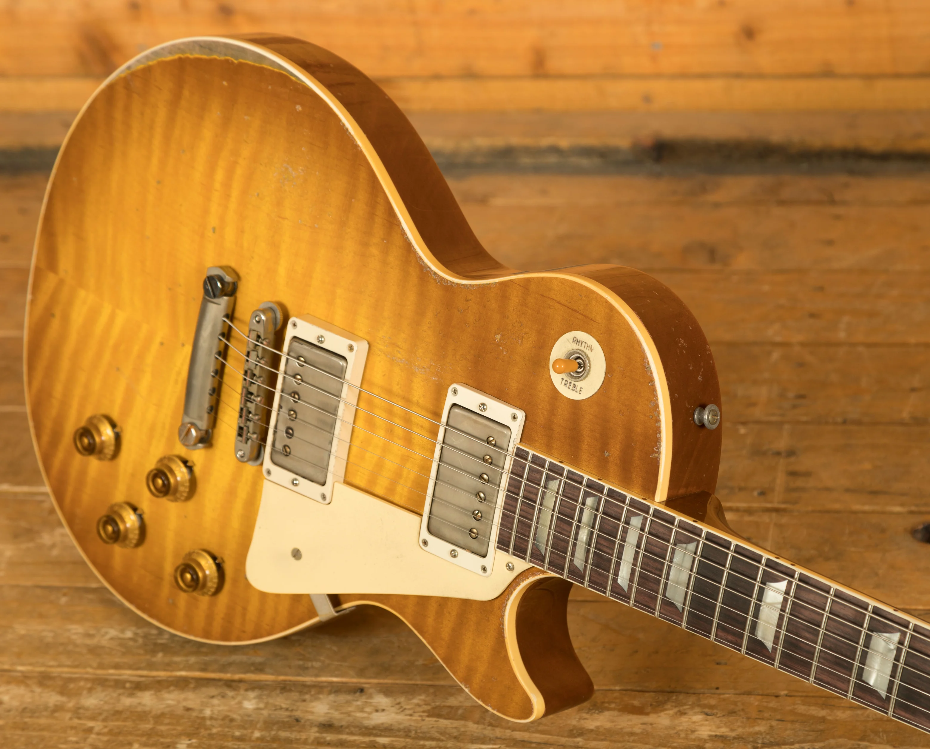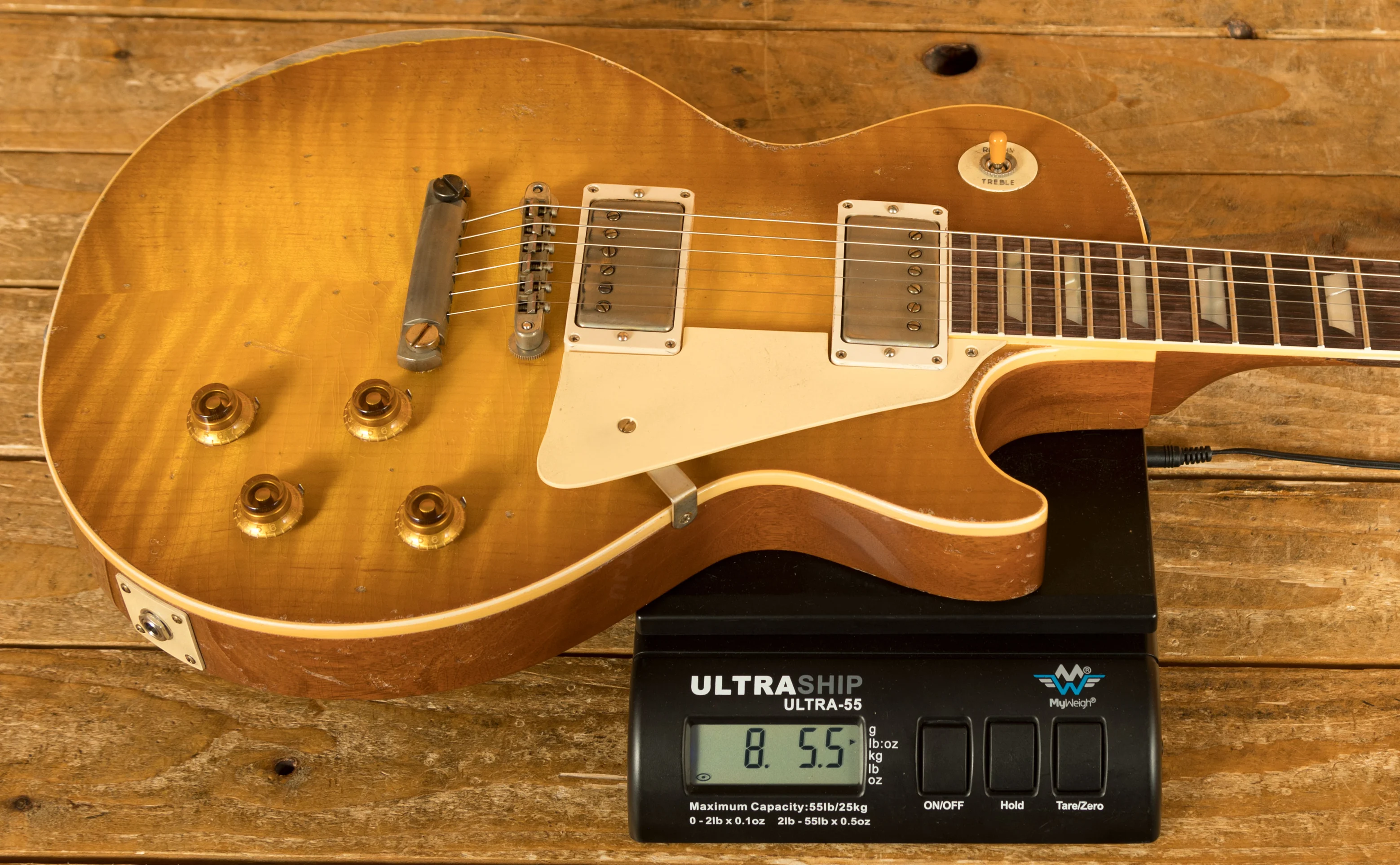 With a Mahogany body, this Les Paul benefits from a figured Maple top for the ultimate tonewood partnership.The figuring on this beauty is incredible. Rich and super resonant it offers premium tone and timeless aesthetics. The Lemon Burst Ultra Heavy Aged Nitro finish looks a million dollars and really allows the wood to breathe and the natural tone to sing through. The Murphy Lab do an incredible job of capturing the feel of a vintage instrument. With hide glue construction, this Les Paul offers true vintage tonality.
