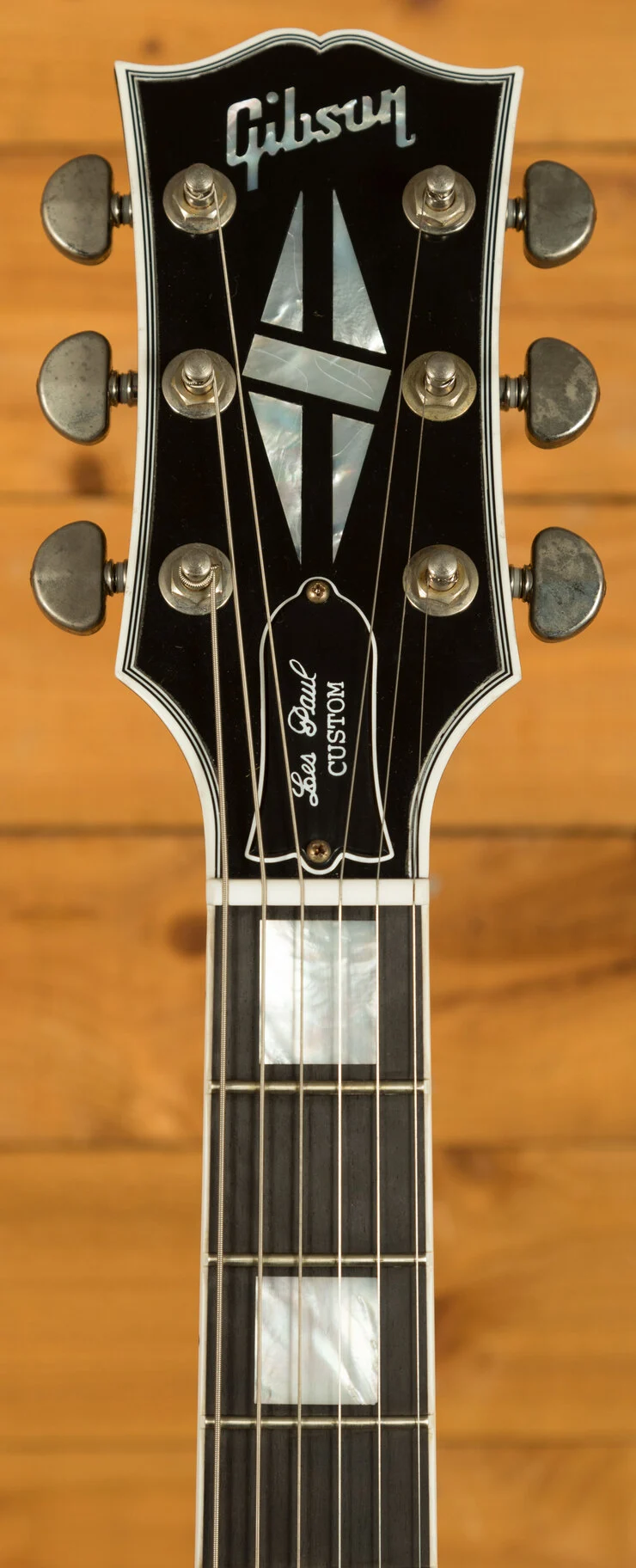 Visually, the Les Paul Custom is built to impress. Its bound ebony fingerboard with mother-of-pearl block inlays provides a refined and distinctive appearance, while the split diamond inlay on the enlarged headstock reinforces its premium status. The multi-ply binding, carefully applied layer by layer, highlights the precision and attention to detail found across the entire instrument. Every visual element has been designed to reflect the top tier of Gibson Custom Shop quality.