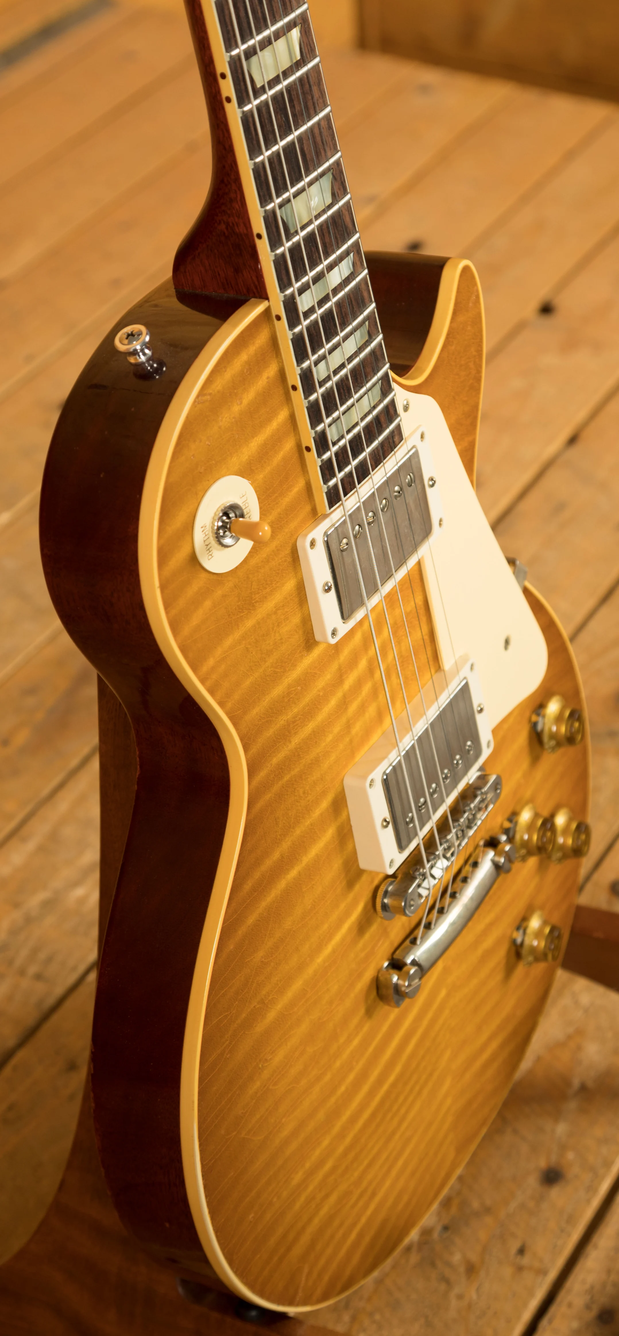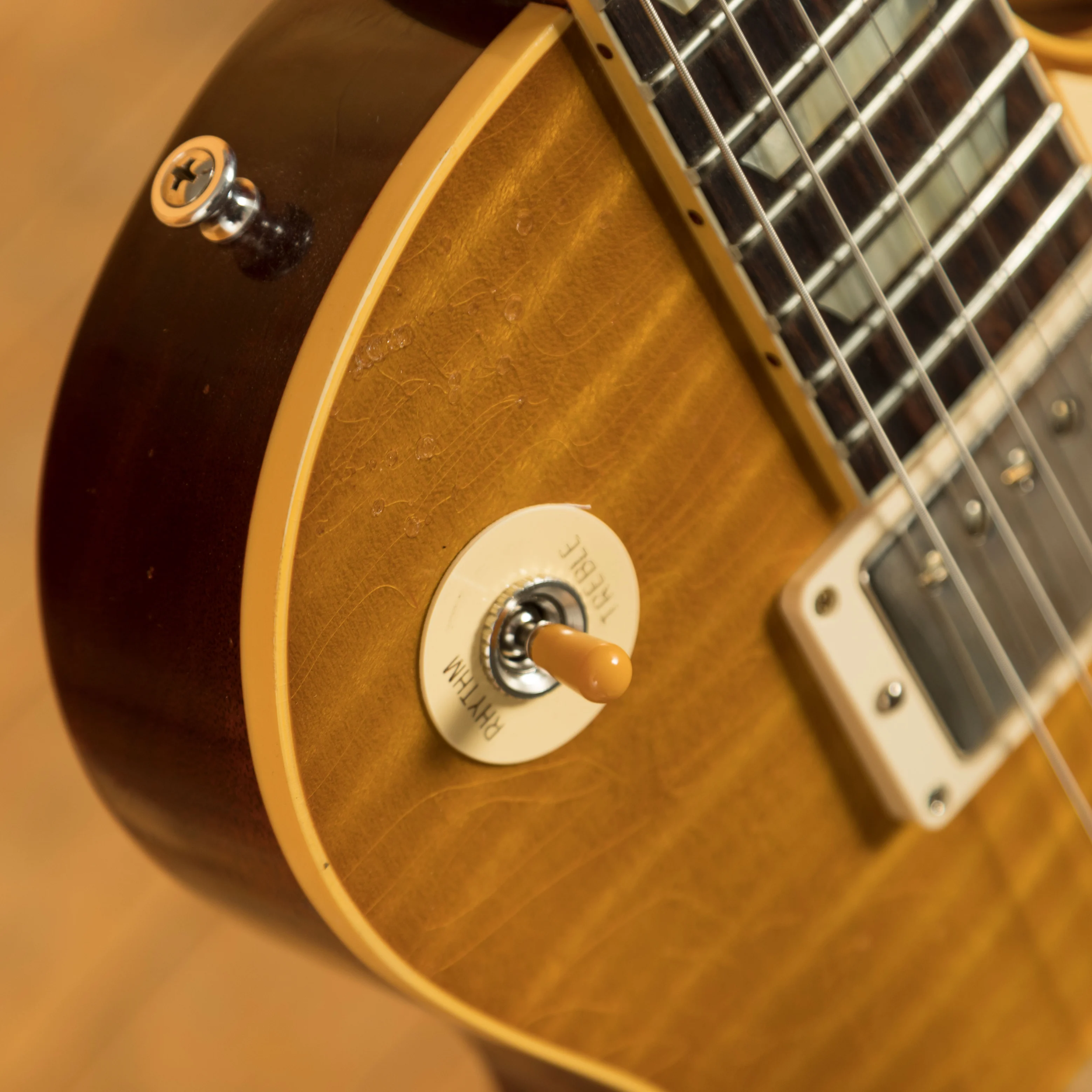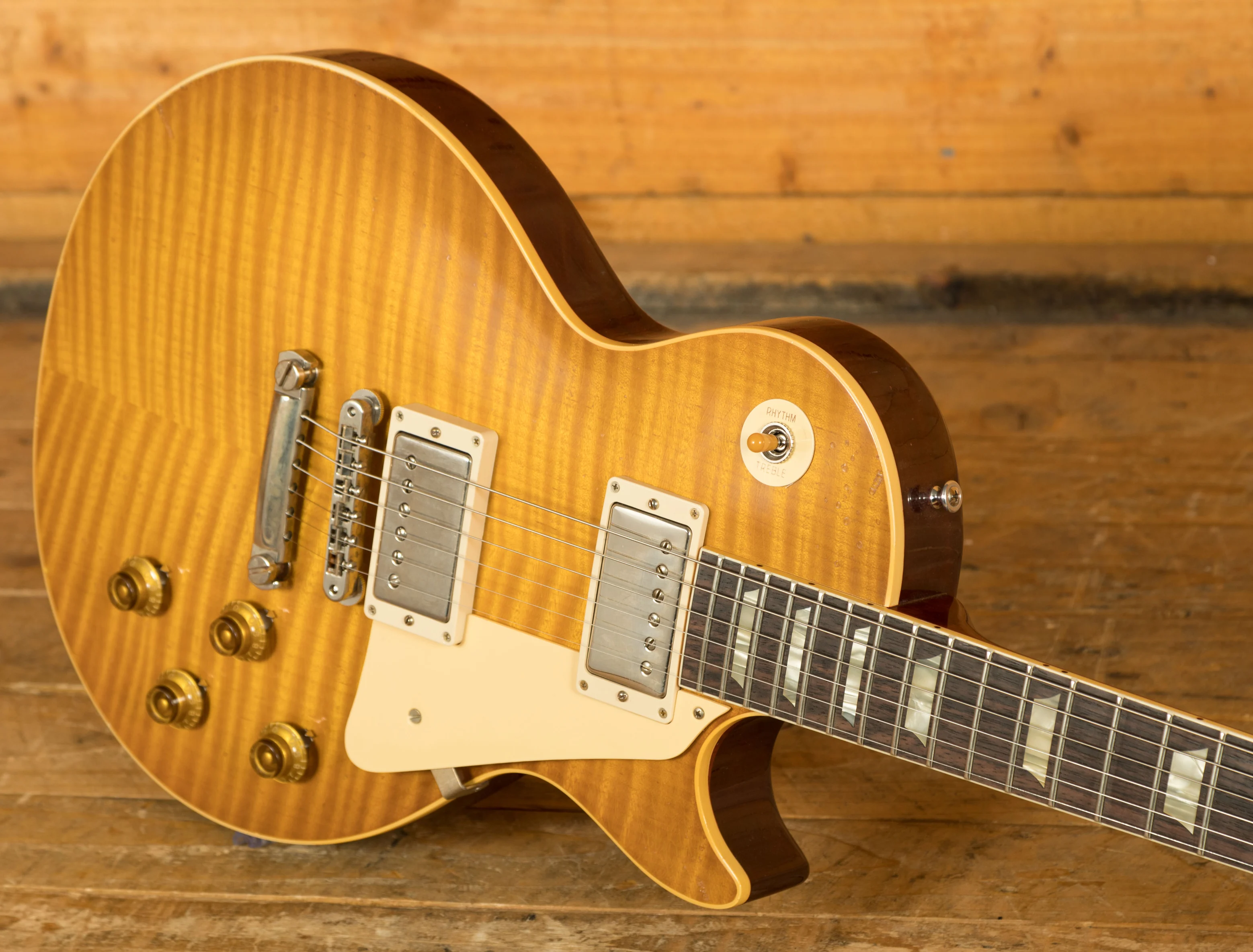 With a Mahogany body, this Les Paul benefits from a figured Maple top for the ultimate tonewood partnership. Rich and super resonant it offers premium tone and timeless aesthetics, while the Dirty Lemon Light Aged Nitro finish looks a million dollars and really allows the wood to breathe and the natural tone to sing through. The Murphy Lab do an incredible job of capturing the feel of a vintage instrument. With hide glue construction, this Les Paul offers true vintage tonality.
