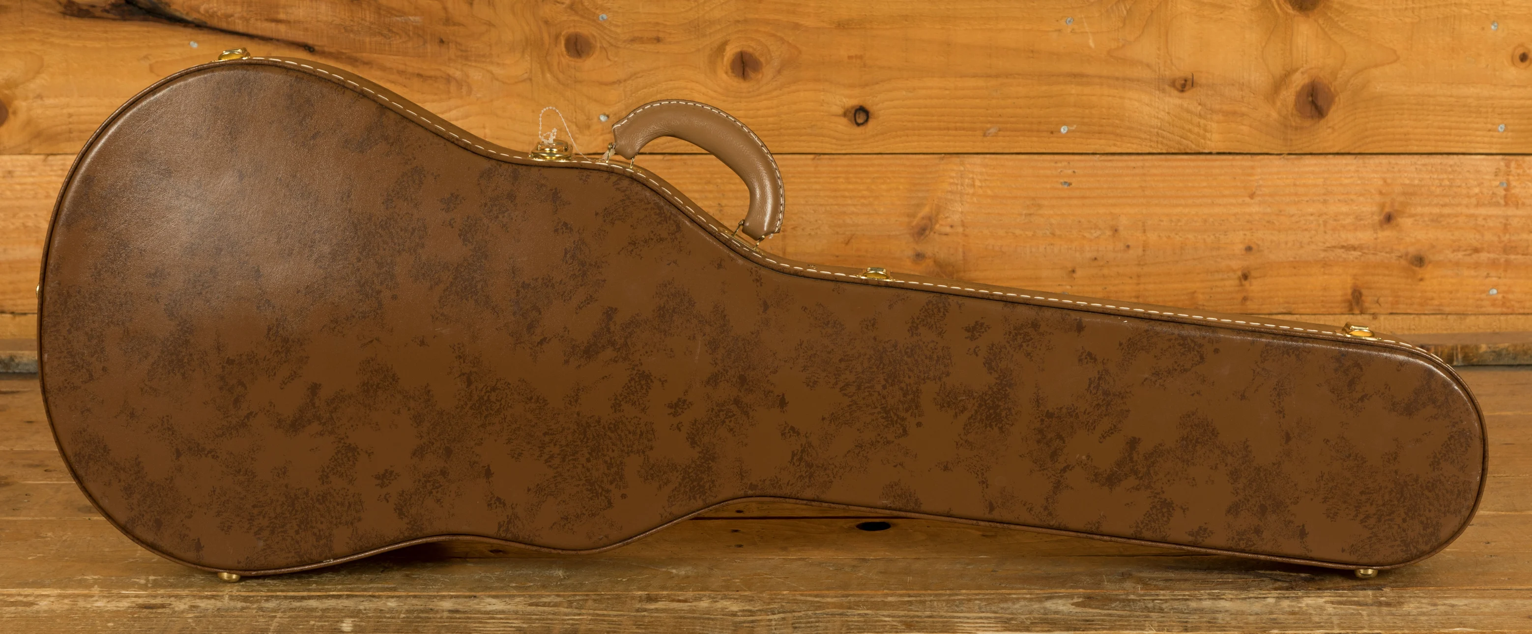 The body of the guitar is crafted from a full-weight mahogany back with a two-piece figured maple top, which not only enhances the guitar's aesthetic appeal but also contributes to its tone. The neck is hide-glue fitted to the body, which is an old-world method that ensures superior resonance and sustain. This neck is made from mahogany, topped with a beautifully smooth 24-3/4" scale Indian rosewood fingerboard. Vintage Kluson Single Line/Single Ring tuners round out the period-correct appointments.