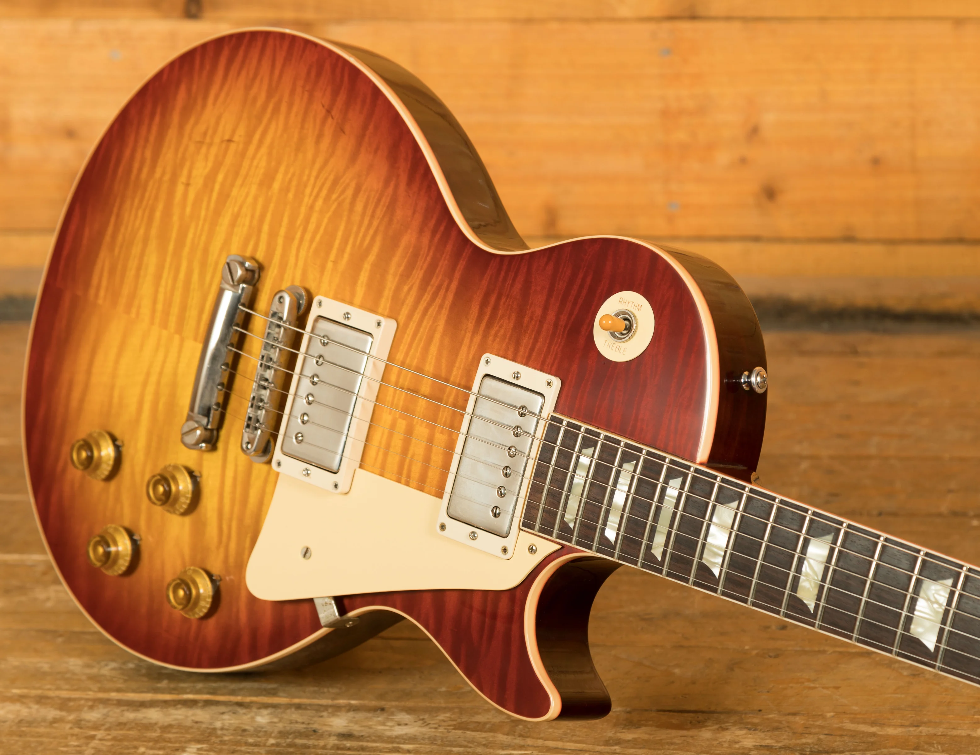 The Gibson Custom Shop spared no detail in recreating the magic of the original 1960 Les Paul. Every component of this guitar was designed to evoke the spirit of the era, from the amber top hat knobs to the trapezoid inlays, which are crafted with aged cellulose for that classic Les Paul look. Whether you are a collector or a serious player, the '1960 Les Paul Standard V1 VOS' offers a rich blend of history, craftsmanship, and timeless tone.