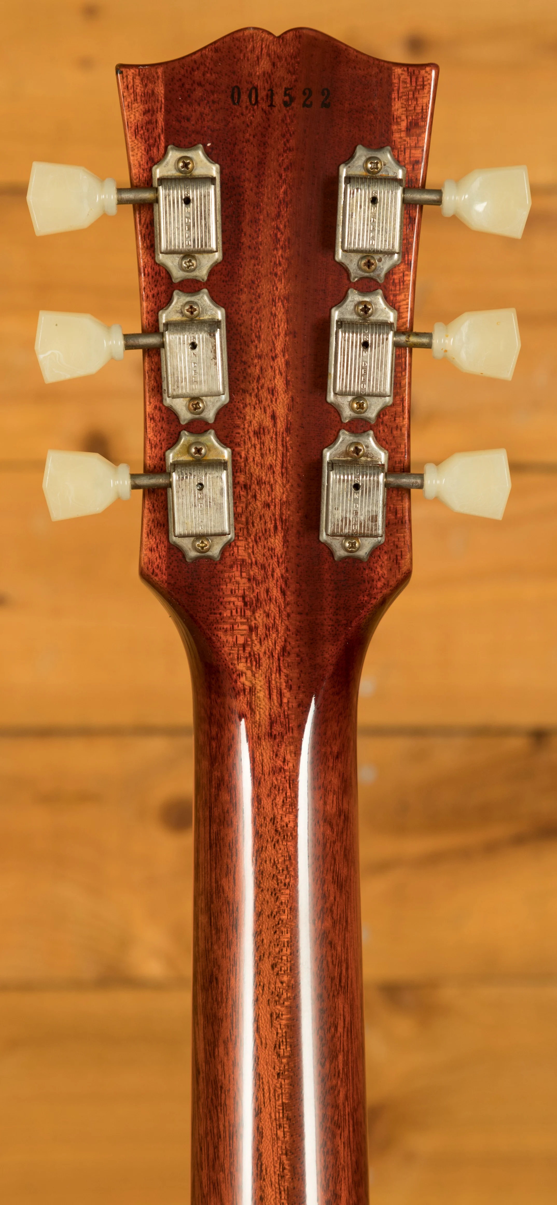 The '1960 Les Paul Standard V1' is an exacting reproduction of the first iteration of the 1960 Les Paul. Gibson released three versions of the Les Paul Standard in 1960, each with its own distinctive characteristics. The V1, produced in the first third of the year, is closest in specifications to the much-loved 1959 Les Paul Standard. This includes the neck profile, which is a comfortable, Medium "C" shape that many players find ideal. The guitar's neck fits easily in the hand, providing a classic Les Paul feel that balances vintage playability with modern performance.