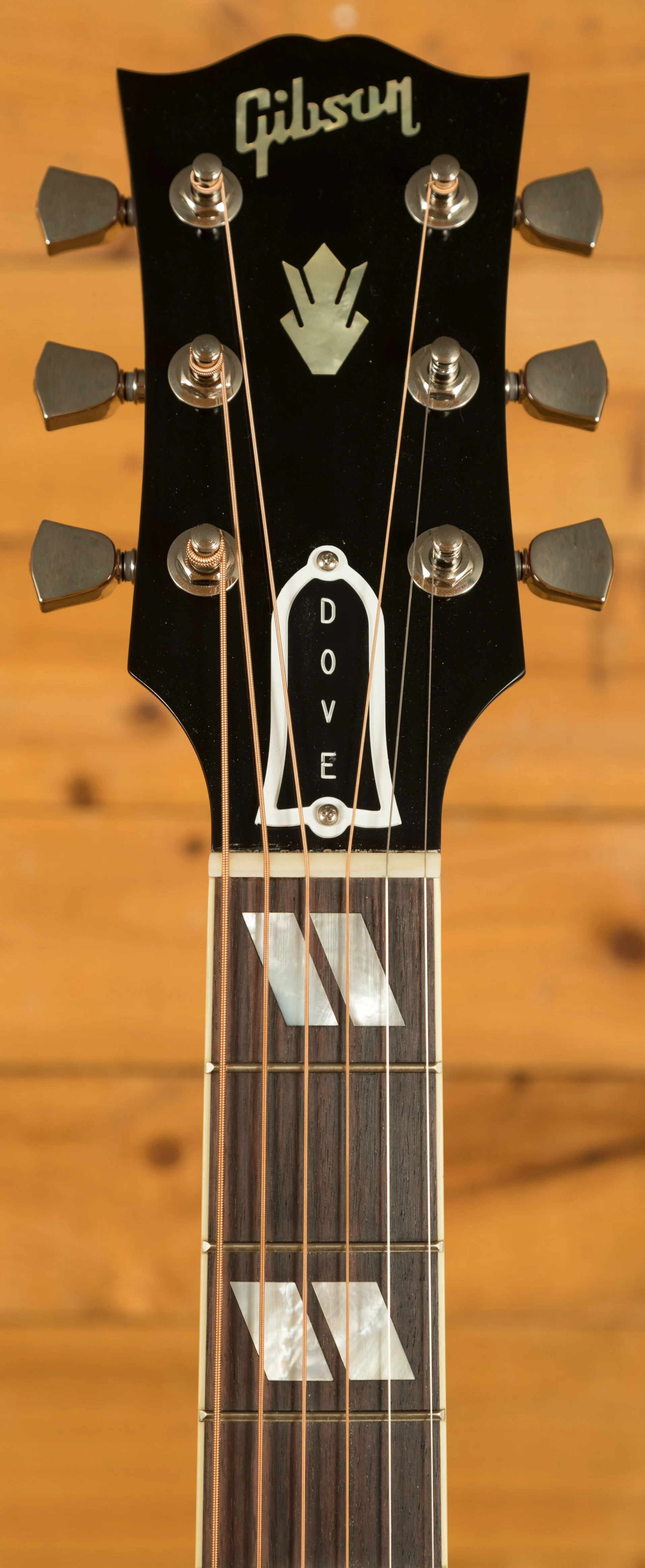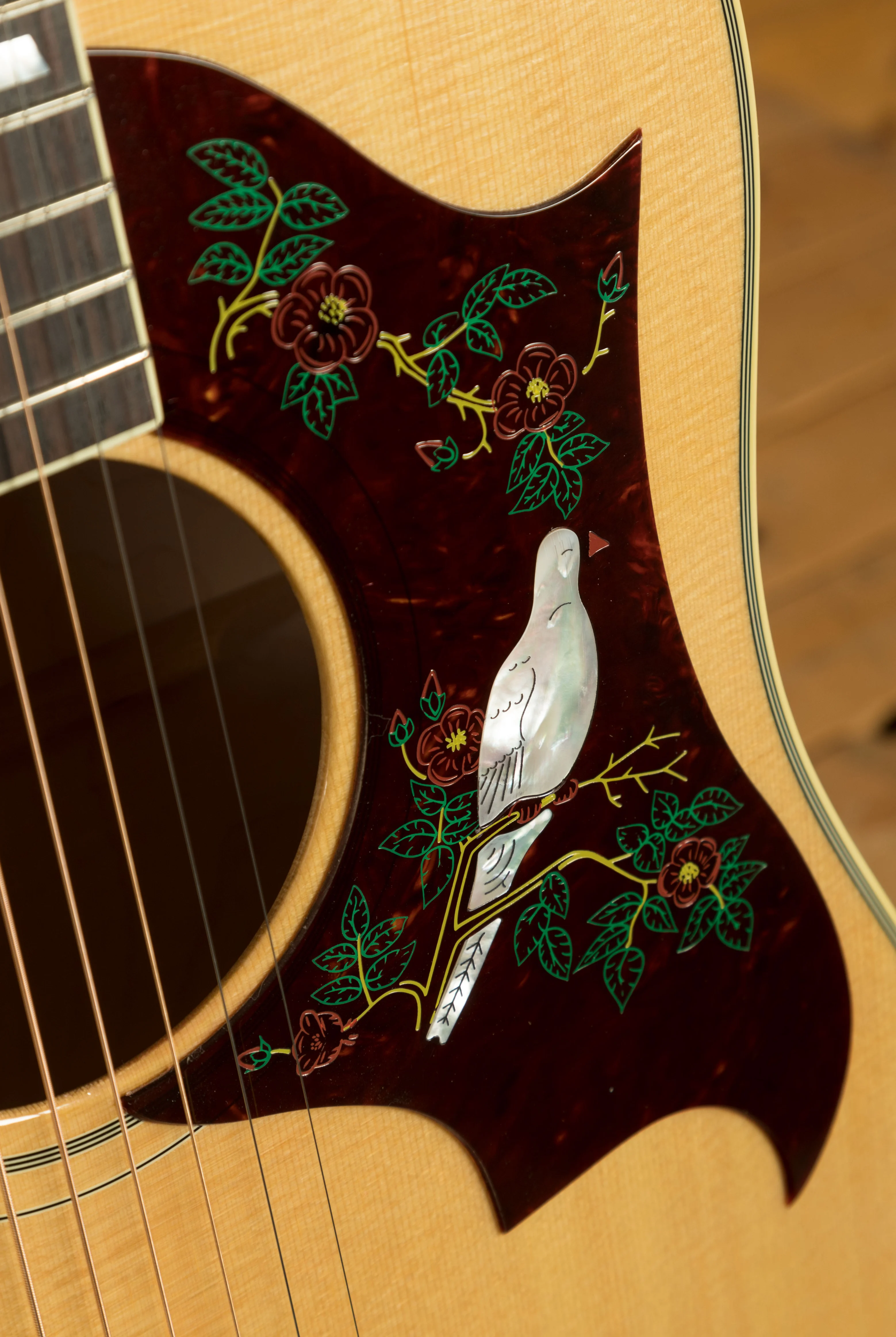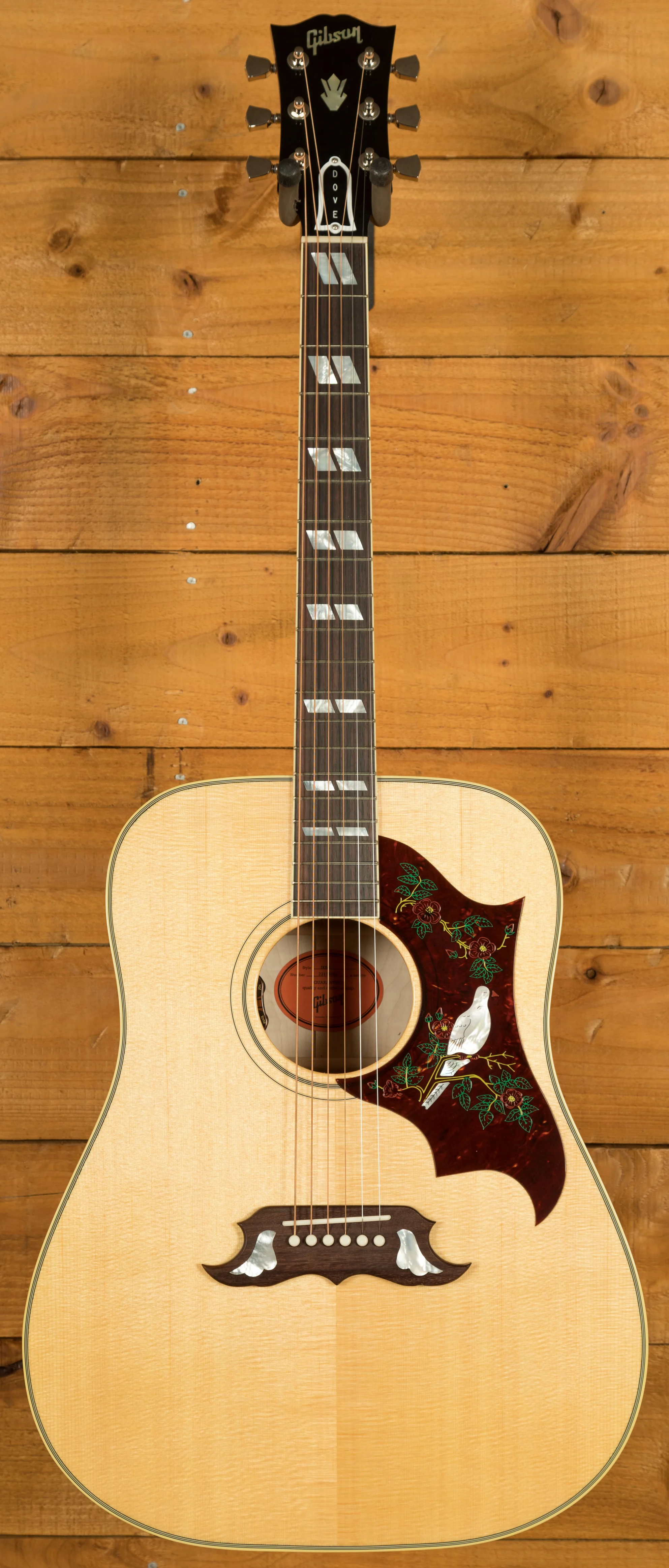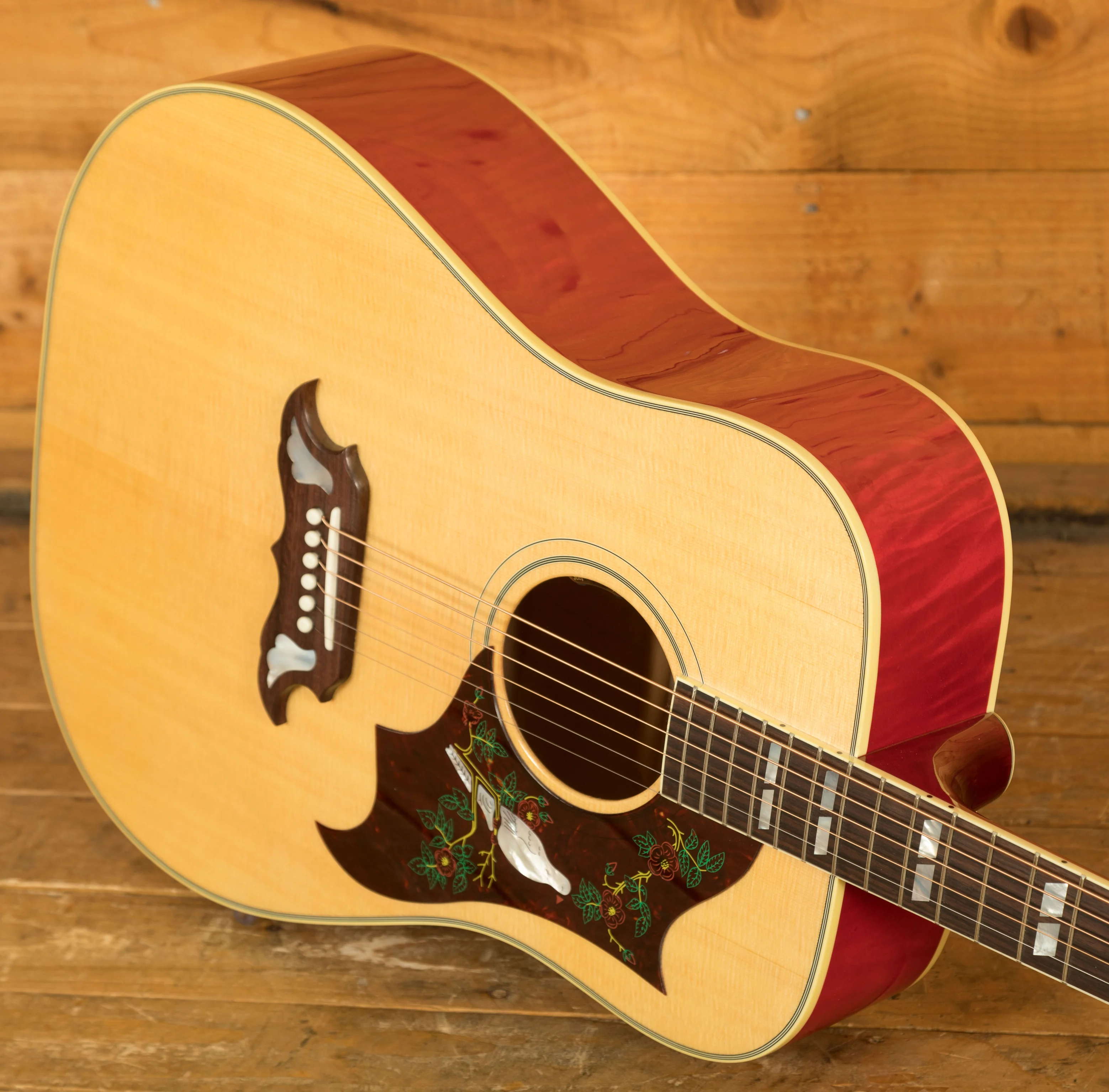 The Gibson Dove is probably one of the most iconic acoustic guitars ever produced, with its rich tone and versatile nature it's a real players favourite. The larger Dreadnought body is beautifully crafted from super resonant Flamed Maple and boasts a brilliant Sitka Spruce top. The Antique Natural finish offers a unique look and perfectly complements what is possibly the most unique pickguard around.
