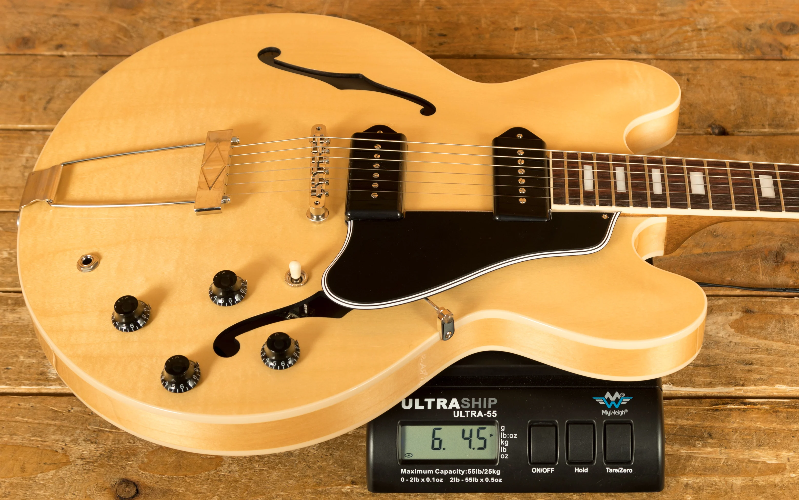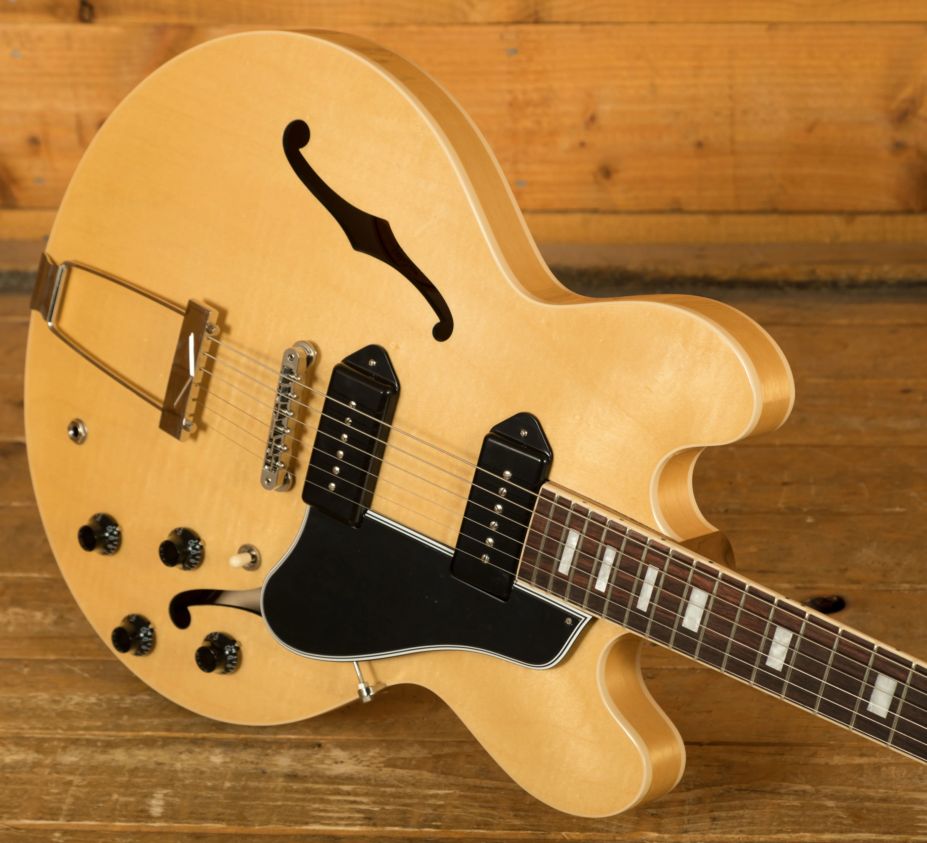 With a stunning 3 ply Maple/Poplar/Maple body, the Gibson ES-330 is super resonant and extremely warm sounding! Finished with a vintage inspired Antique Natural nitrocellulose finish, you get a sweet, organic sound. This thin lacquer will wear beautifully over time, just like the original models!