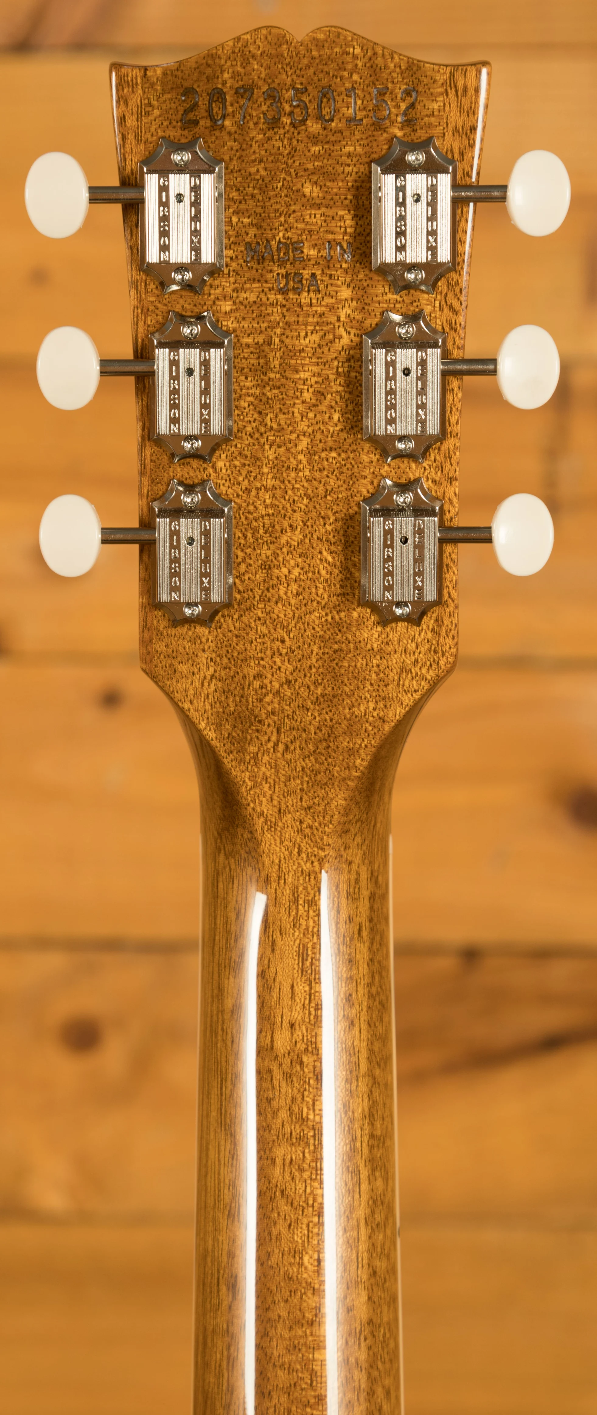 The Mahogany neck features a dark Indian Rosewood fingerboard, a 12" radius, a 43.053mm nut width, and of course, classic vintage Gibson pearloid block inlays. The Rounded C neck shape feels great underhand and allows for quick and easy movements right across the playing surface! You’re sure to instantly feel right at home!