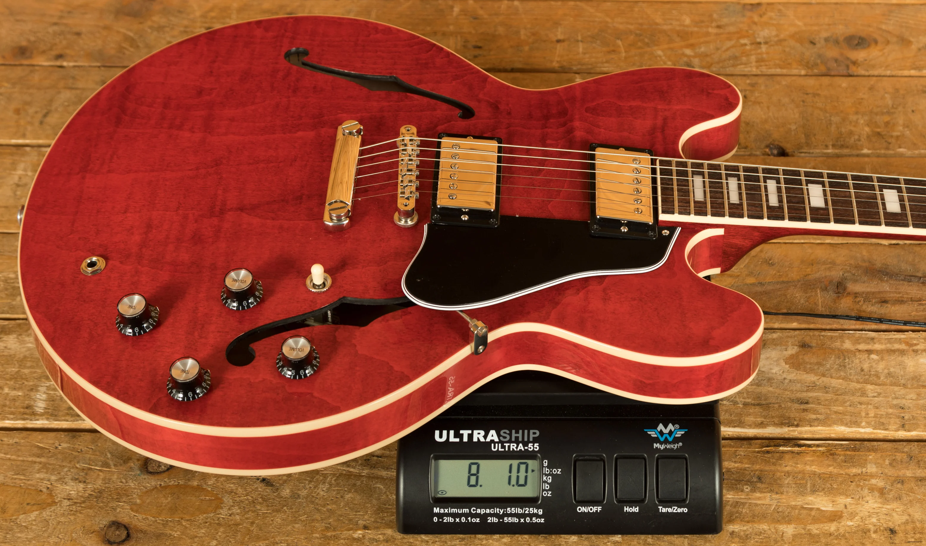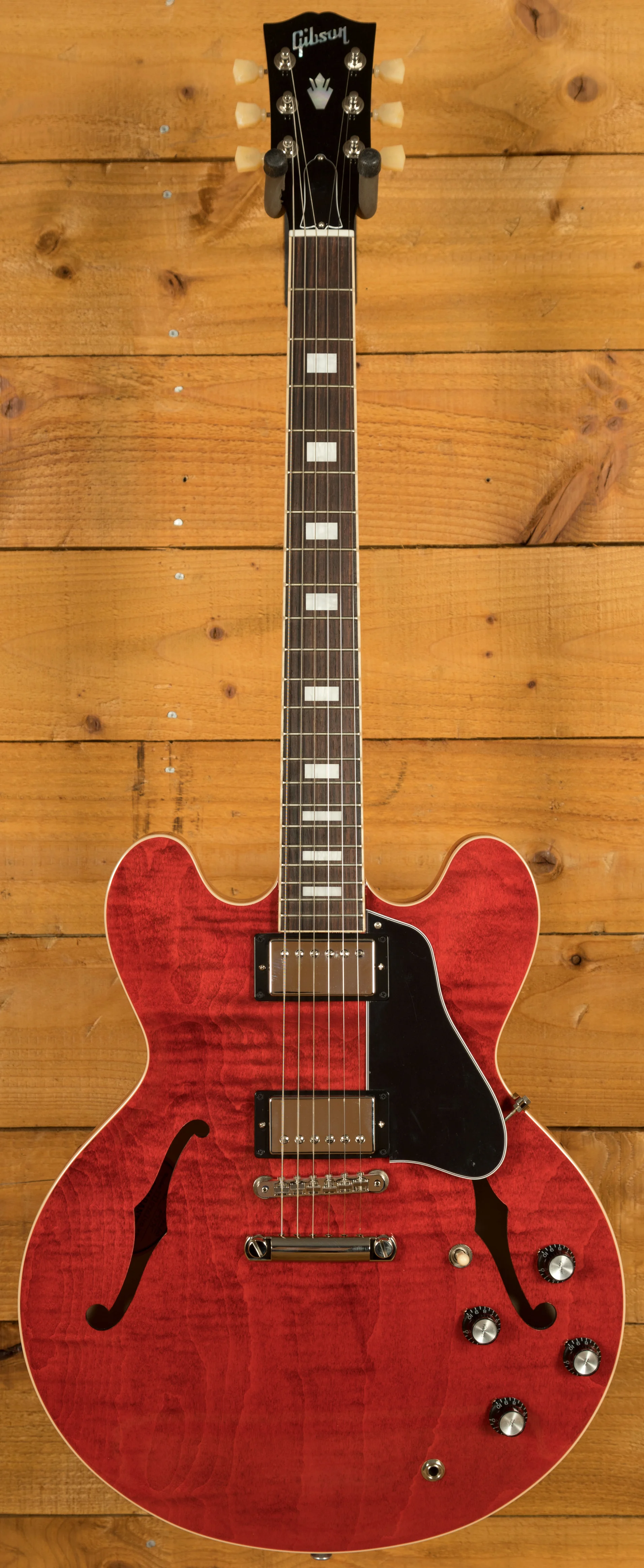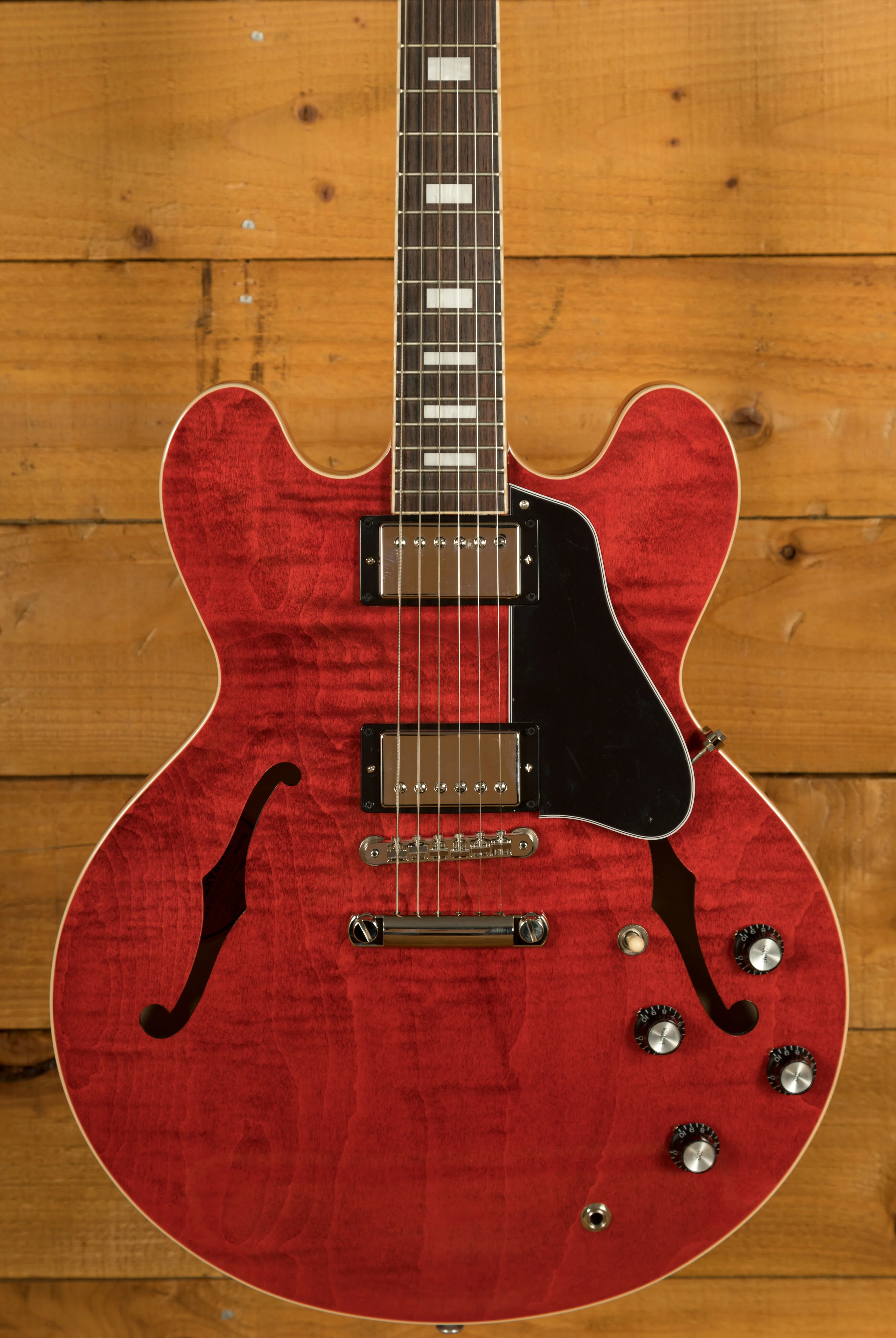 Featuring a 3-ply AAA Figured Maple/Poplar/Maple body, it's finished in a slick, old school vibe Sixties Cherry. Delivering a rich and authentic tone, this ES-335 is super resonant and beautifully balanced; it just oozes that vintage Gibson appeal. The figuring on this guitar is incredible and offers a great really unique look.