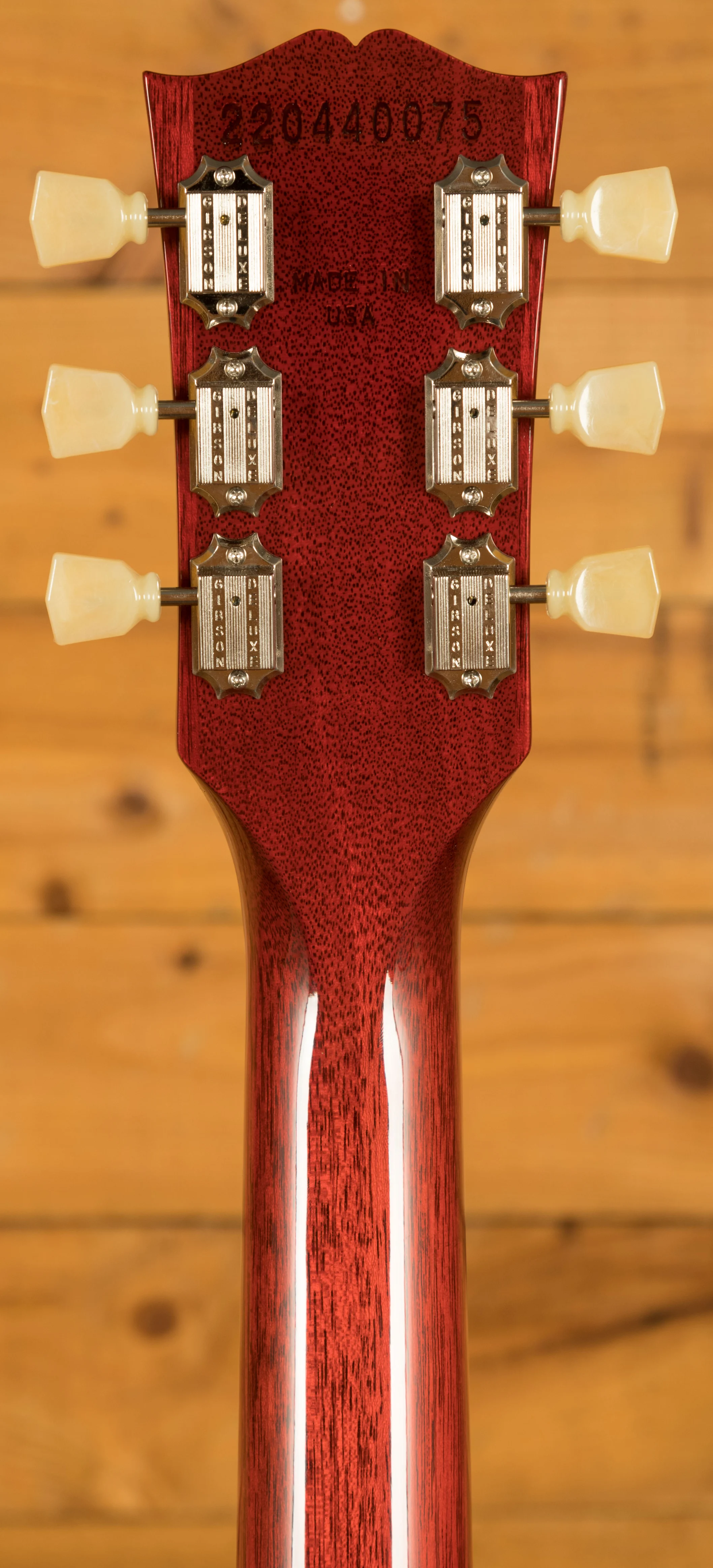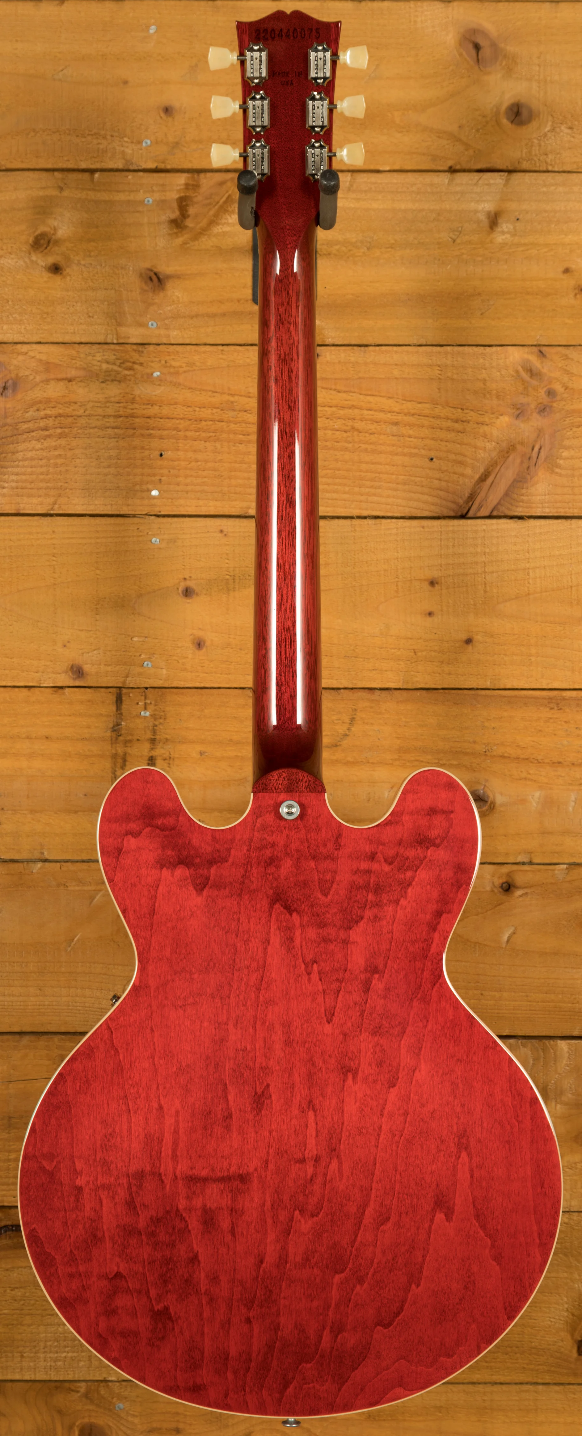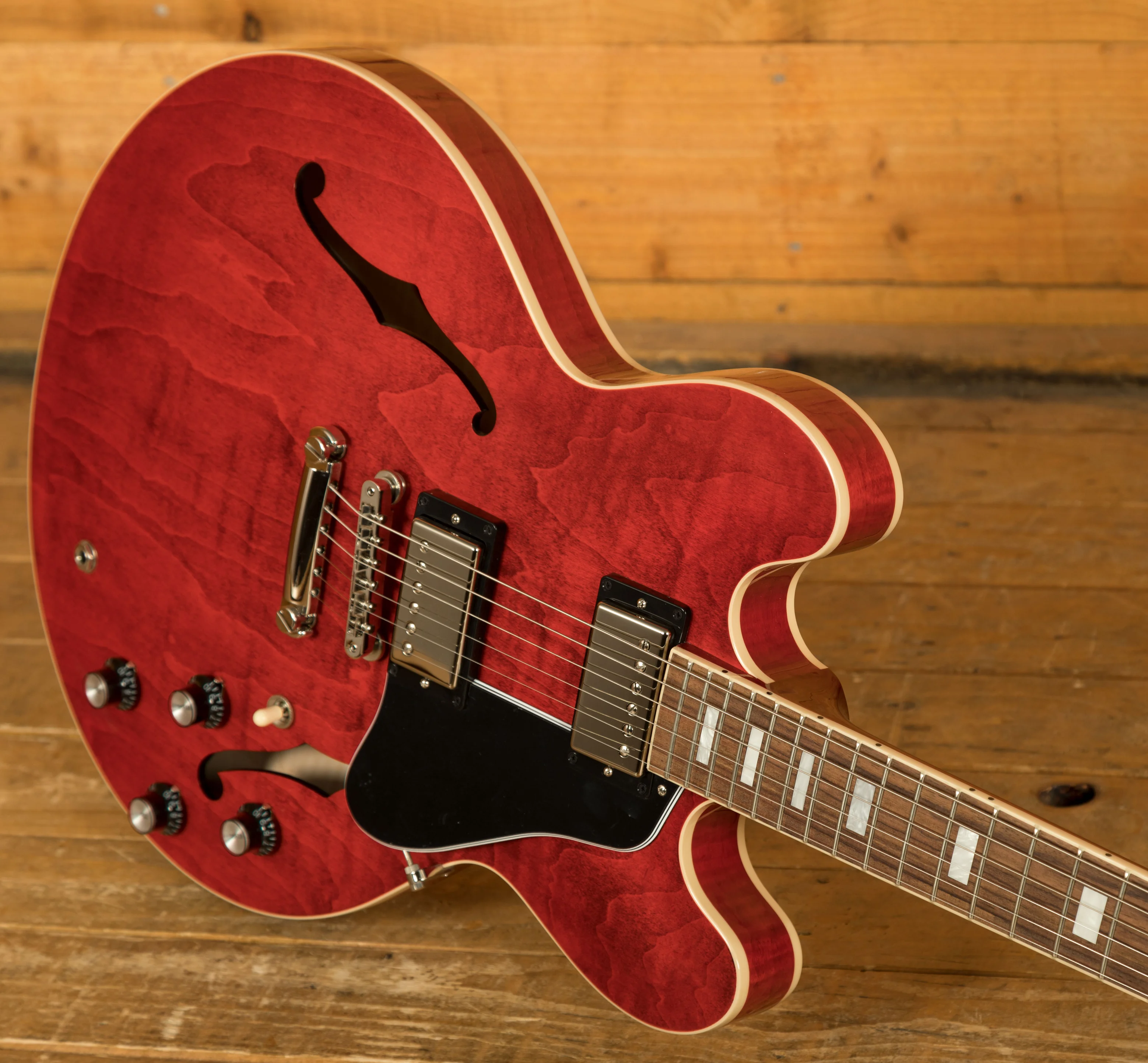 Featuring a 3-ply AAA Figured Maple/Poplar/Maple body, it's finished in a slick, old school vibe Sixties Cherry. Delivering a rich and authentic tone, this ES-335 is super resonant and beautifully balanced; it just oozes that vintage Gibson appeal. The figuring on this guitar is incredible and offers a great really unique look.