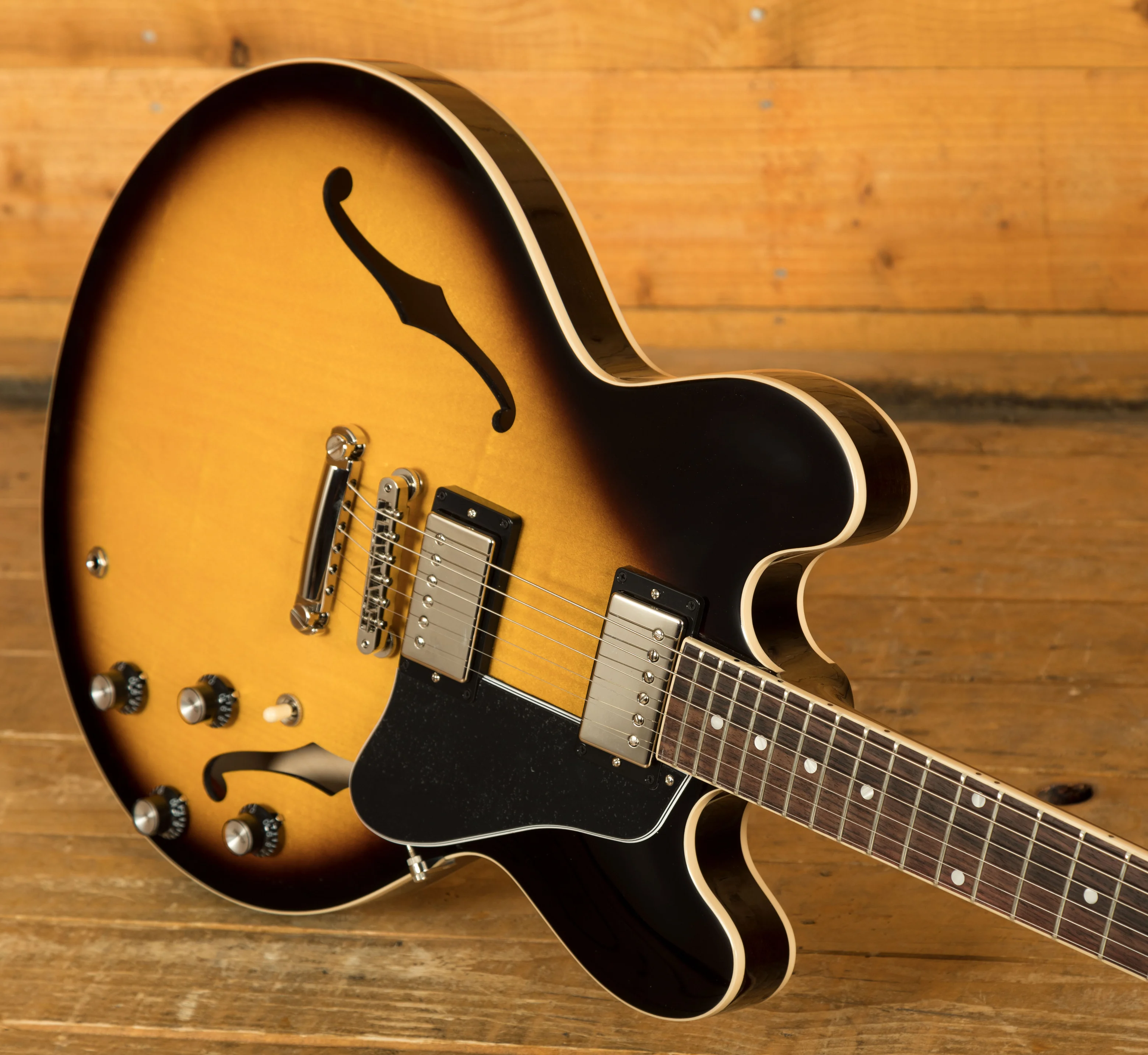 Featuring a 3-ply Maple/Poplar/Maple body, it's finished in a slick, old school Vintage Burst. Delivering a rich and authentic tone, this ES-335 is super resonant and beautifully balanced; it just oozes that vintage Gibson appeal. The gloss nitro finish is incredible and gives a vintage feel without any real wear.