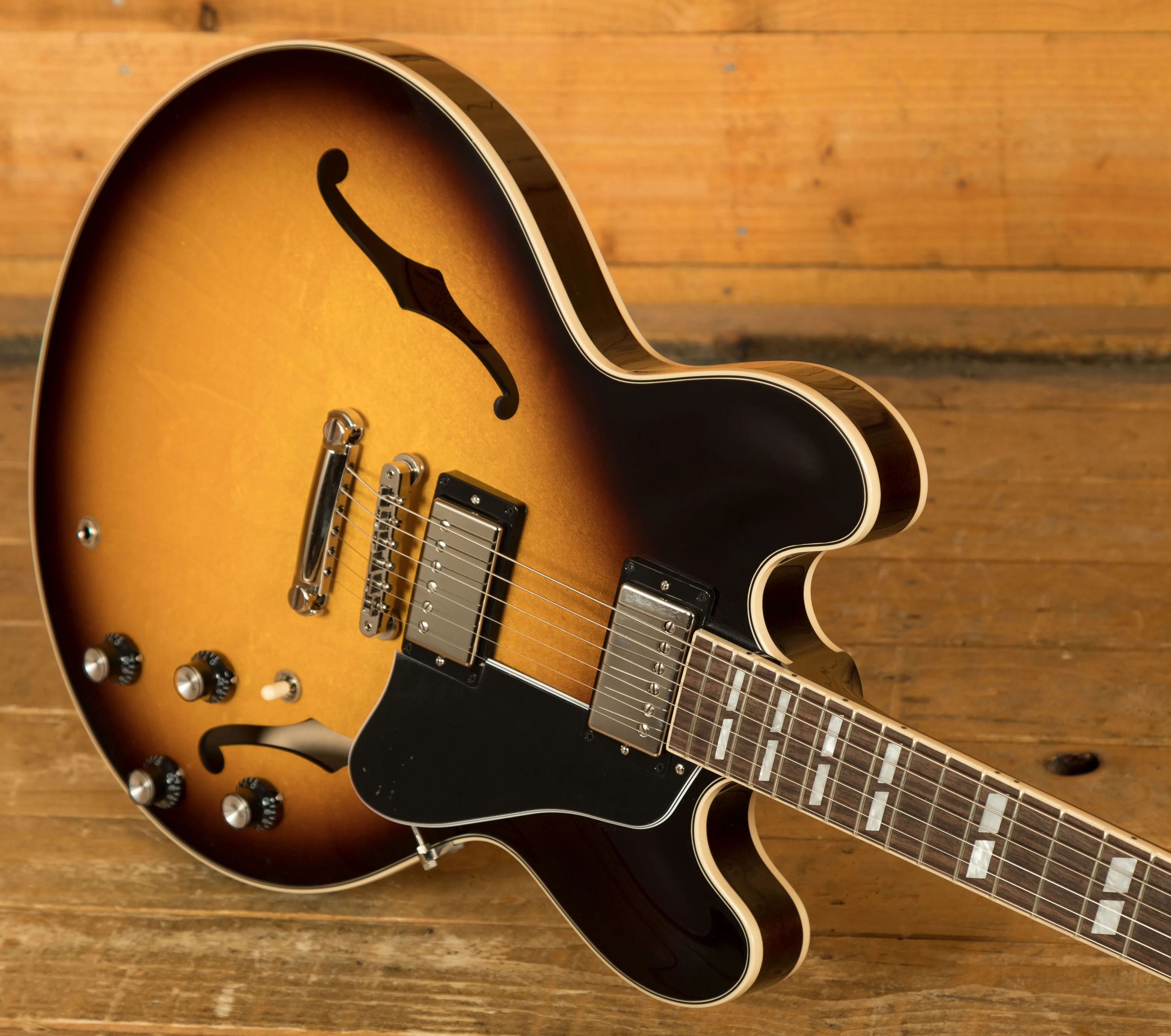 Featuring a 3-ply Maple/Poplar/Maple body, it's finished in a slick, old school Vintage Burst. Delivering a rich and authentic tone, this ES-345 is super resonant and beautifully balanced; it just oozes that vintage Gibson appeal. The gloss nitro finish is incredible and gives a vintage feel without any real wear.