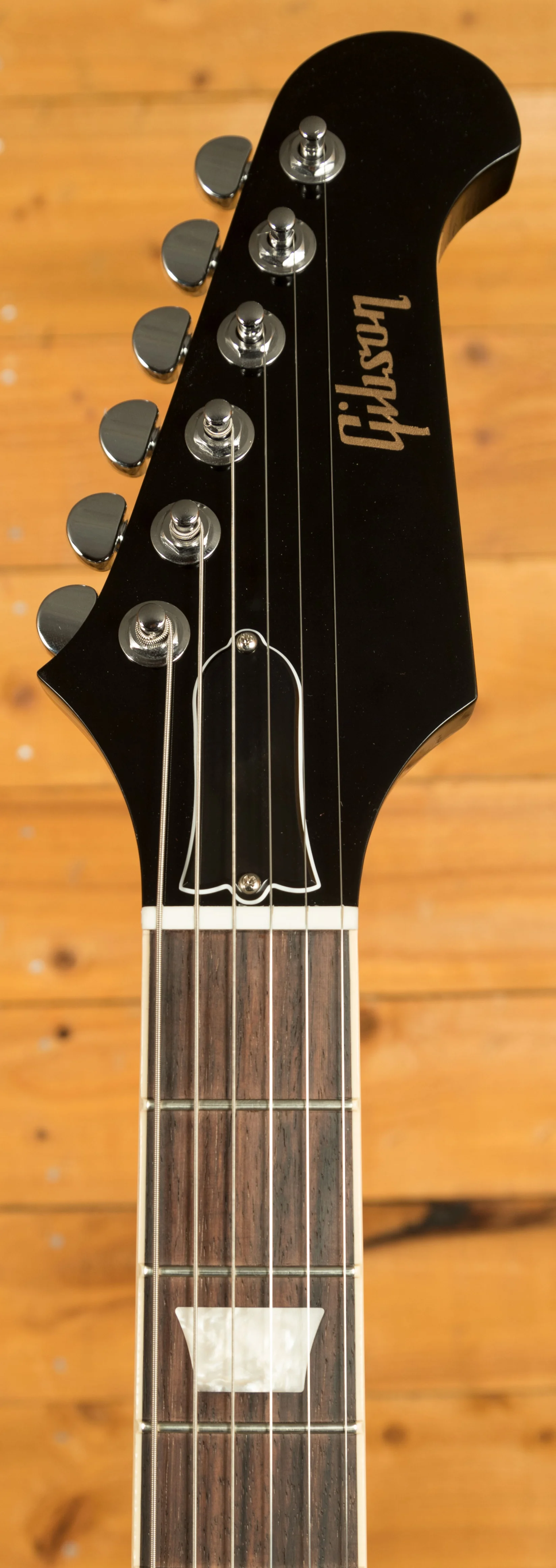 In the mid 1960s, the original Firebird design transitioned through several different iterations. One of the significant transitions that occurred flipped the headstock to the “Non-Reverse” shape. Unlike the original Reverse Firebird headstock design, which featured a two-layered headstock with a holly veneer, the new headstock was flat, like the bill of a platypus. Our friends at Gibson are thrilled to be re-issuing this lesser-known edition of the Firebird!