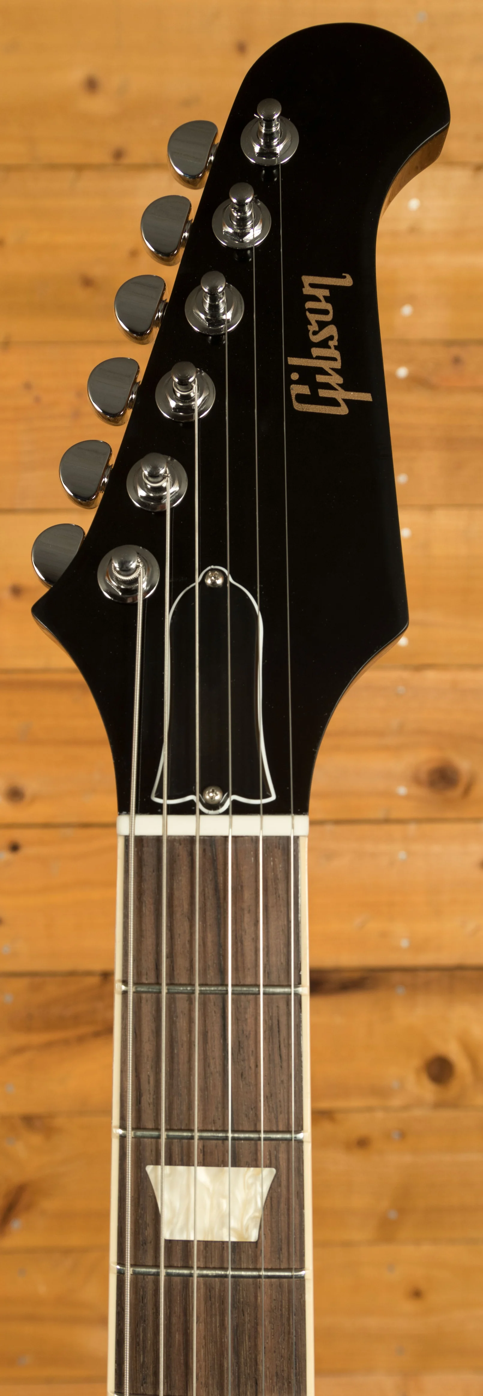 In the mid 1960s, the original Firebird design transitioned through several different iterations. One of the significant transitions that occurred flipped the headstock to the Non-Reverse shape. Unlike the original Reverse Firebird headstock design, which featured a two-layered headstock with a holly veneer, the new headstock was flat, like the bill of a platypus. Our friends at Gibson are thrilled to be re-issuing this lesser-known edition of the Firebird!