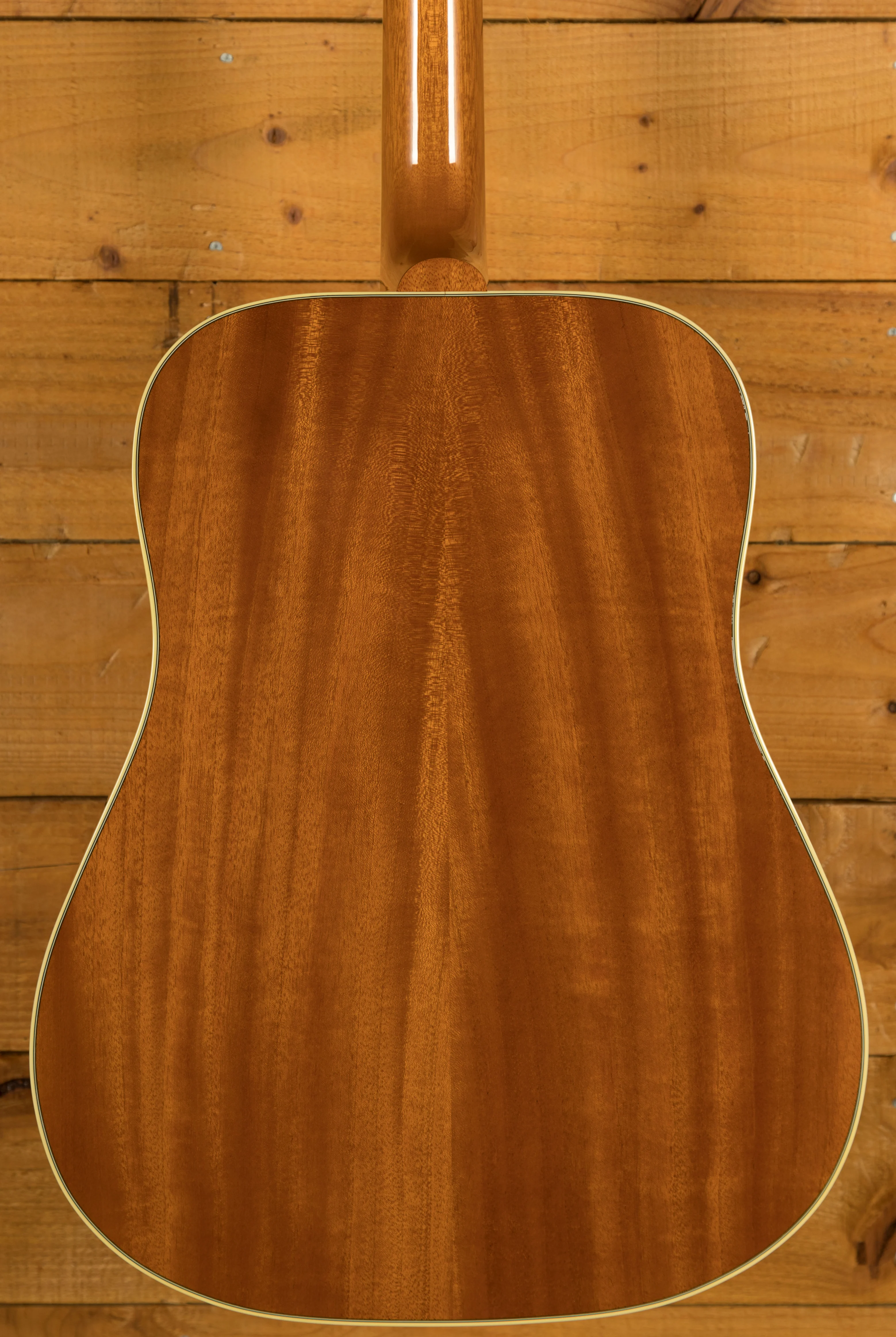 The larger Dreadnought body is beautifully crafted from super resonant Mahogany and boasts a Sitka Spruce top. The Heritage Cherry finish offers a unique look and perfectly complements what is possibly the most unique pickguard around.