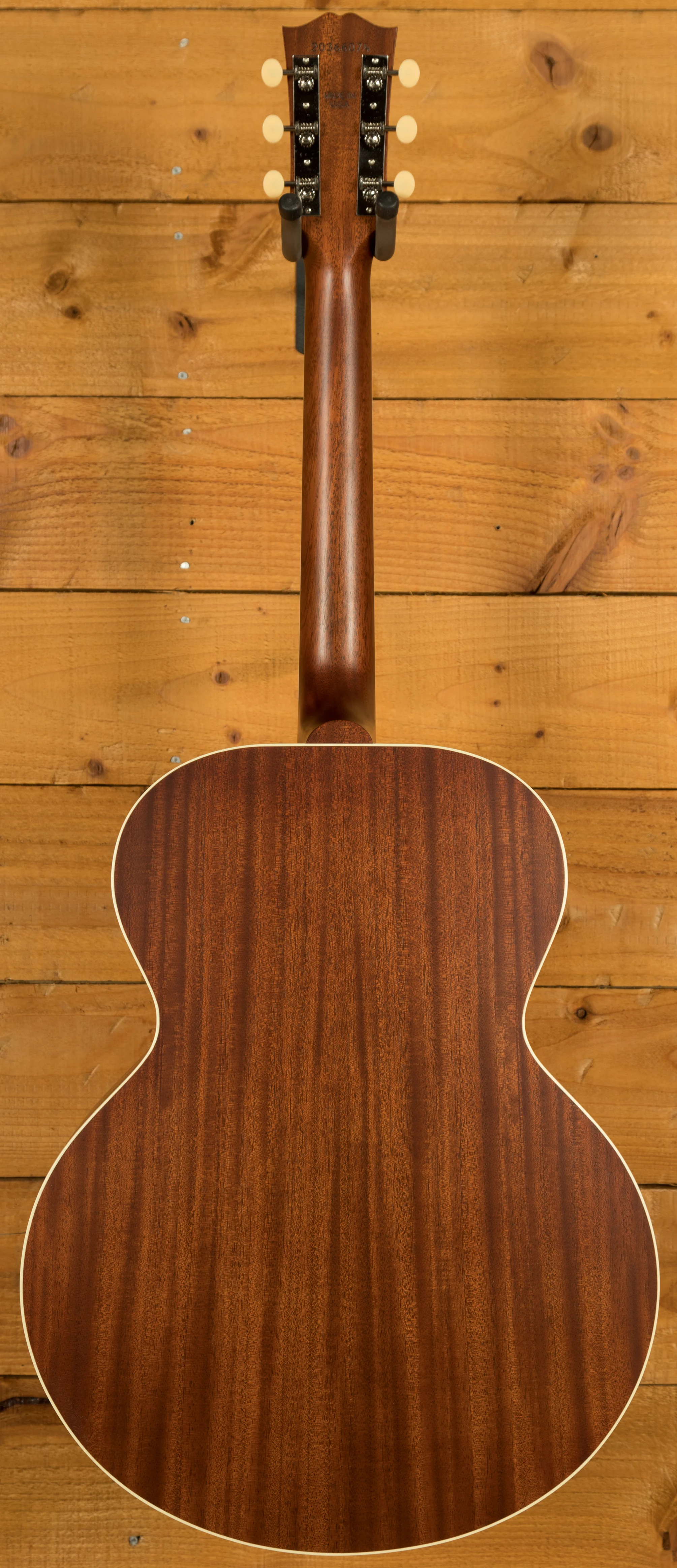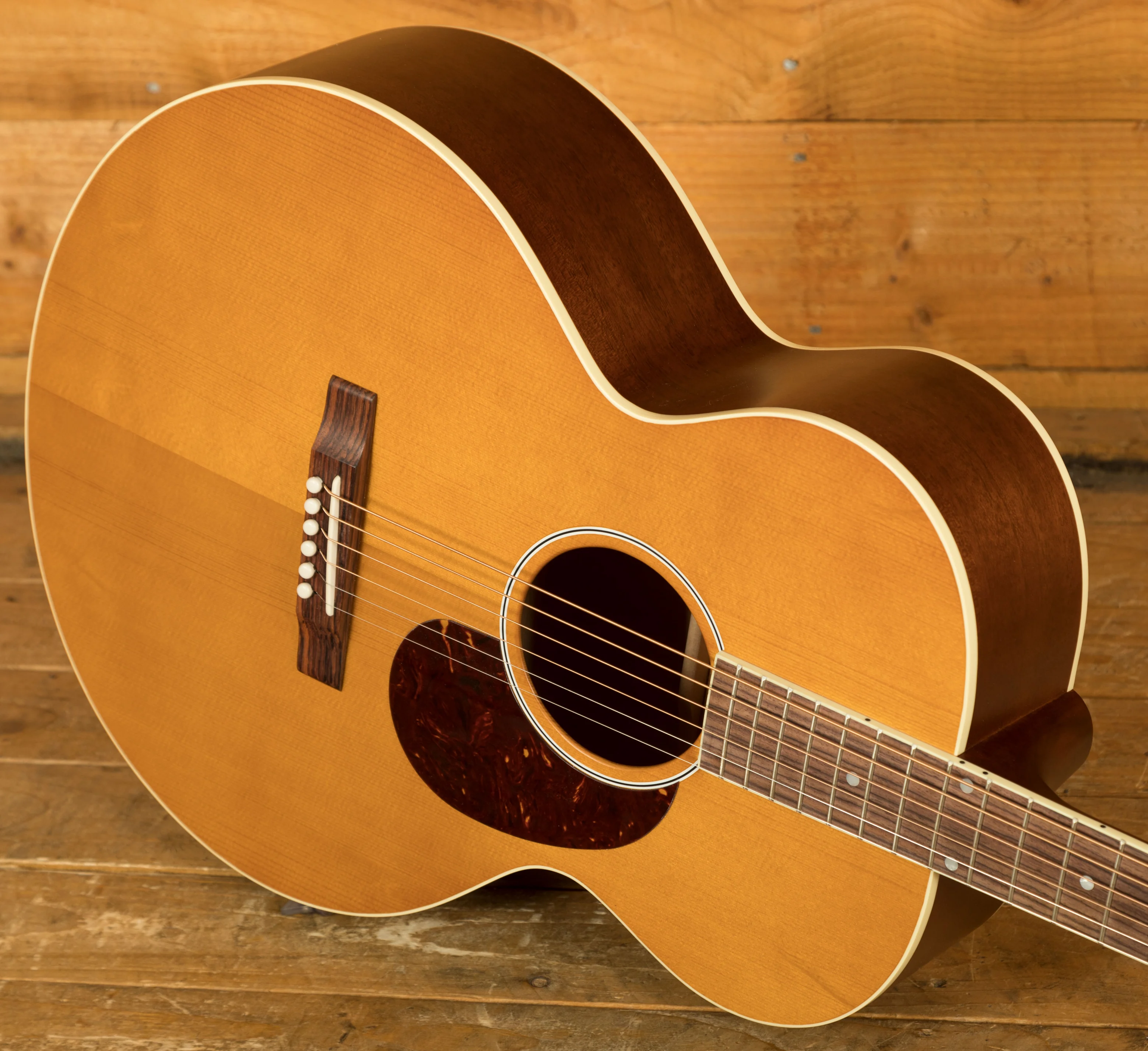 The J-185 Century 12-fret features a solid Sitka Spruce top, alongside Mahogany back & sides. This tone wood pairing has been used for decades and results in a balanced tone that’s super sweet and full. The satin nitrocellulose lacquer is incredibly thin, which allows the whole guitar to resonate much more effectively when compared to other finish types.