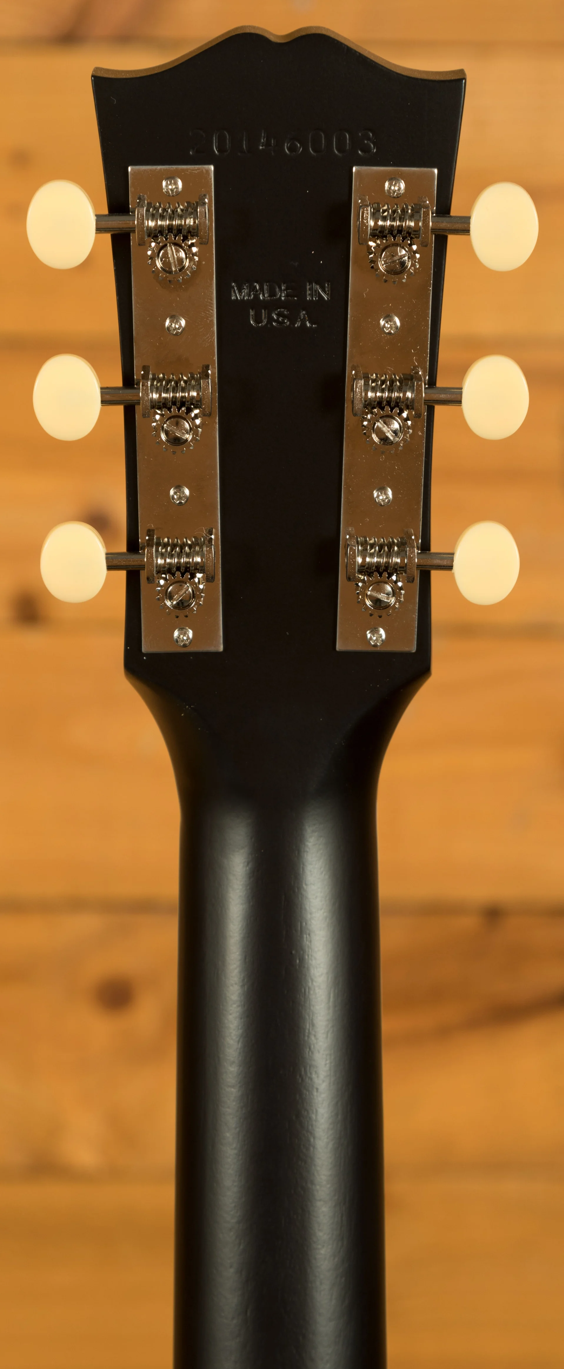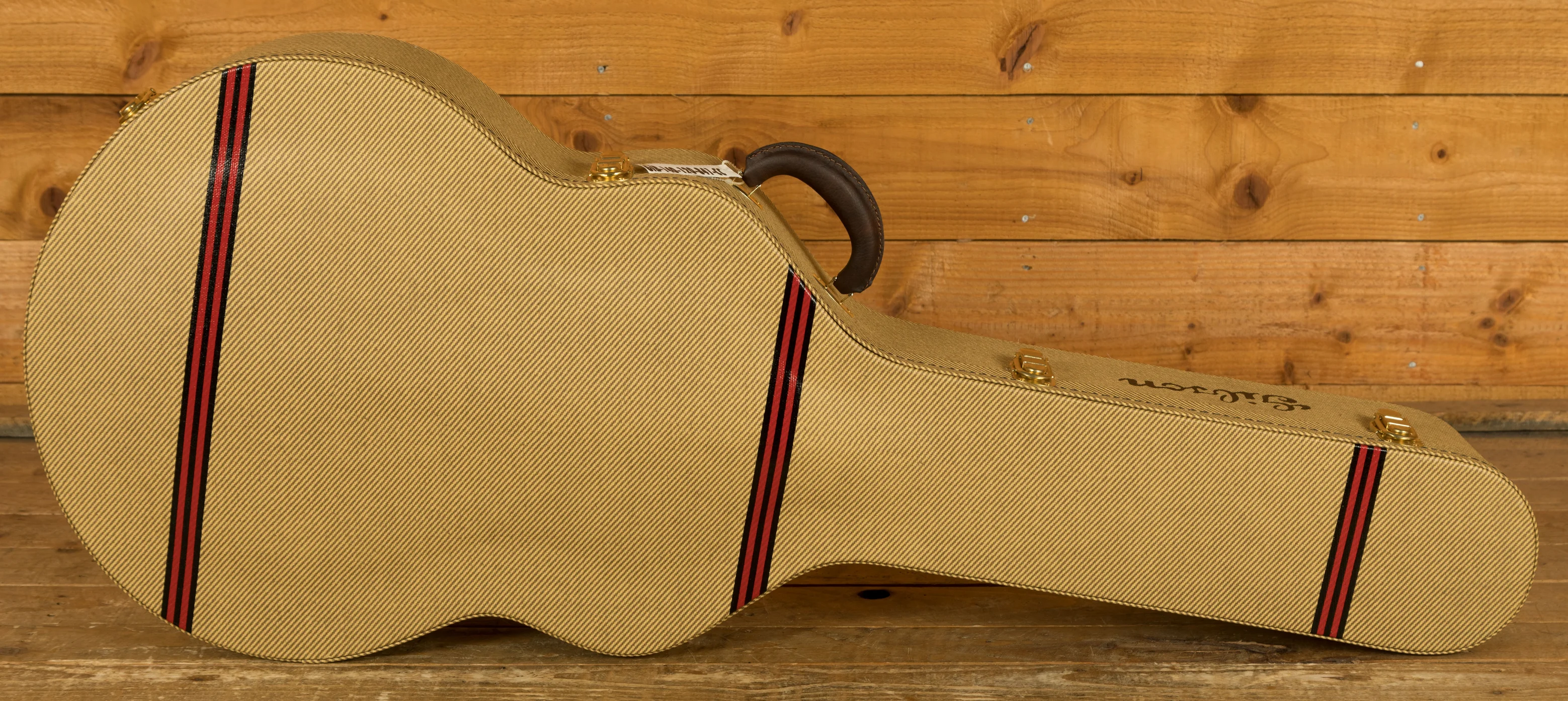 Across this model you’ve got a bunch of vintage inspired appointments that really make this guitar standout. The headstock features open-back Golden Age strap tuners, alongside an early 1900s-style Gibson script logo. The body also features a sloped-rectangle closed-slot bridge crafted from Rosewood.