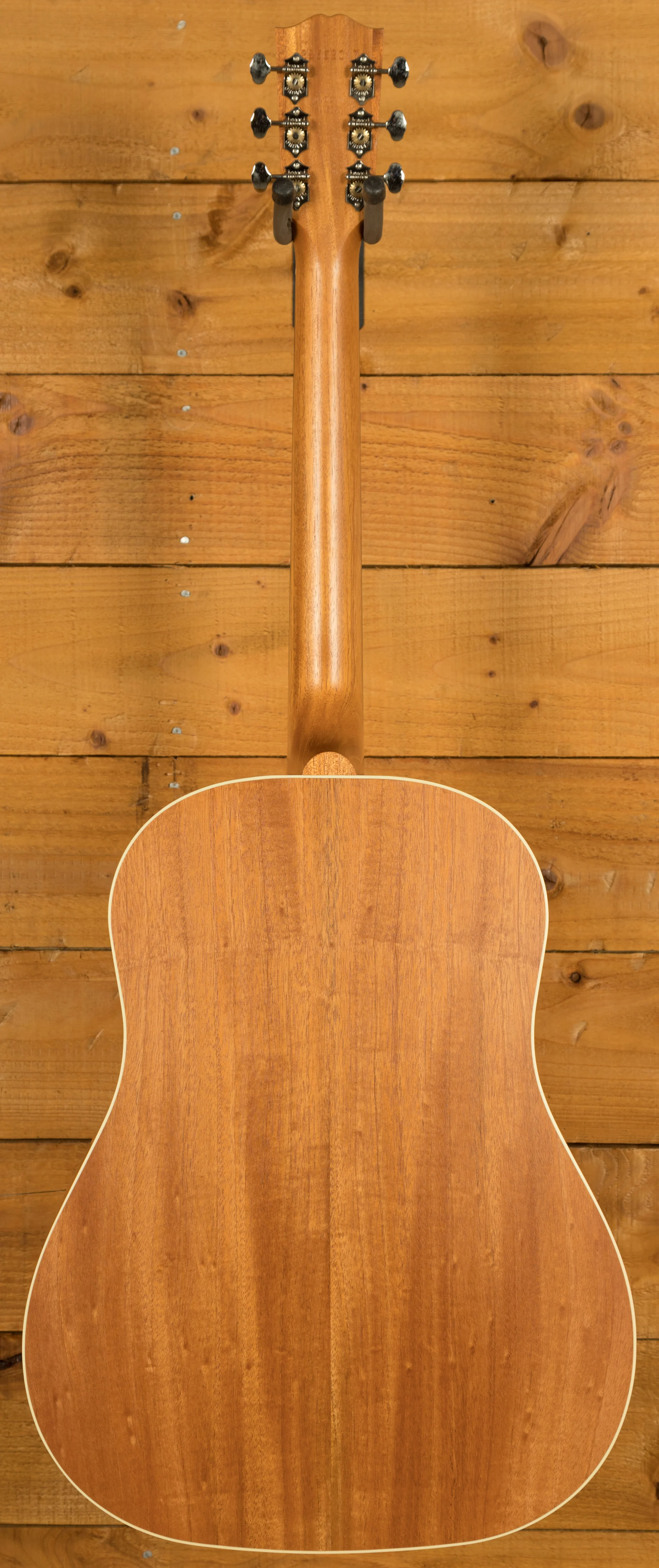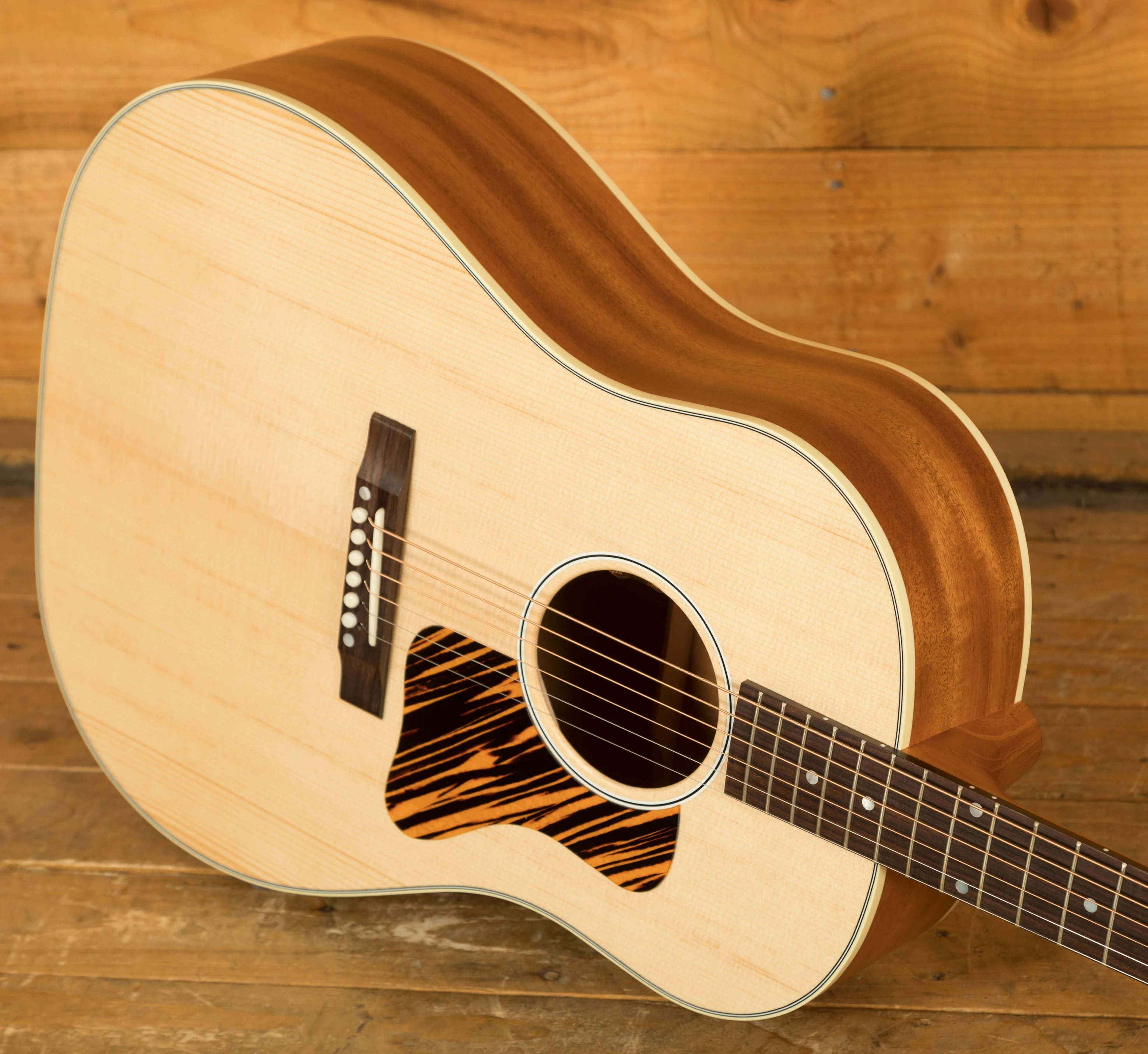 The Gibson 30's J-35 Faded features a Mahogany body and Sitka Spruce top for not only a tonally rich but visually stunning guitar. The faded satin Nitro lacquer really adds to the guitars vintage vibe. With an organic and beautifully balanced tone, Mahogany offers a unique warm and well-rounded sound with great harmonic overtones. It's a real beauty, with a real vintage inspired vibe.