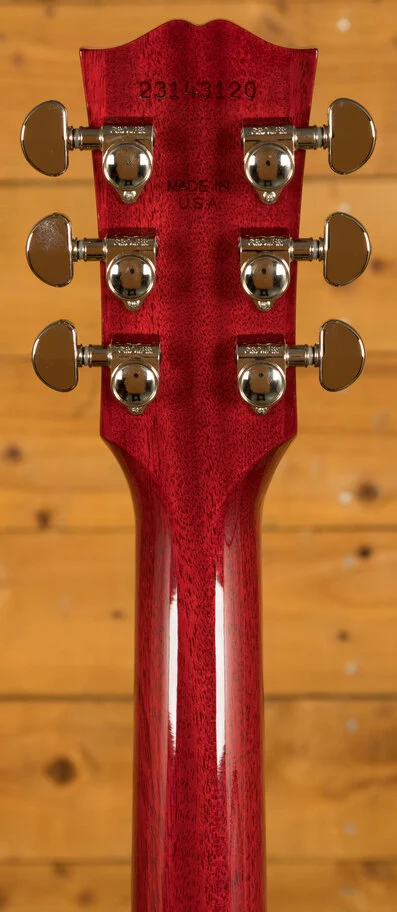 The J-45 Standard Cherry is built with a compound dovetail neck-to-body joint, secured with hot hide glue. This traditional method of construction is known for its contribution to the instrument's resonance and stability. The guitar is finished with a gloss nitrocellulose lacquer, which protects the wood while allowing it to breathe and age gracefully.