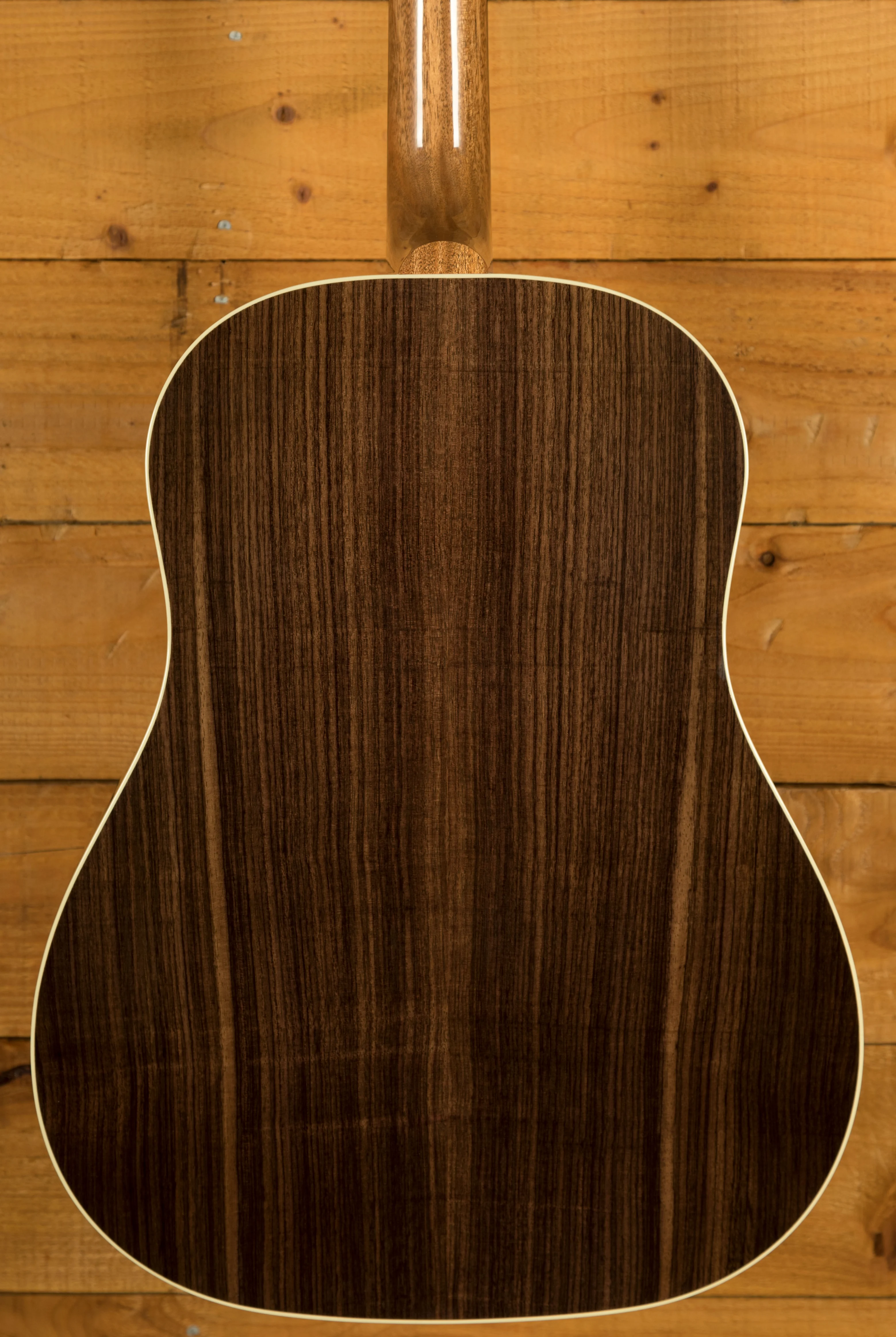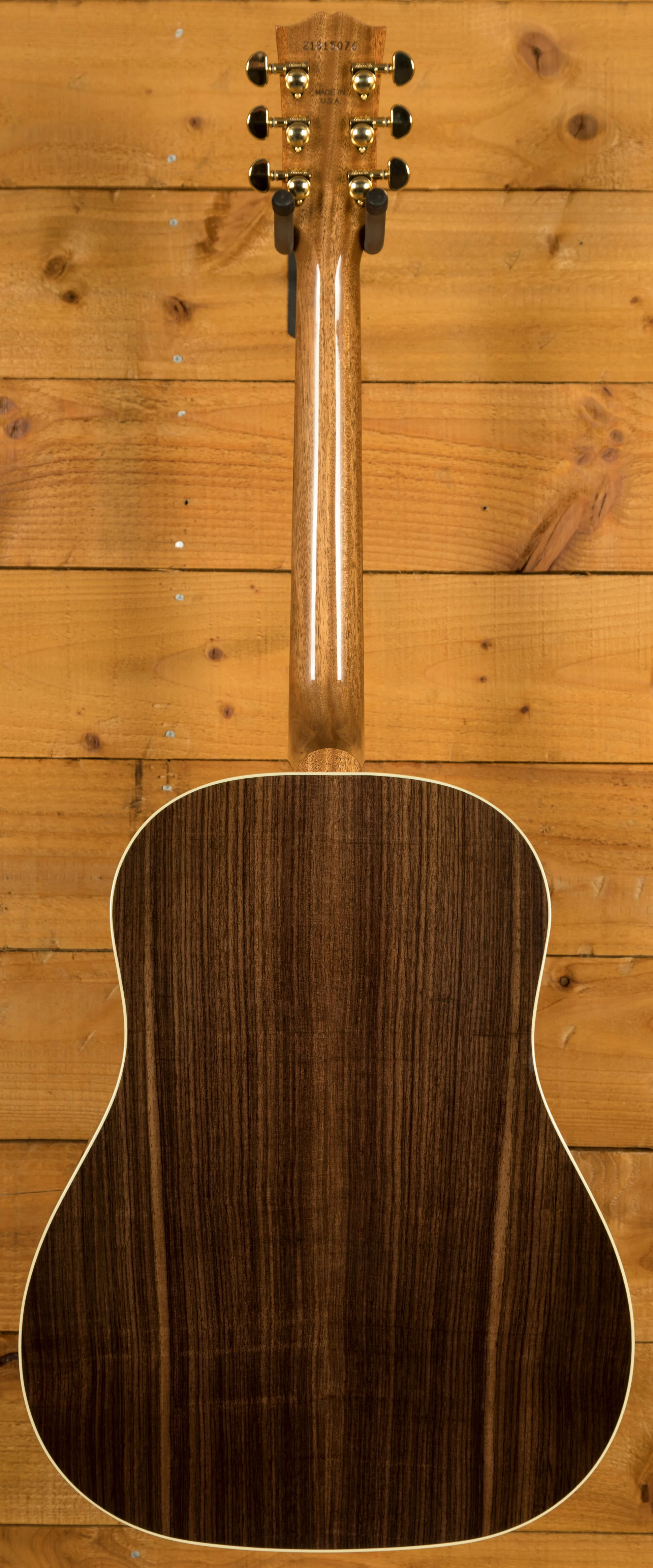 The J-45 Standard Rosewood features a compound dovetail neck-to-body joint, secured with hot hide glue, a traditional method that contributes to the guitar's resonance and stability. The Grover Rotomatic tuning machines ensure accurate and reliable tuning. The reverse belly rosewood bridge and TUSQ saddle further contribute to the guitar's balanced tone and sustain.