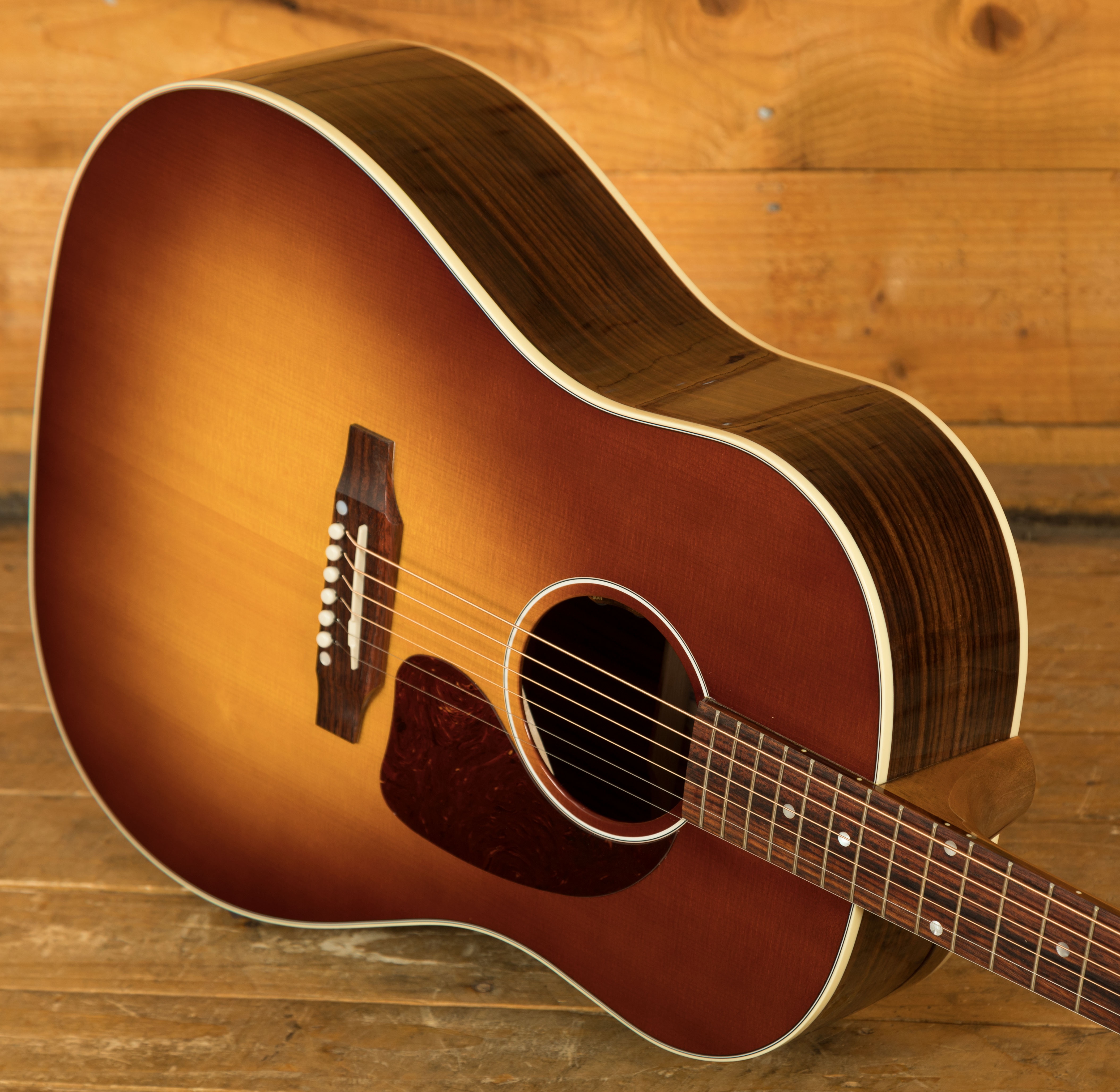 The Gibson J-45, nicknamed "The Workhorse," has been a flagship acoustic guitar since its introduction in 1942. Its round-shoulder dreadnought design has made it a favorite among musicians for decades. This new version of the J-45 Standard features a rosewood back and sides, adding a new dimension to its already renowned sound.